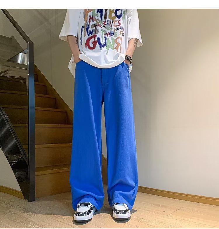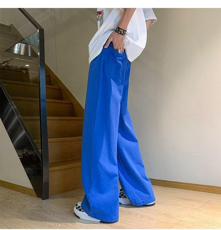 아메리칸 스타일 레트로 여름 다채로운 넓은 다리 청바지 핑크 도파민 착용 느슨한 스트레이트 바지 남성용