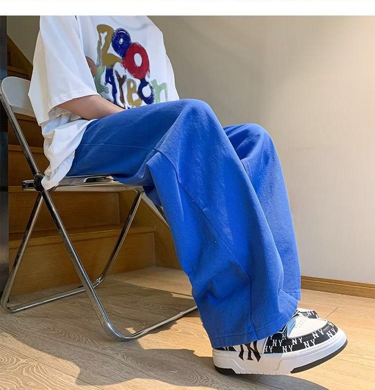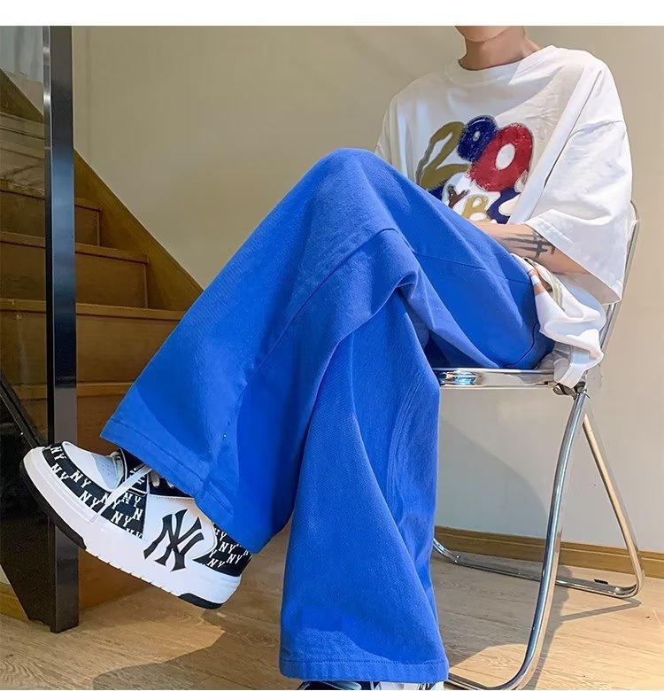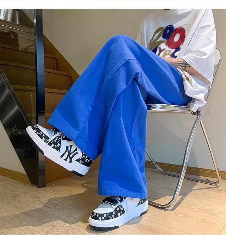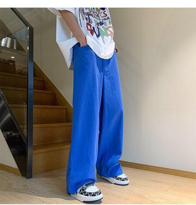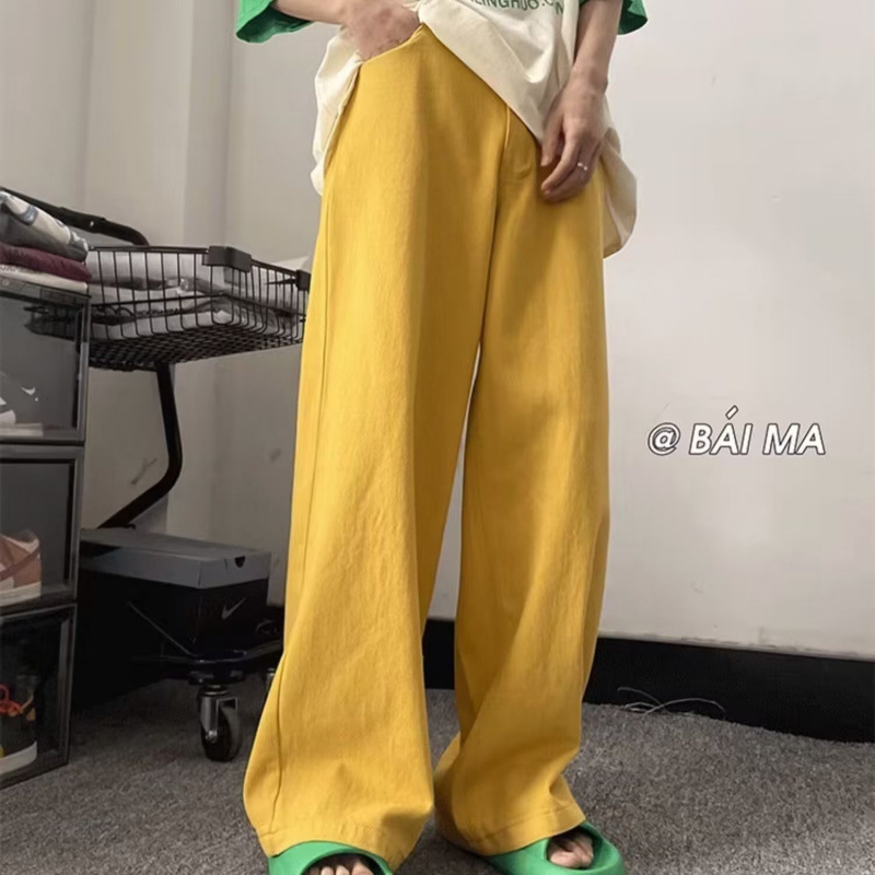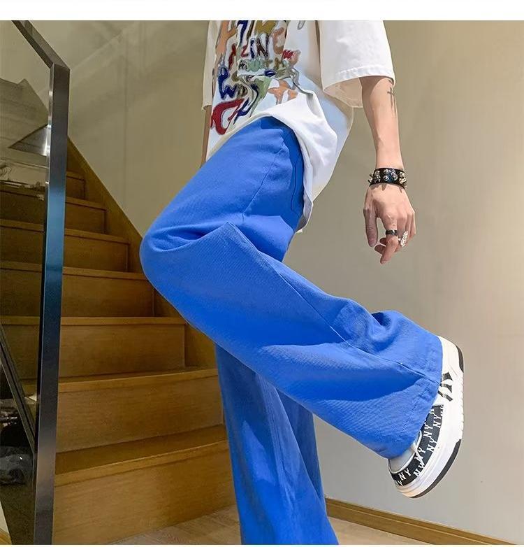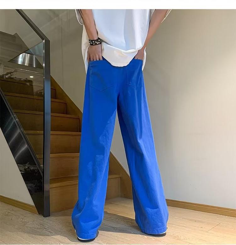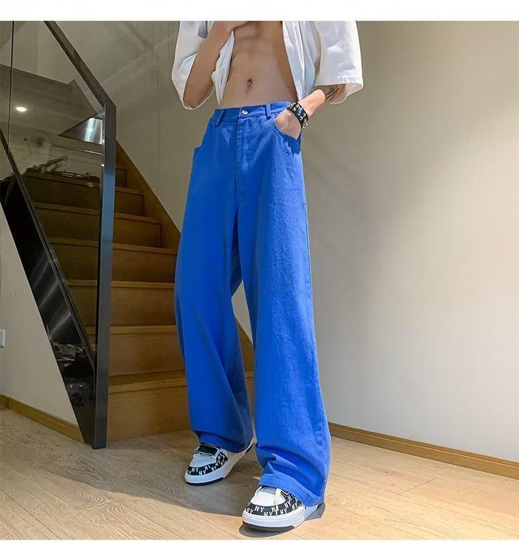 아메리칸 스타일 레트로 여름 다채로운 넓은 다리 청바지 핑크 도파민 착용 느슨한 스트레이트 바지 남성용스토어 가기