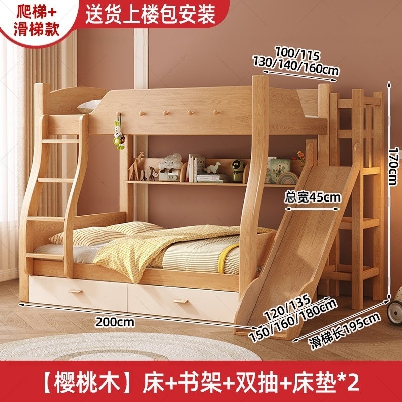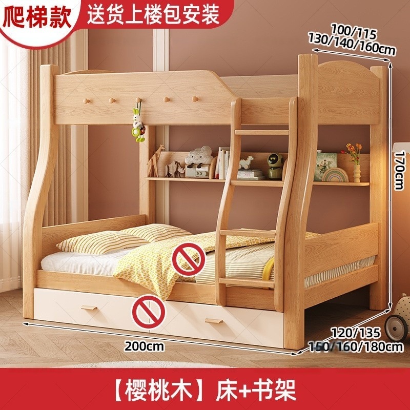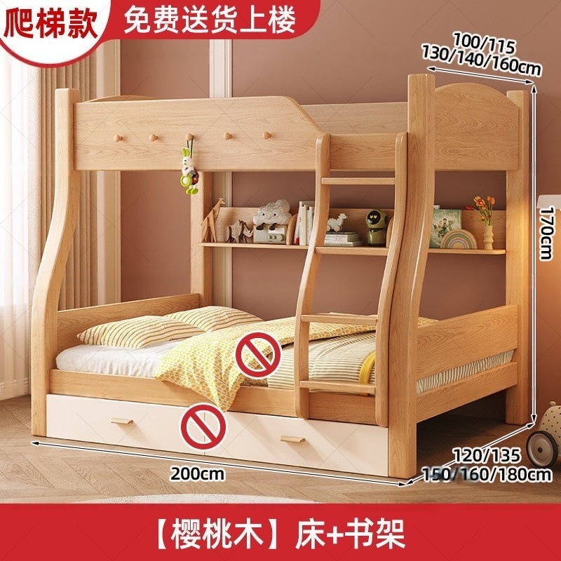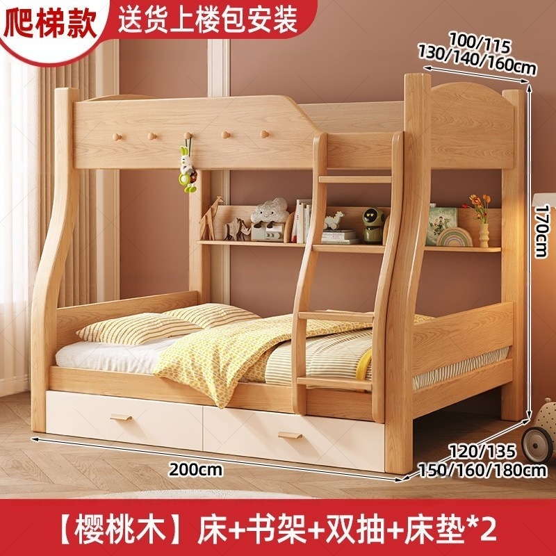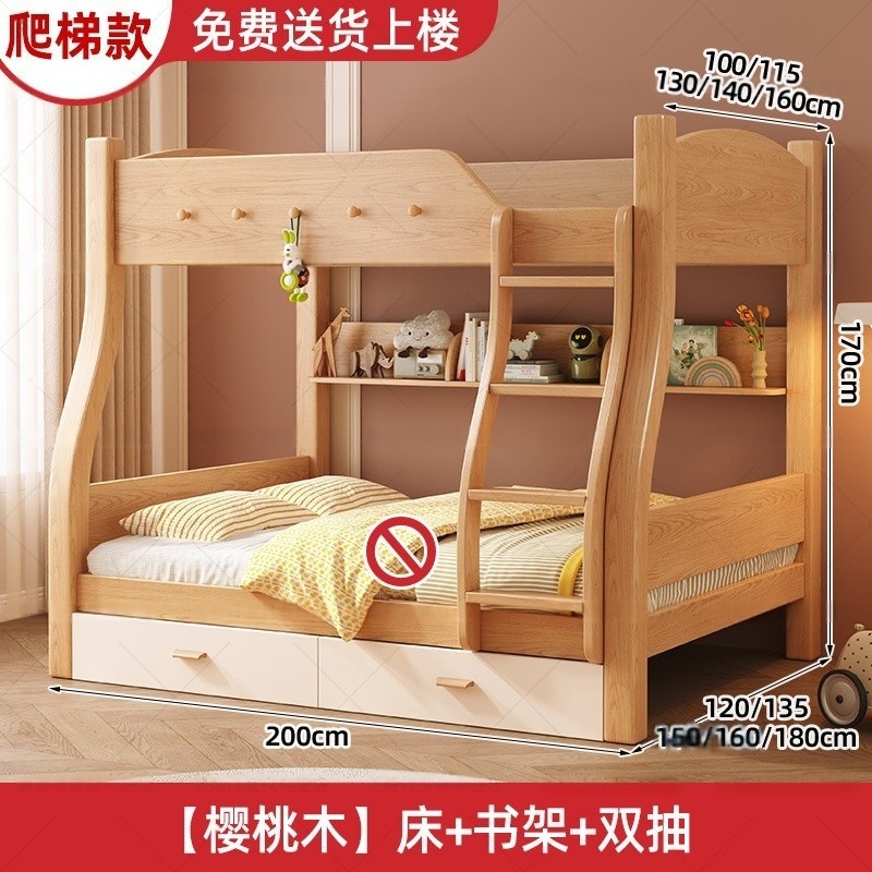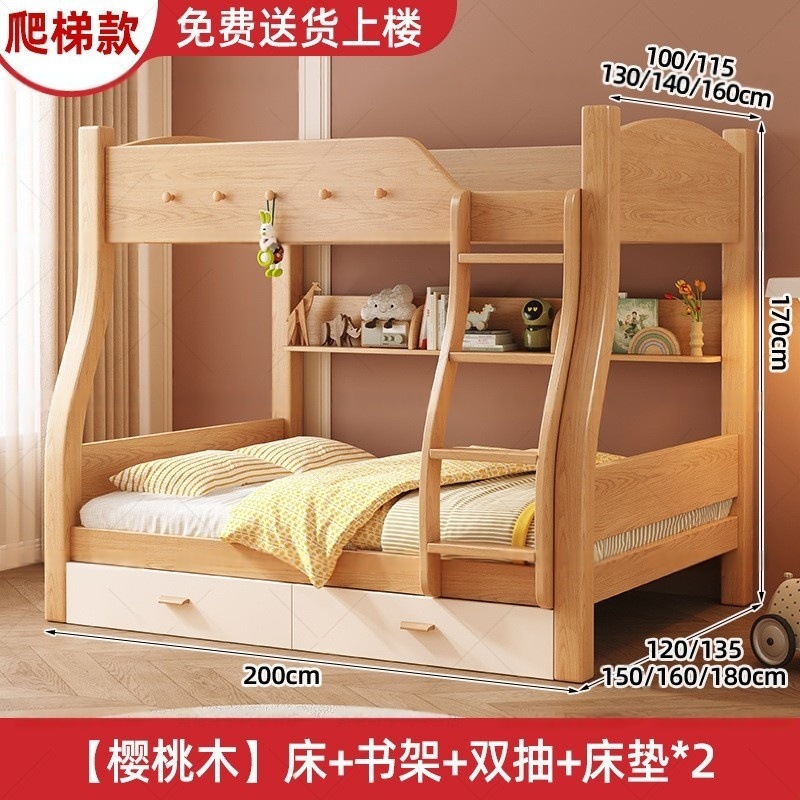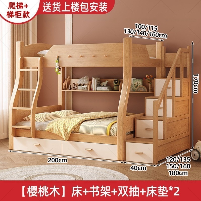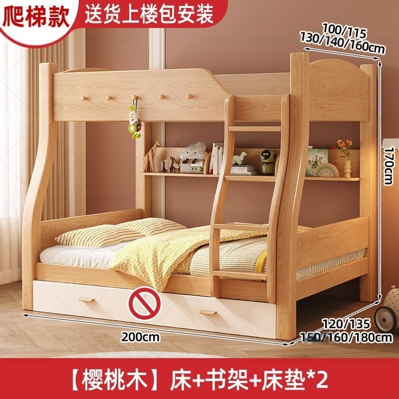 어린이를위한 솔리드 우드 벙크 침대 작은 아파트 용 체리 벙크 침대 이층 침대 높고 낮은 침대 너도밤 침대 어린이 및 어머니 용 침대