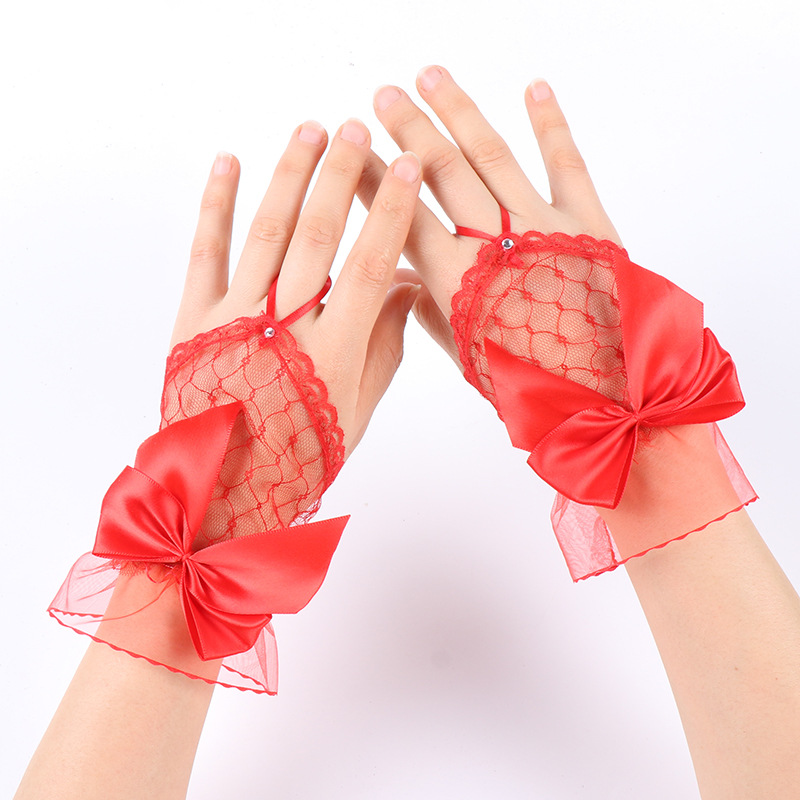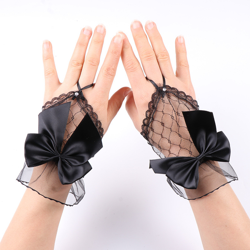 신부 웨딩 원피스 장갑 짧은 메쉬 로리타 핑거 블랙 레이스 메쉬 레이스 활 장갑