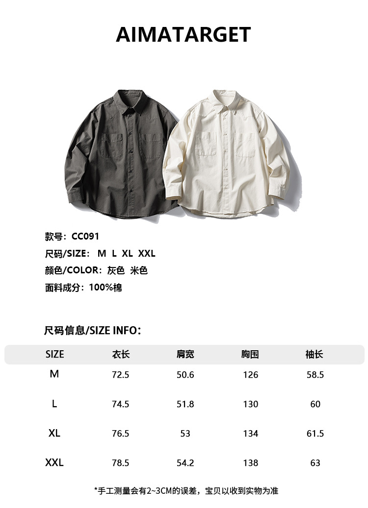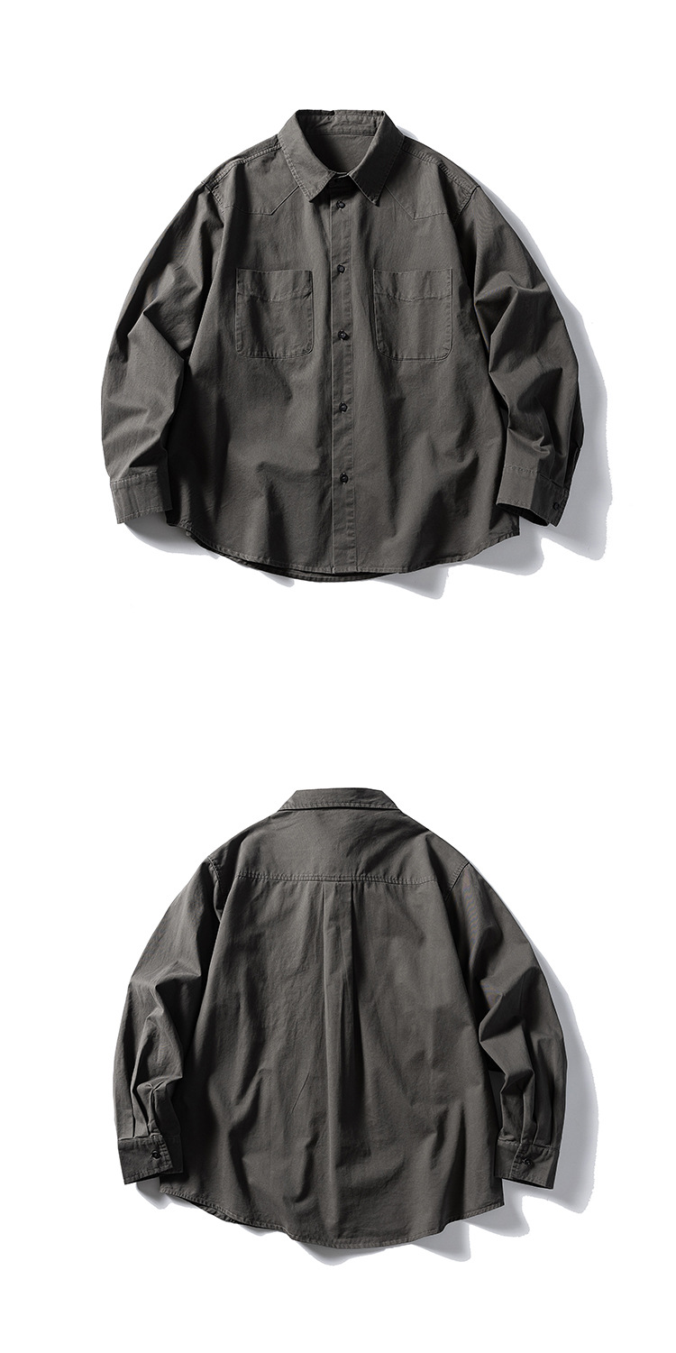 일본식 레트로 단색 셔츠 남성용 오버웨어 긴 소매 셔츠 재킷스토어 가기