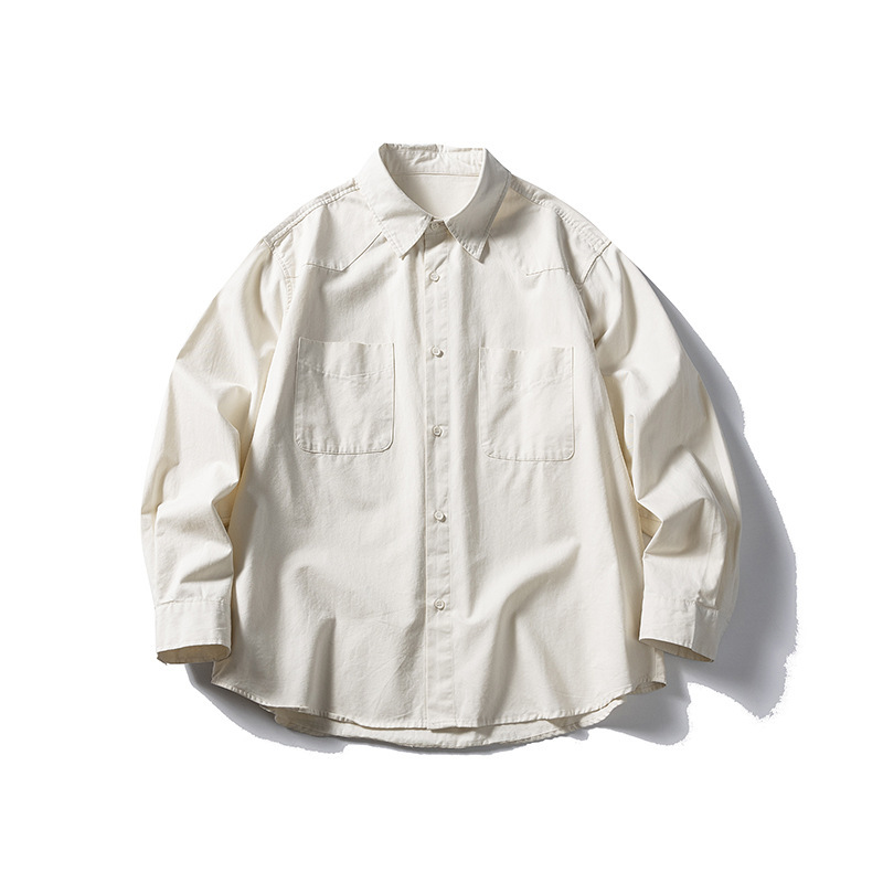 일본식 레트로 단색 셔츠 남성용 오버웨어 긴 소매 셔츠 재킷