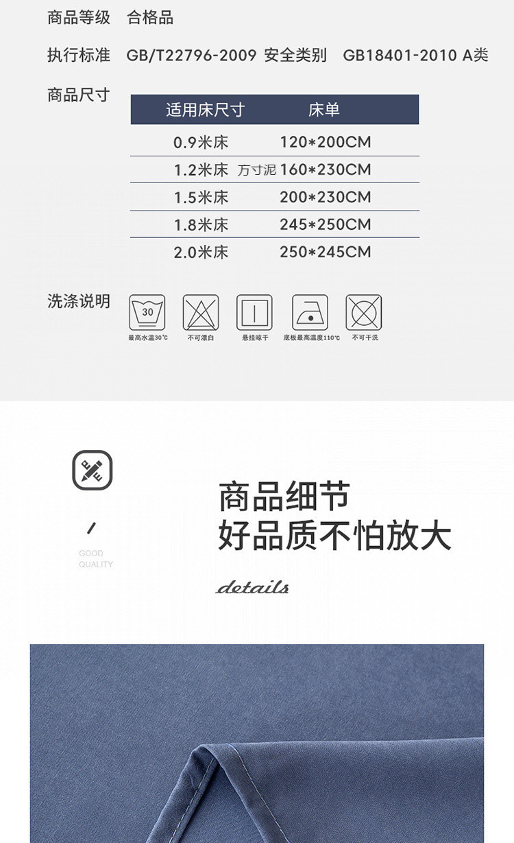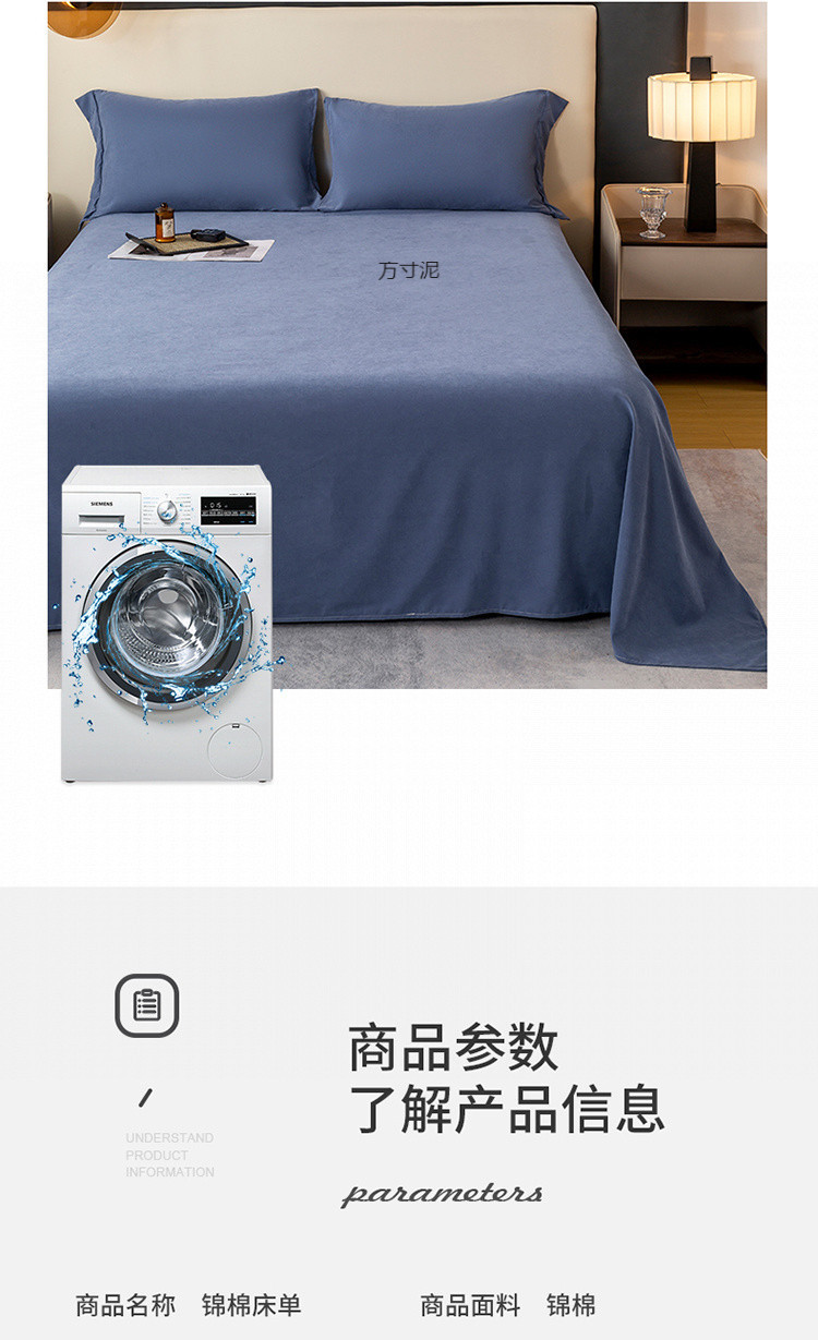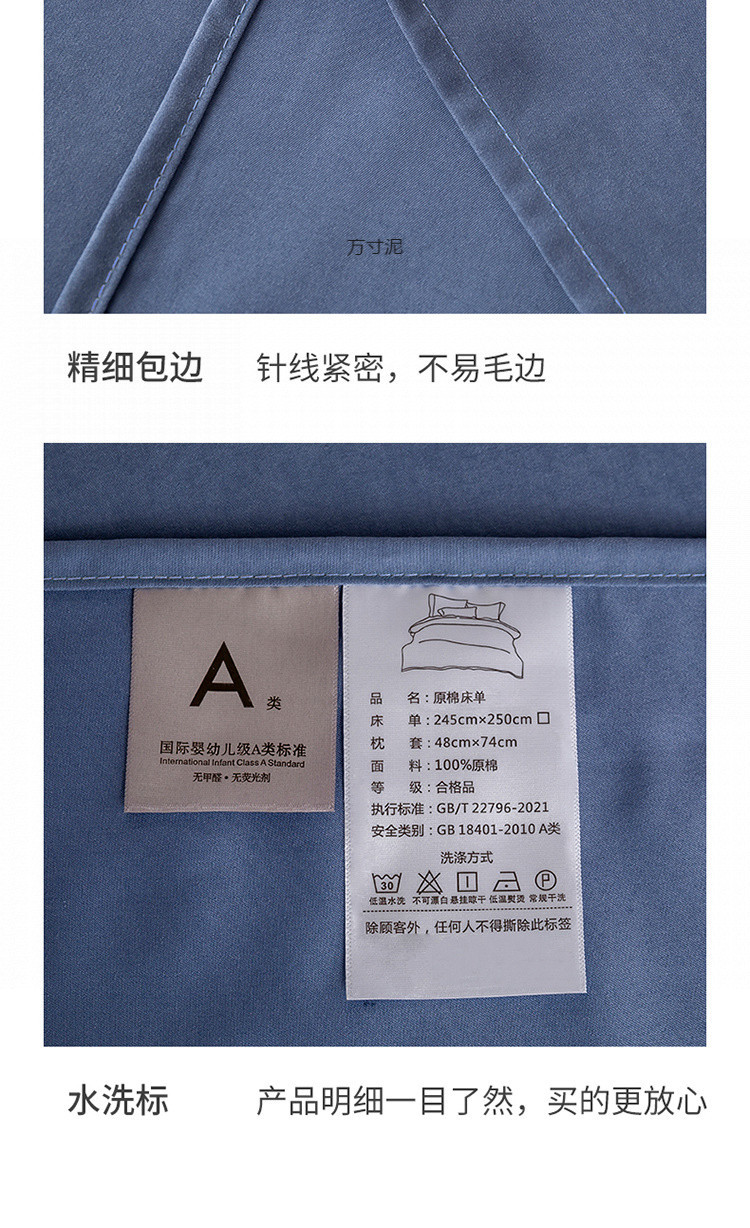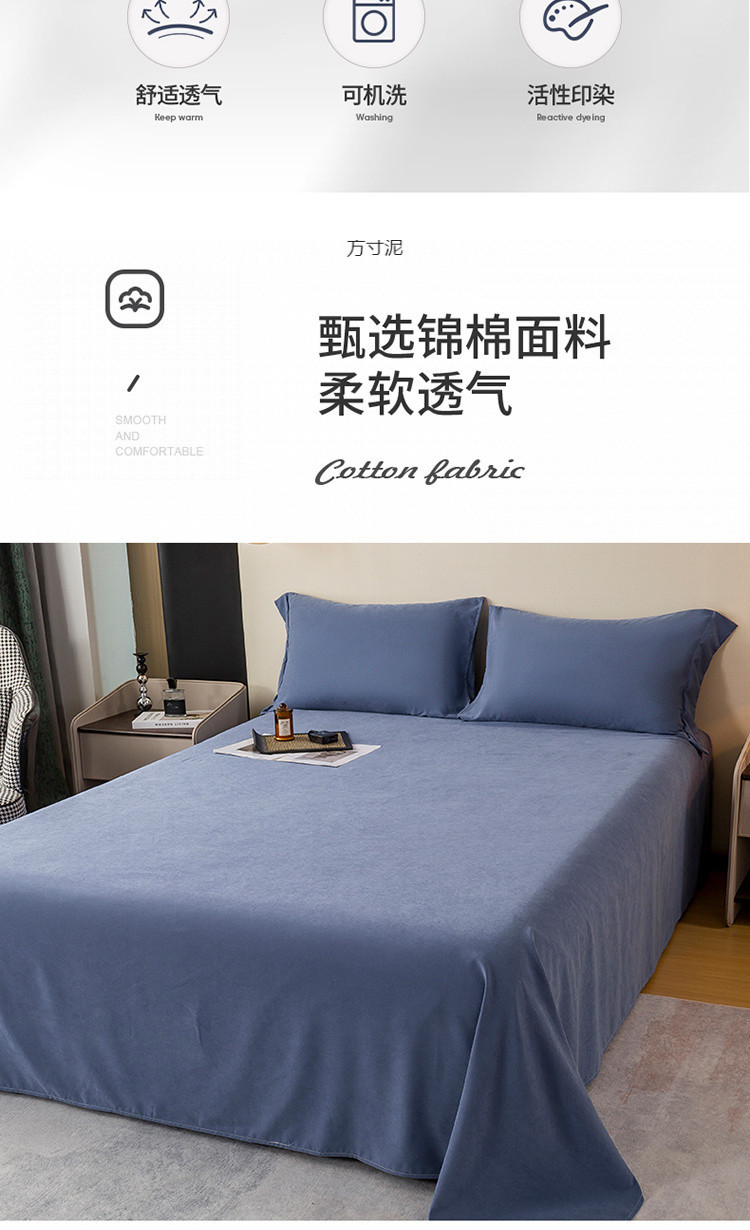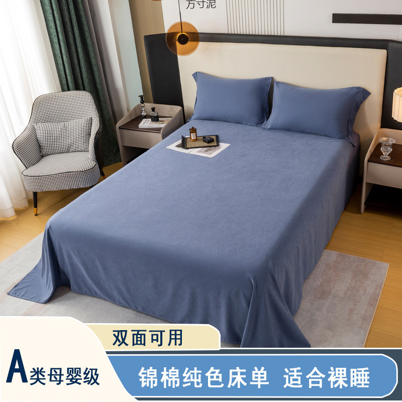 진면 A급 싱글 침대 시트 여름 색상 워시드 코튼 이불 두꺼운 고밀도 기숙사 3종 세트 대외 무역 도매 공장스토어 가기