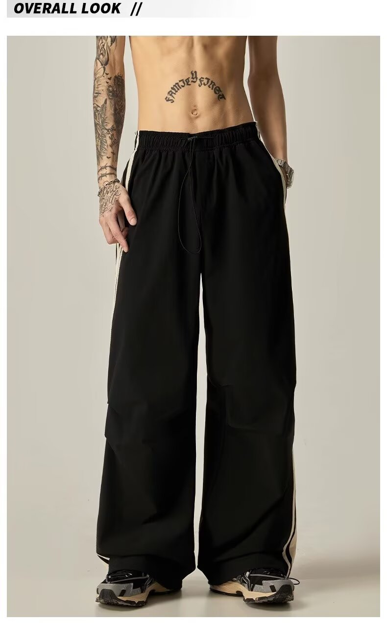 2025 봄과 여름 새로운 도착 와이드 레그 등산 바지 남성용 스트레이트 패셔너블 루즈 슬리밍 작업복 캐주얼 트렌디 걸레 바지스토어 가기