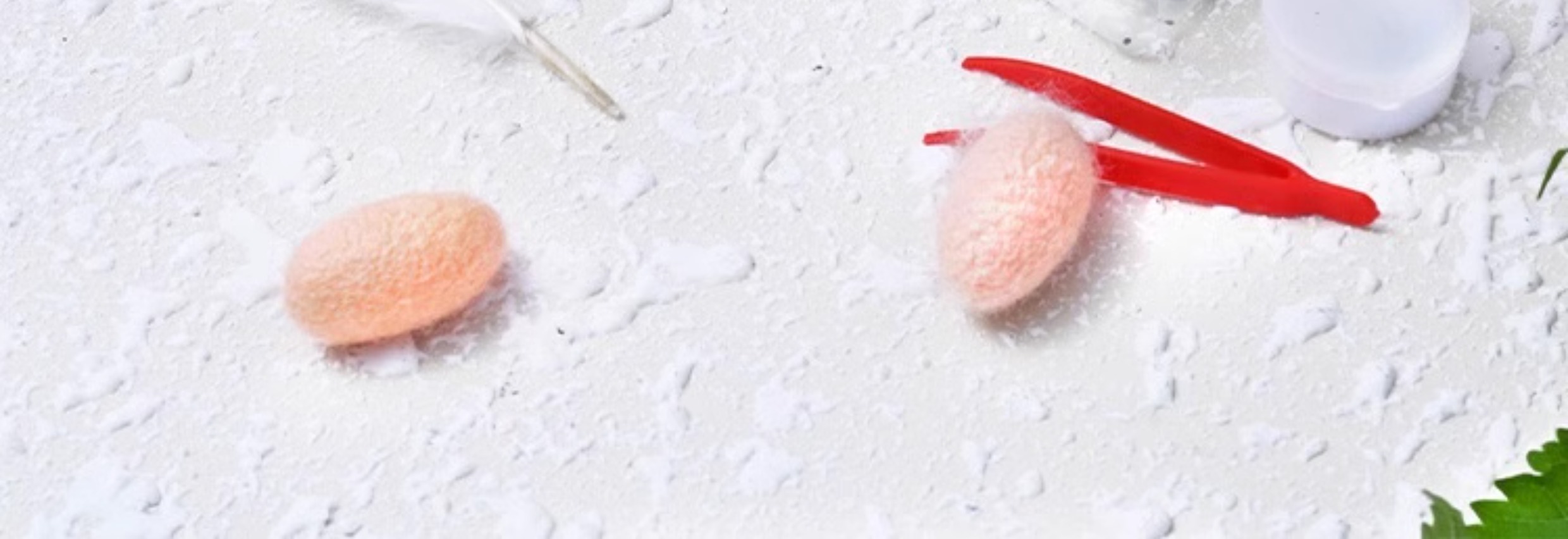• [핑크색 실크누에 패키지] 1세 누에 20마리 + 알 50개 + 뽕잎 + 도구 [누에 아기 우주 캡슐]