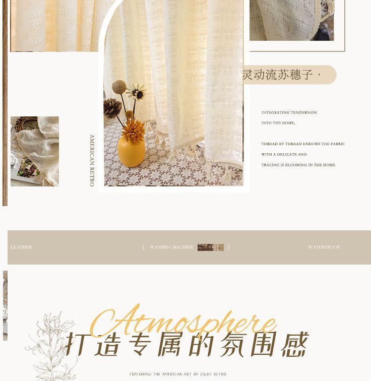 빈티지 코튼 및 리넨 하프 커튼 쉘터 짧은 커튼 태슬 코튼 및 린넨 커튼 목장 스타일 거즈 커튼 베이 침실 창 파티션 작은 문 커튼
