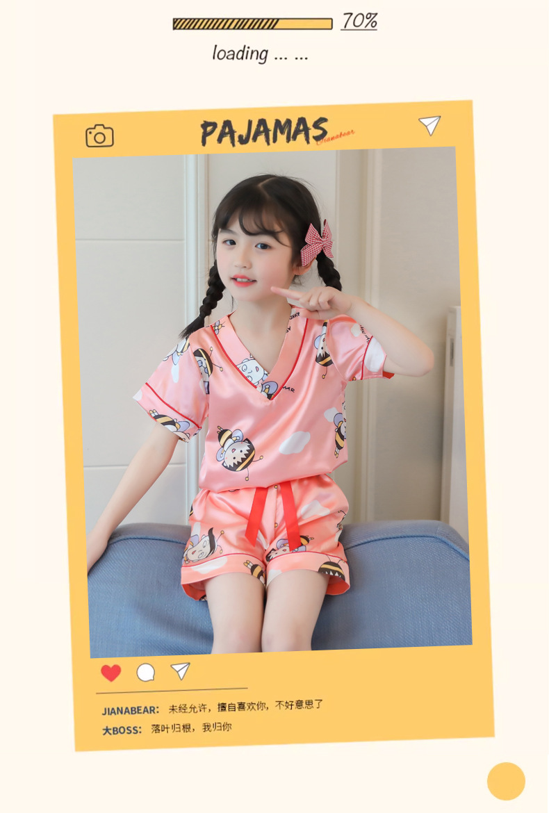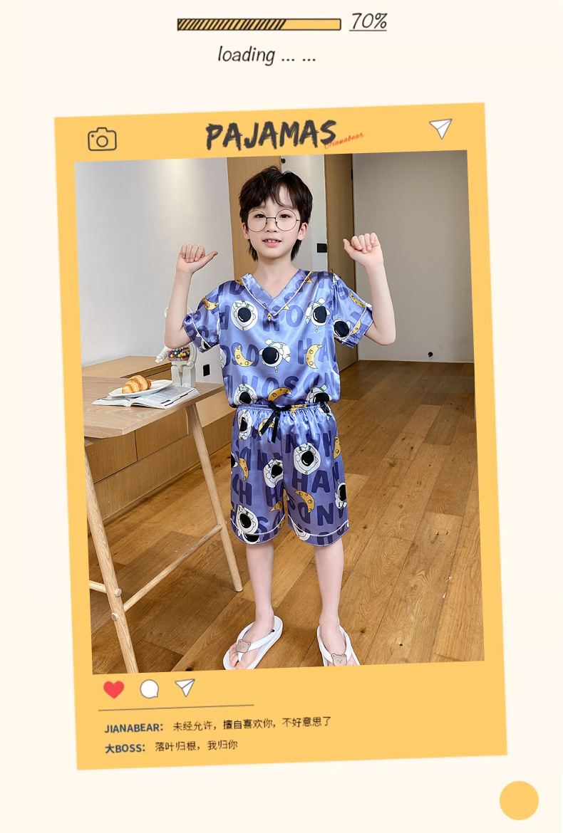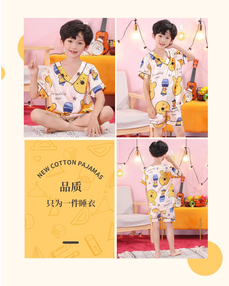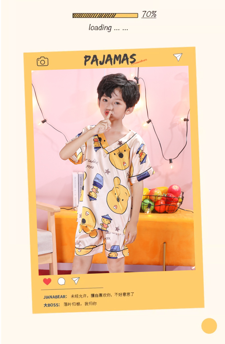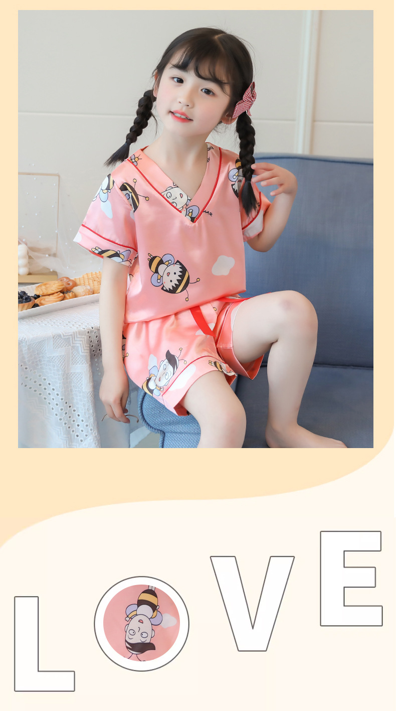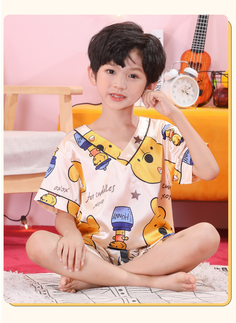 사드 여름 만화 V넥 아이스 실크 어린이 한국 잠옷 소년 소녀 반바지 반바지 반팔 통기성 사랑스러운 의류스토어 가기