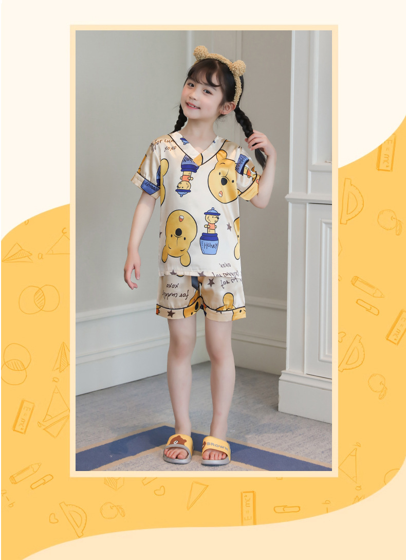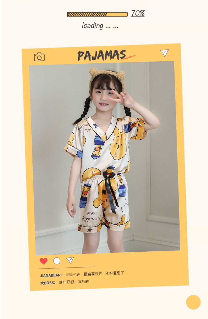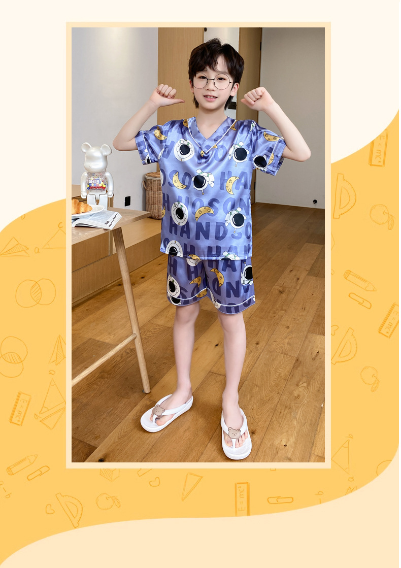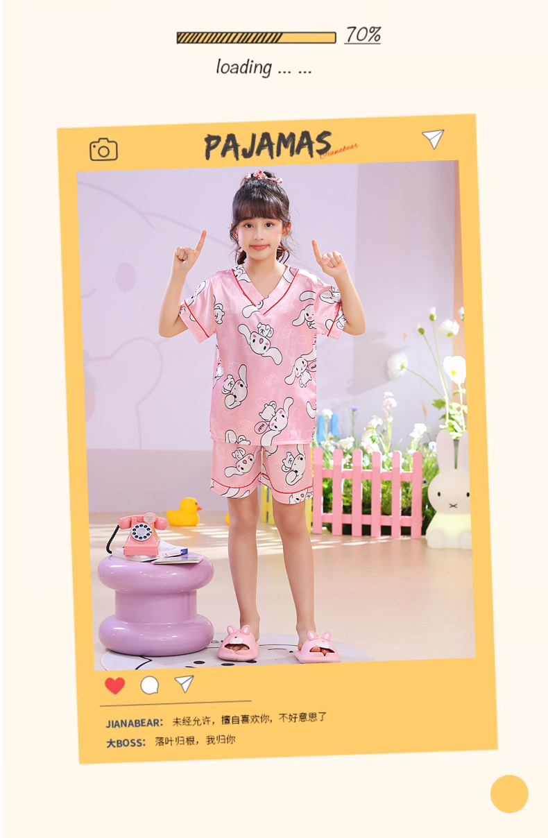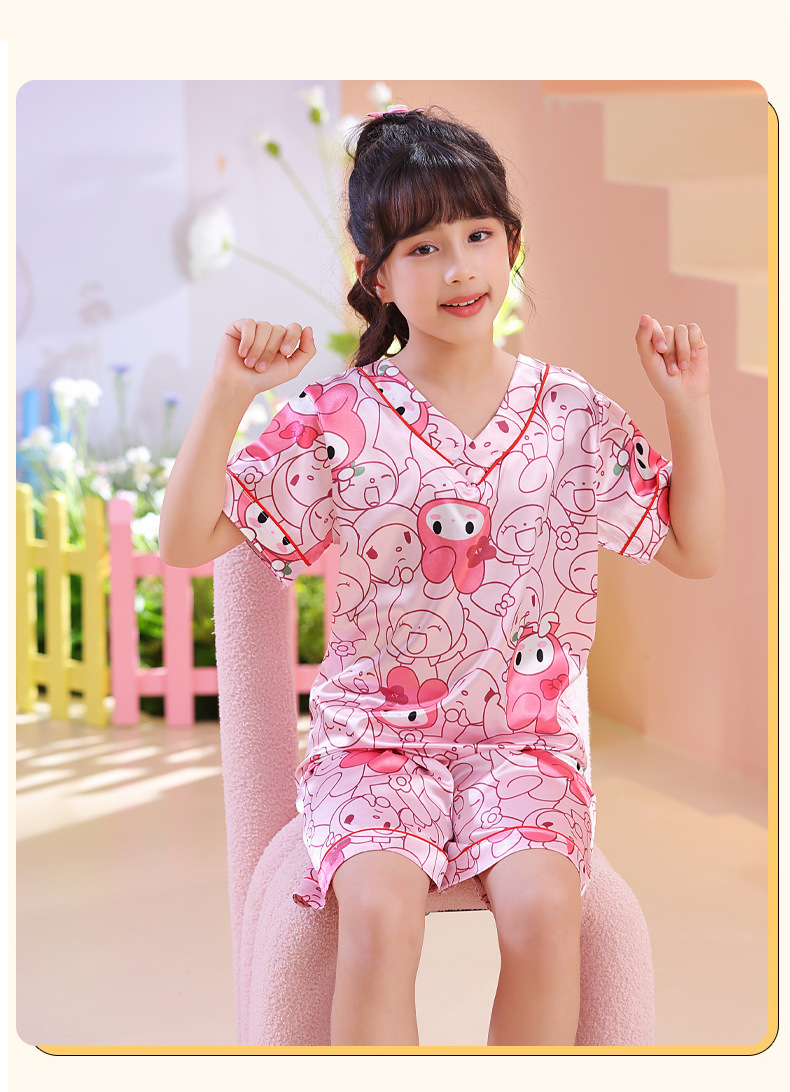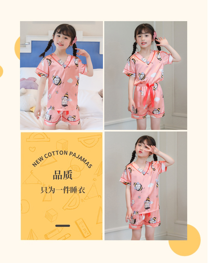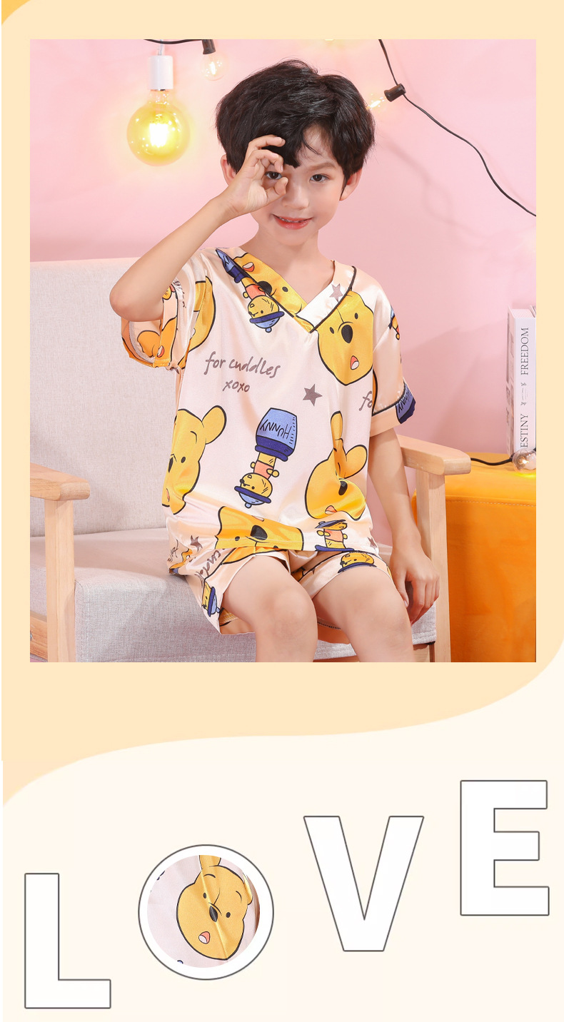 사드 여름 만화 V넥 아이스 실크 어린이 한국 잠옷 소년 소녀 반바지 반바지 반팔 통기성 사랑스러운 의류스토어 가기