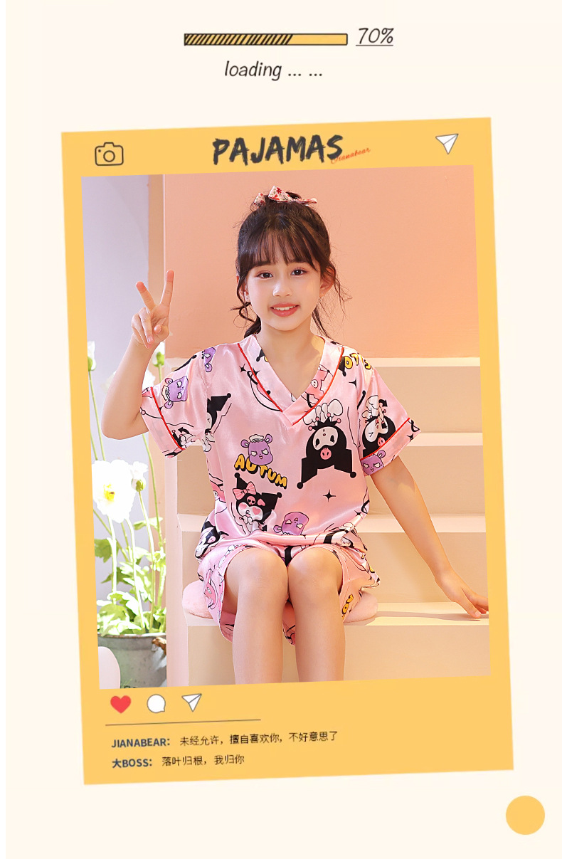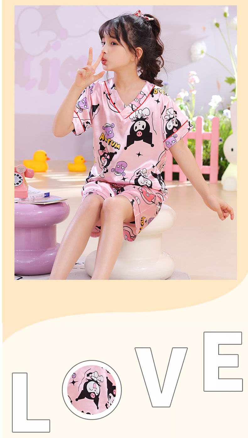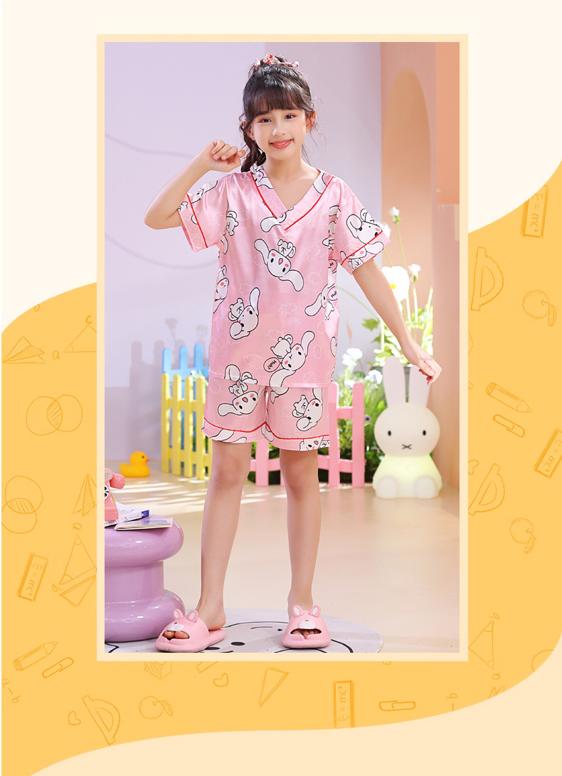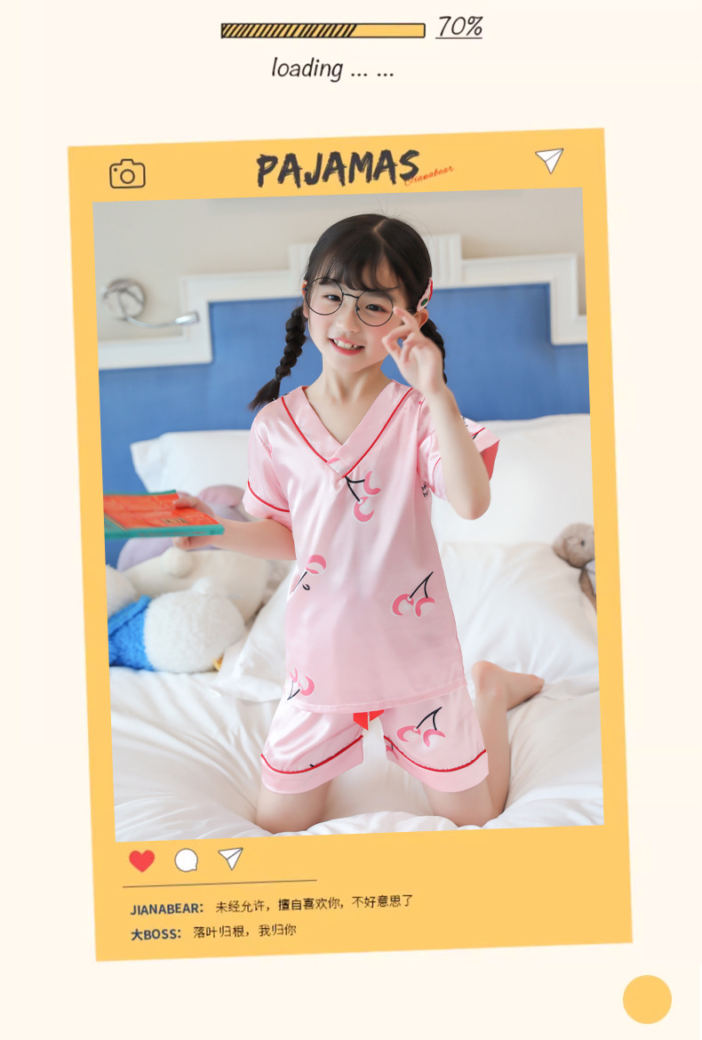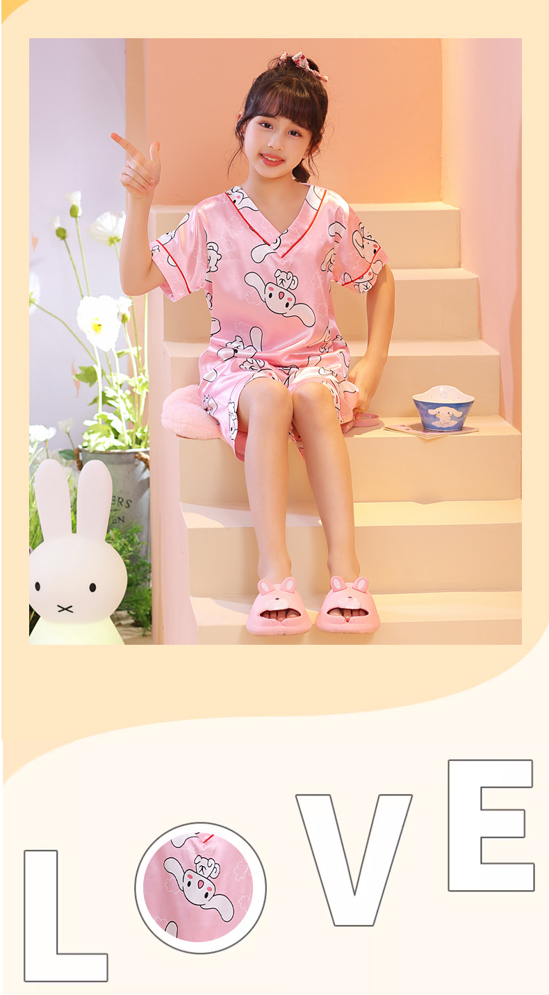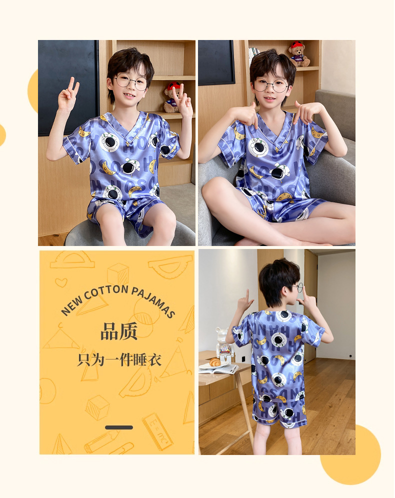 사드 여름 만화 V넥 아이스 실크 어린이 한국 잠옷 소년 소녀 반바지 반바지 반팔 통기성 사랑스러운 의류스토어 가기
