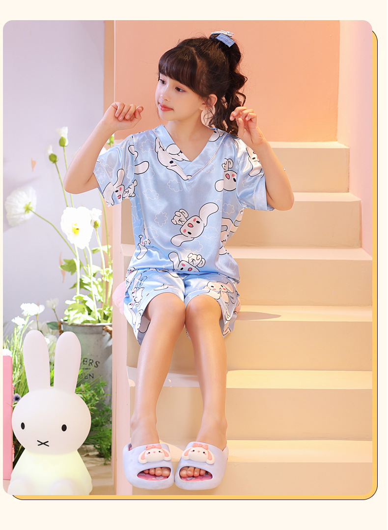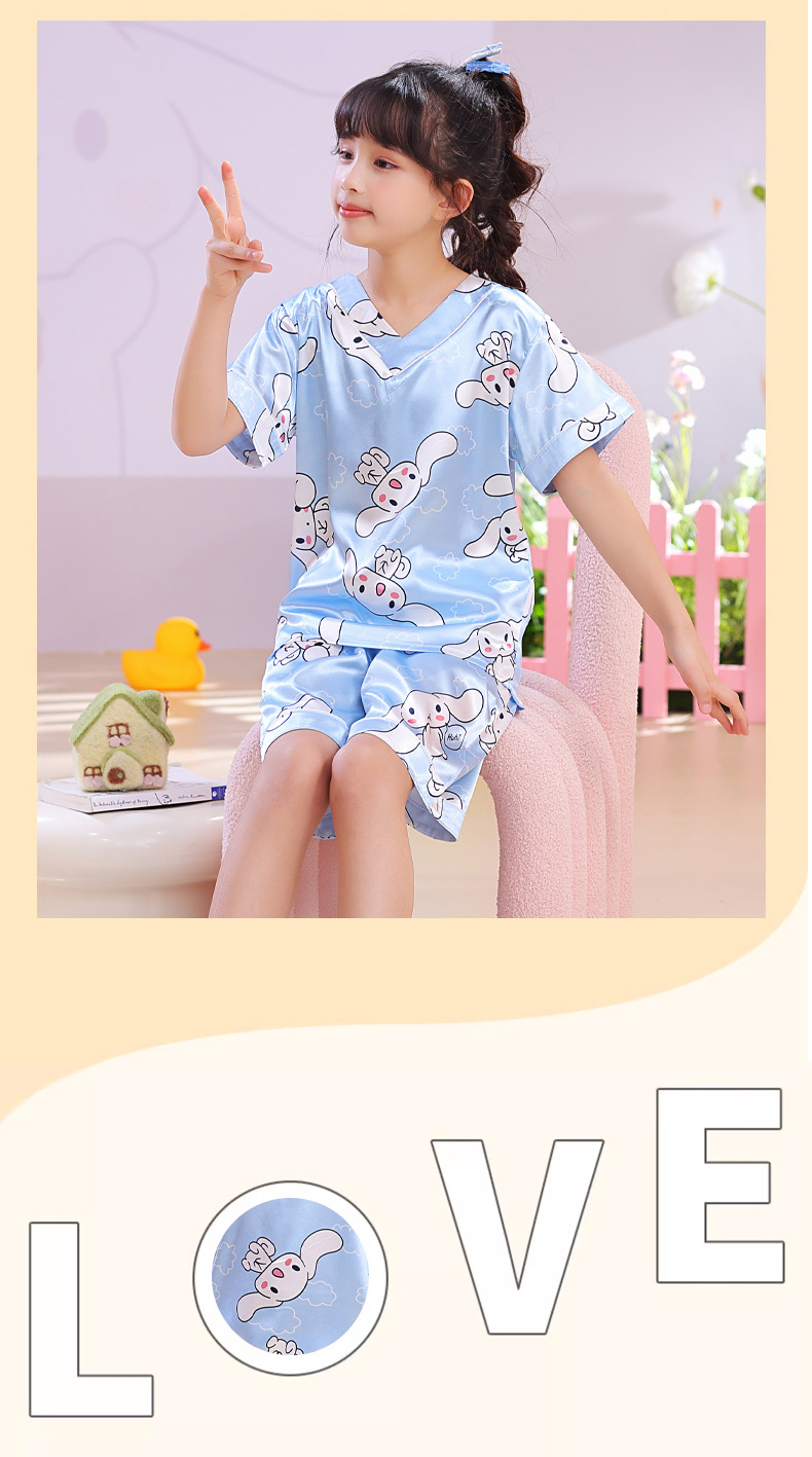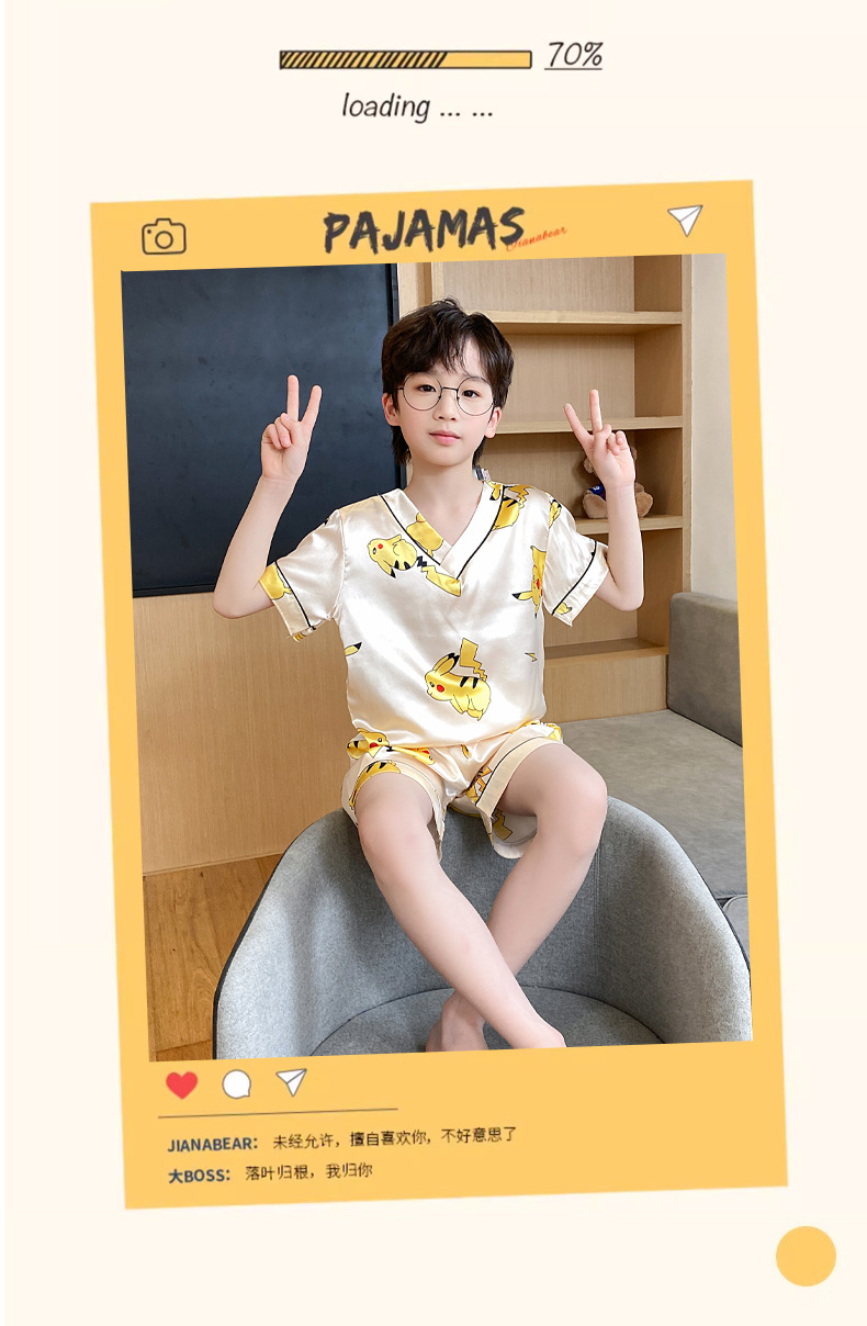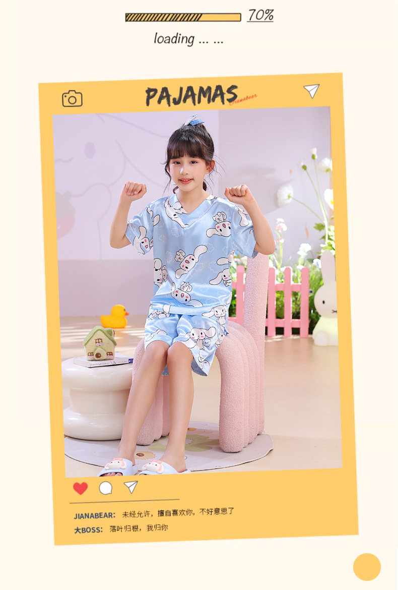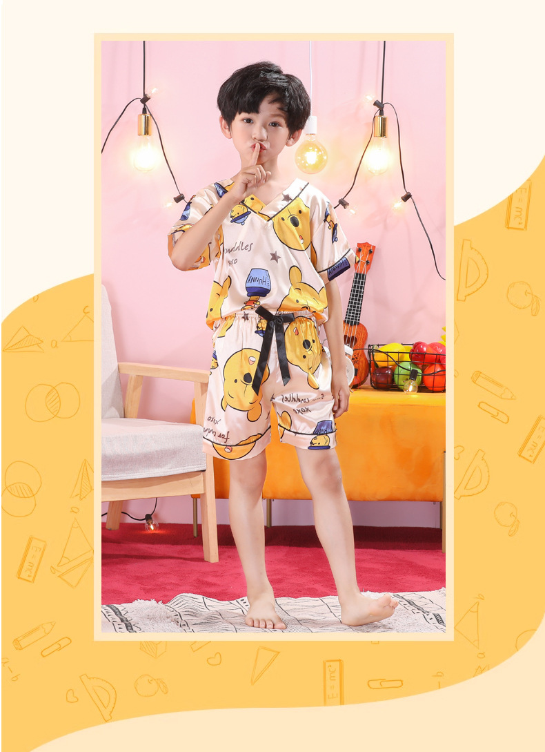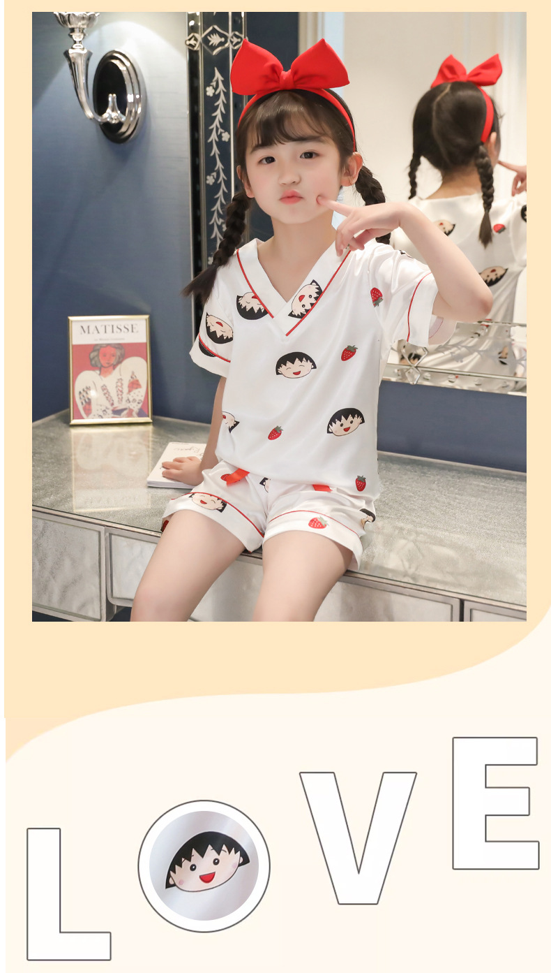 사드 여름 만화 V넥 아이스 실크 어린이 한국 잠옷 소년 소녀 반바지 반바지 반팔 통기성 사랑스러운 의류스토어 가기