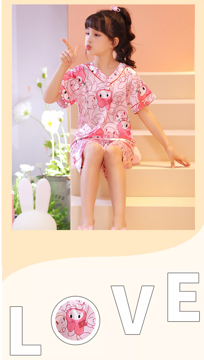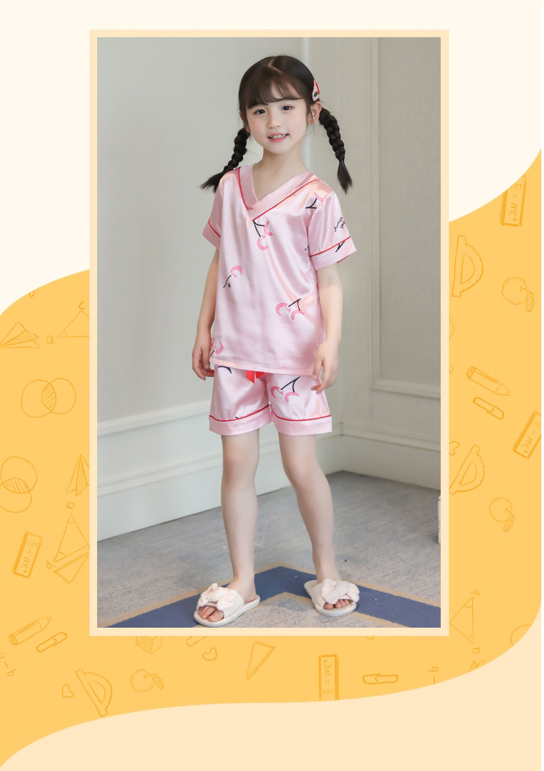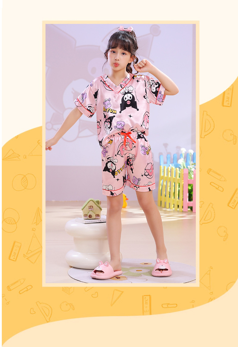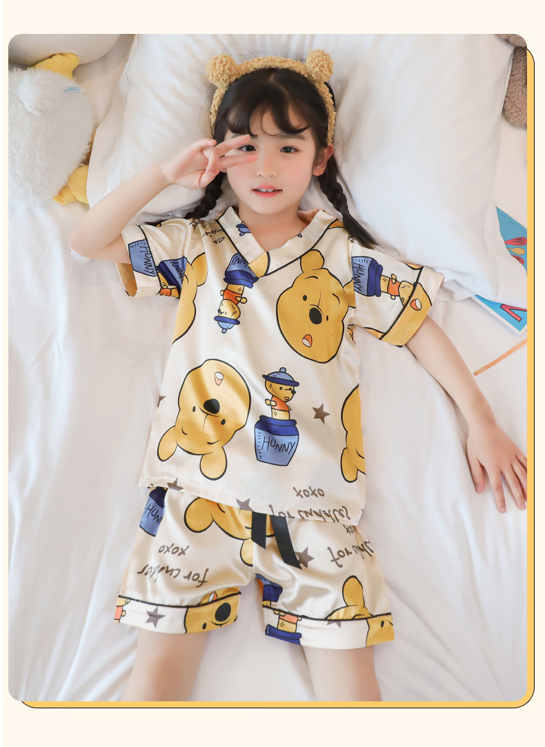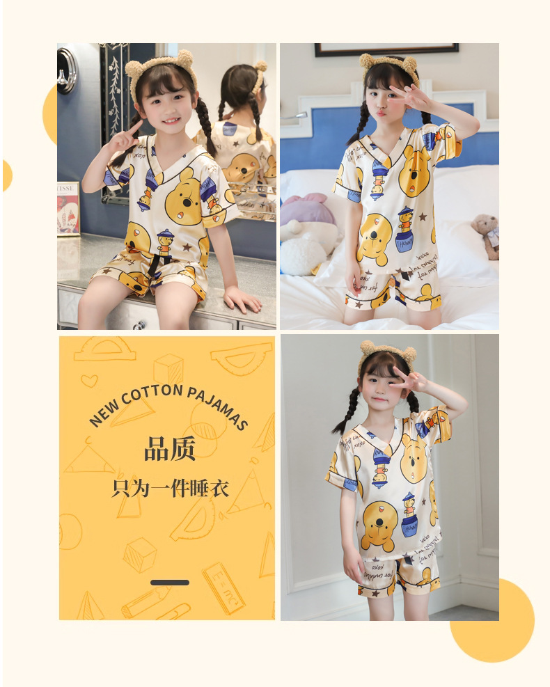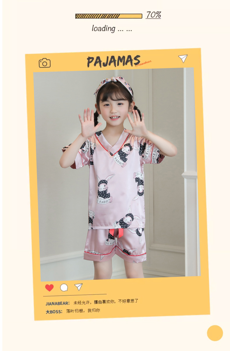 사드 여름 만화 V넥 아이스 실크 어린이 한국 잠옷 소년 소녀 반바지 반바지 반팔 통기성 사랑스러운 의류스토어 가기