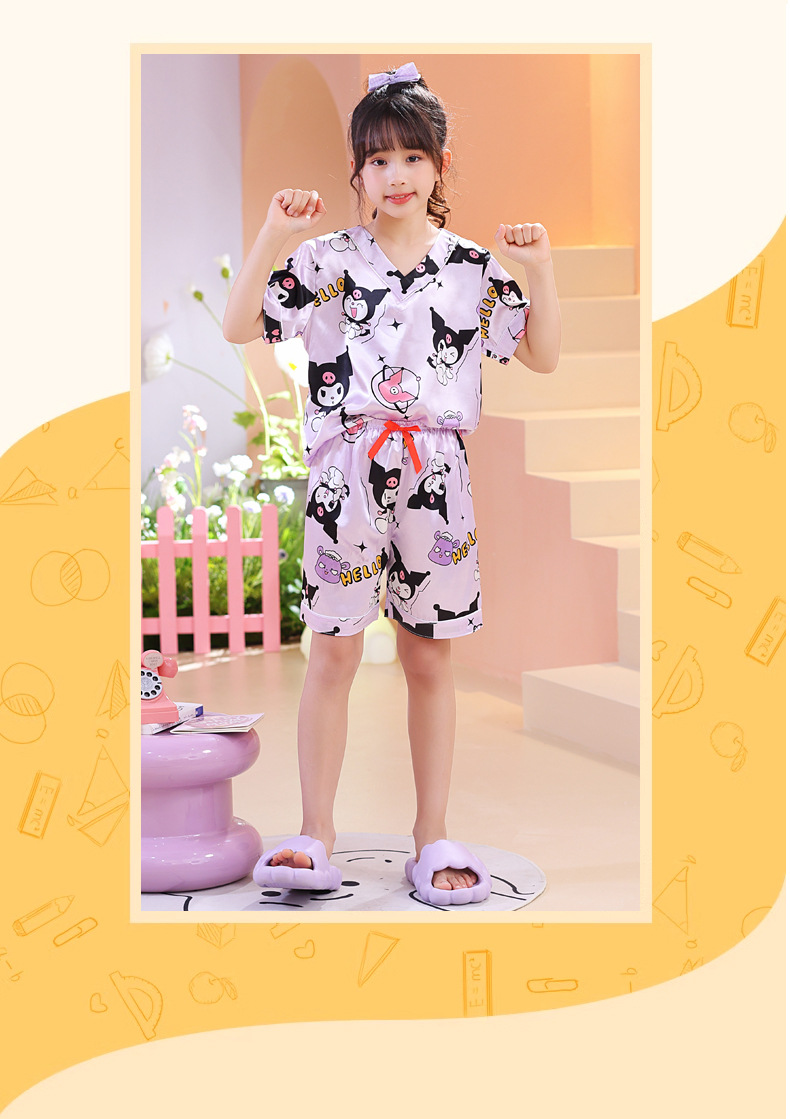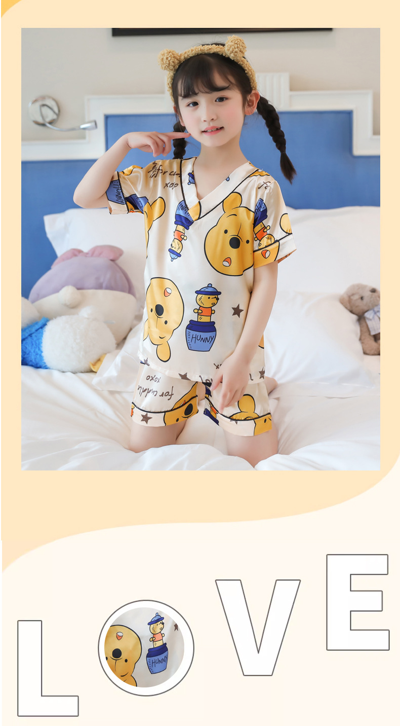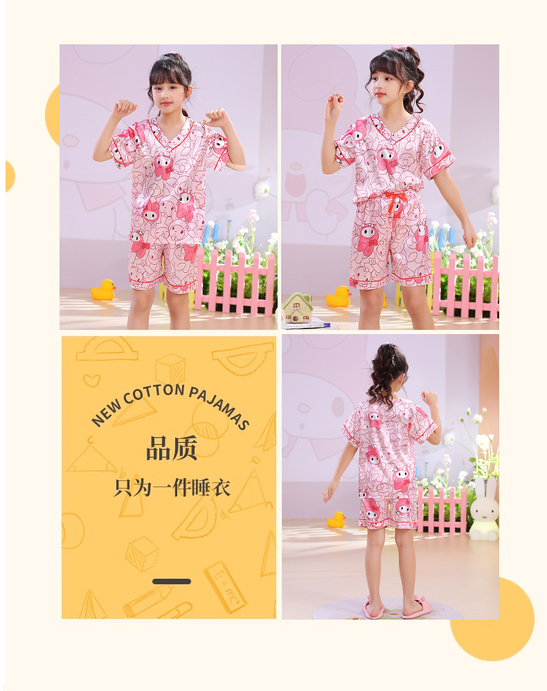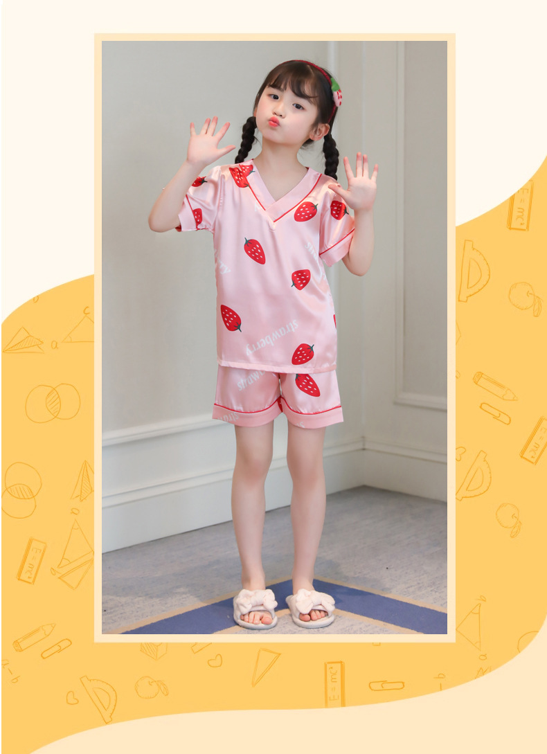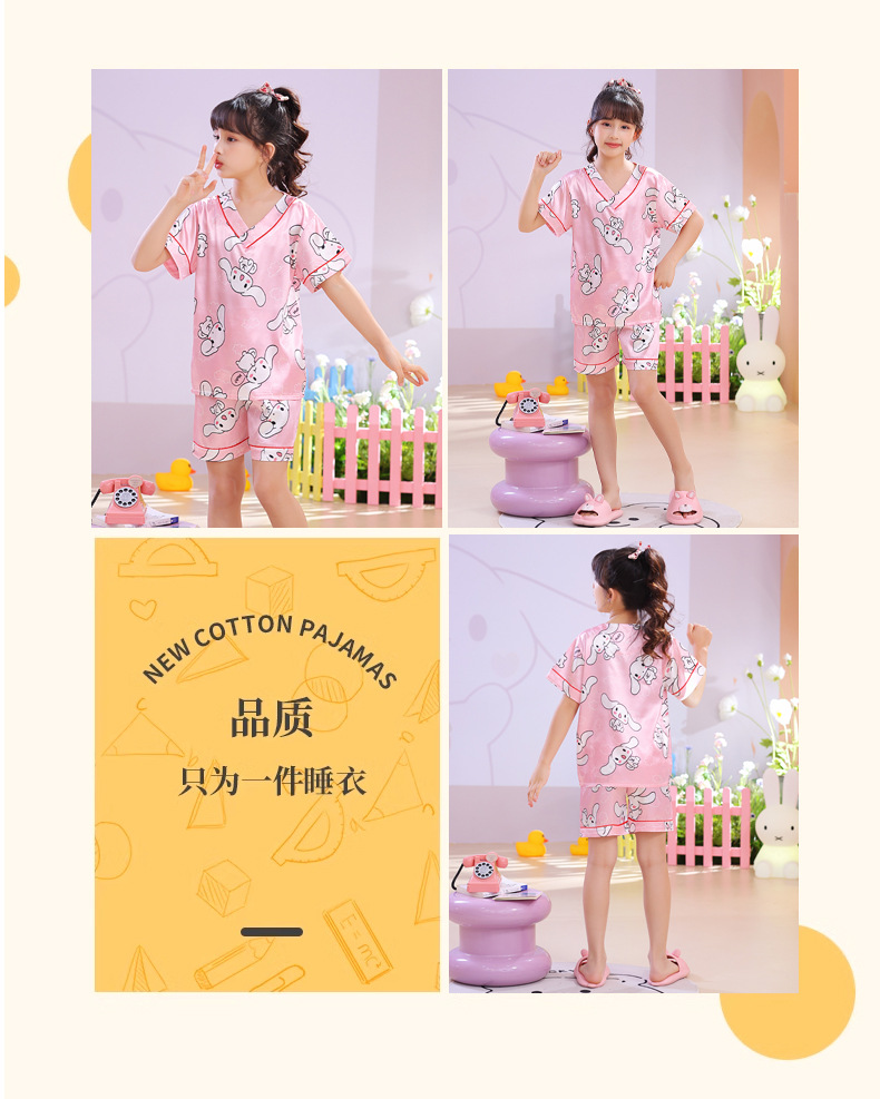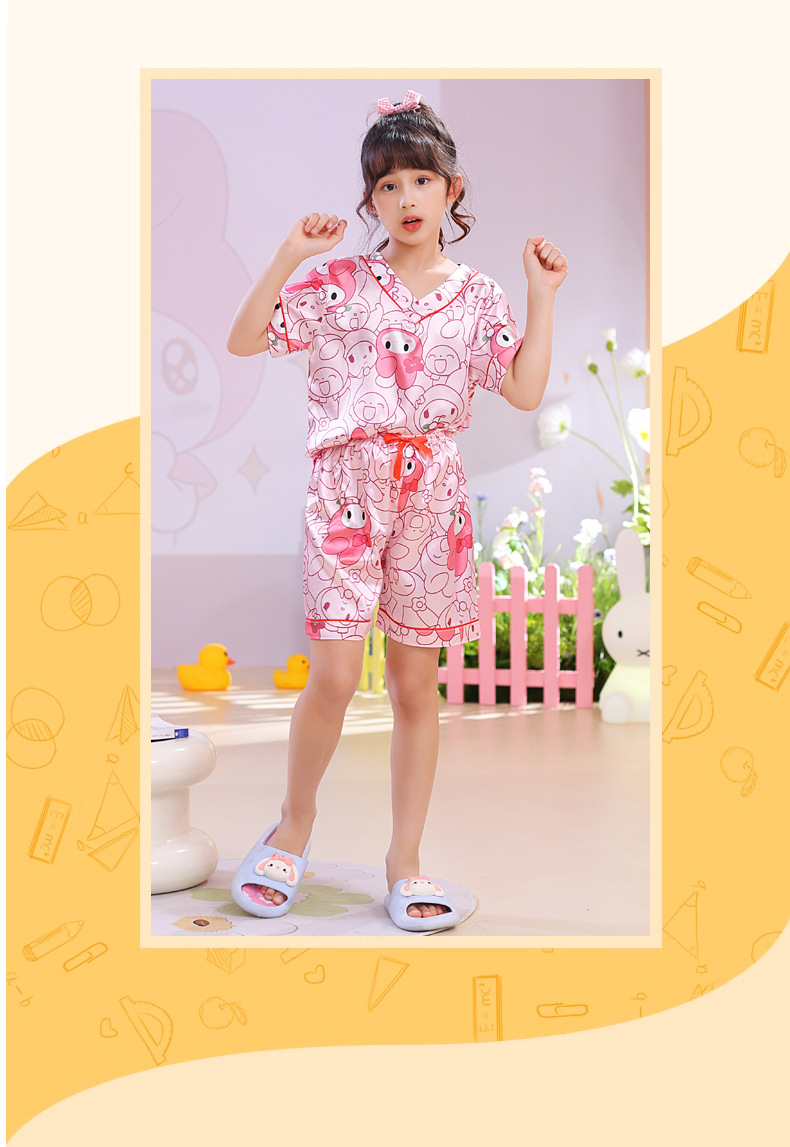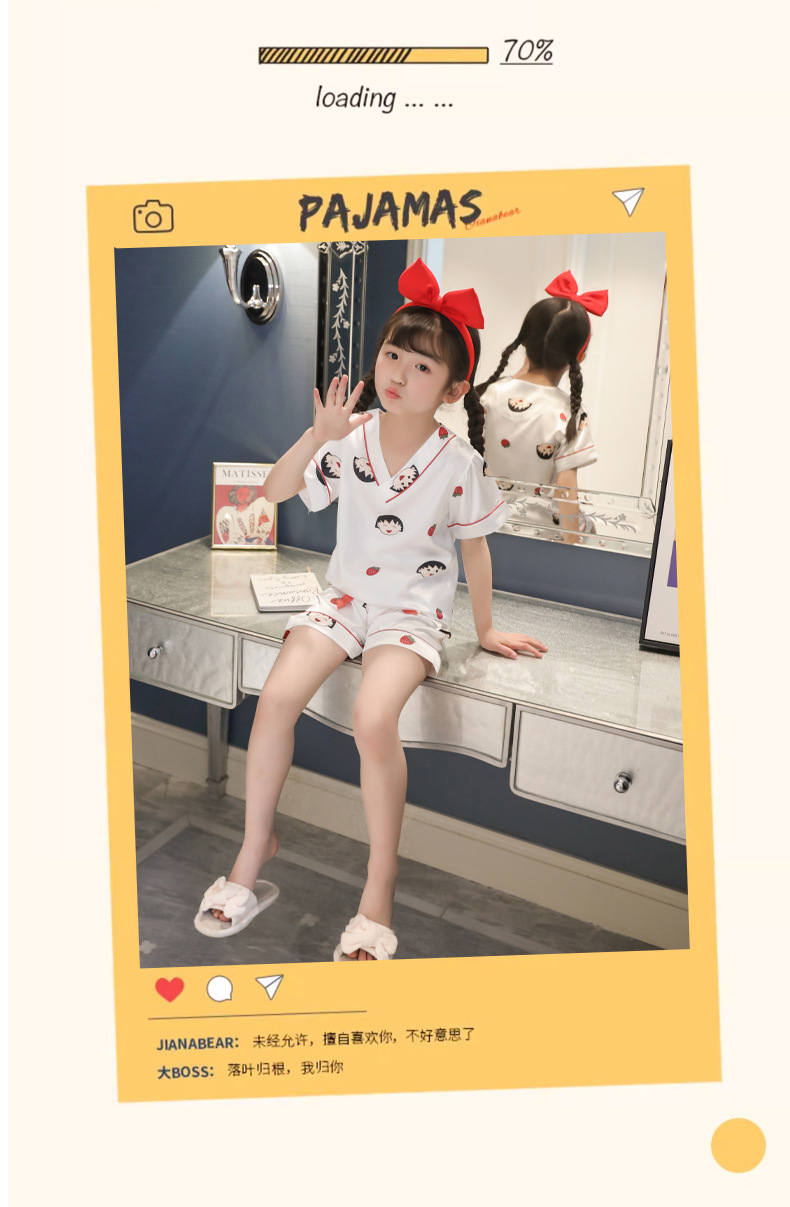 사드 여름 만화 V넥 아이스 실크 어린이 한국 잠옷 소년 소녀 반바지 반바지 반팔 통기성 사랑스러운 의류스토어 가기