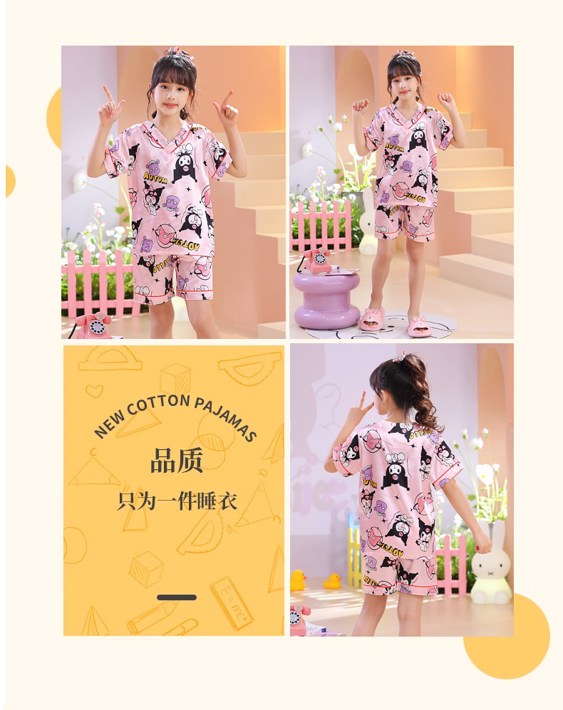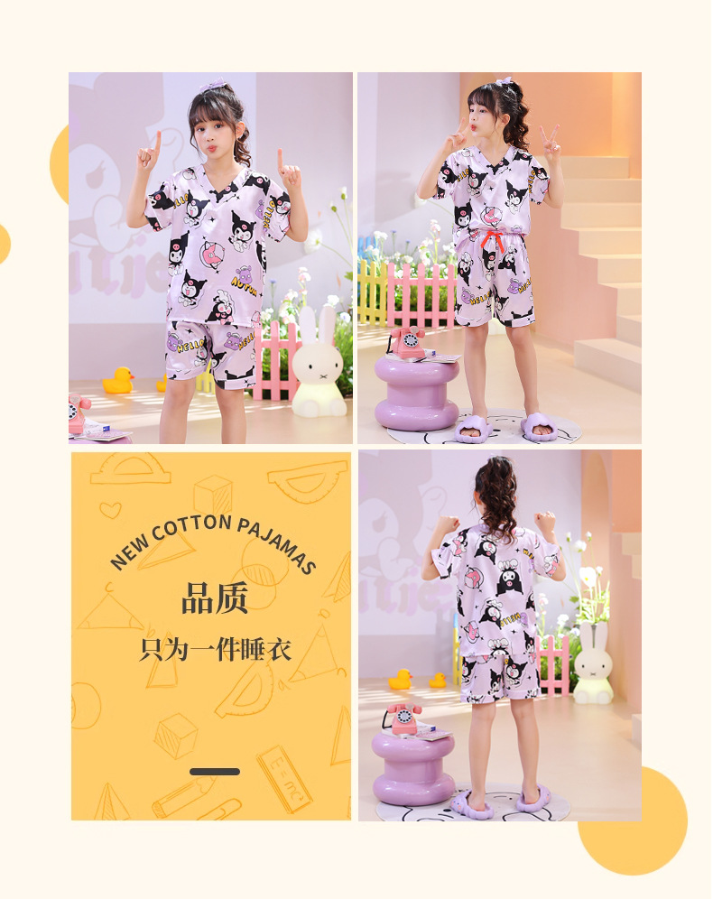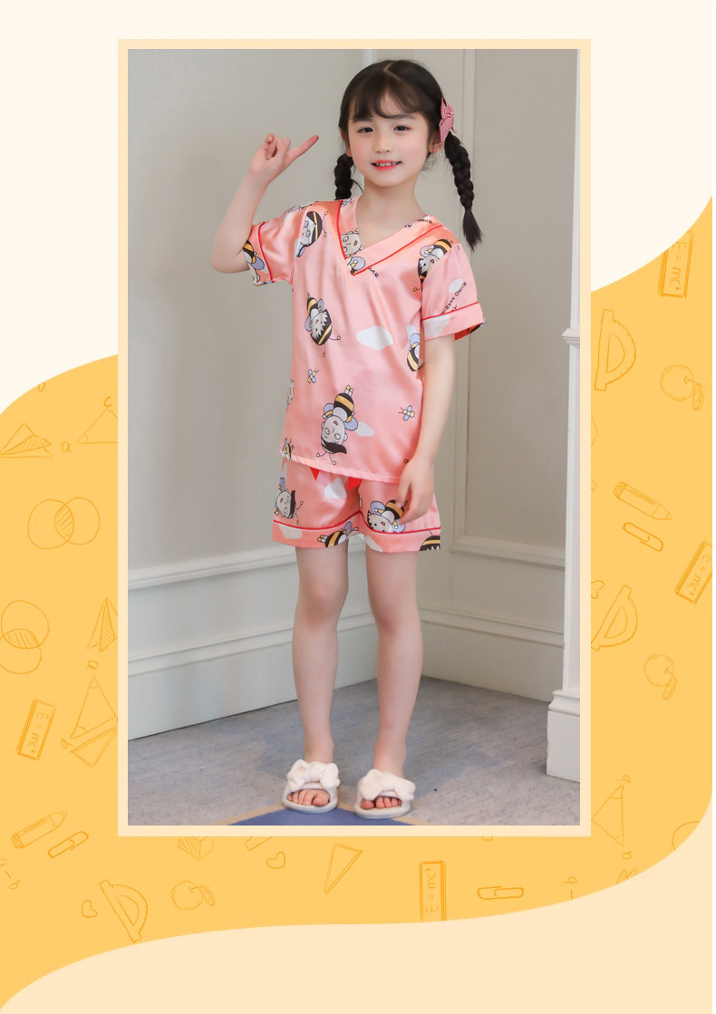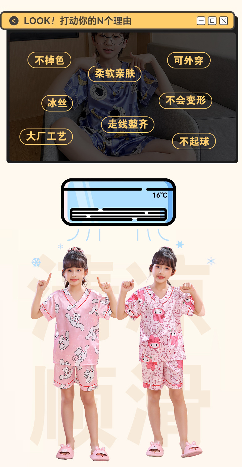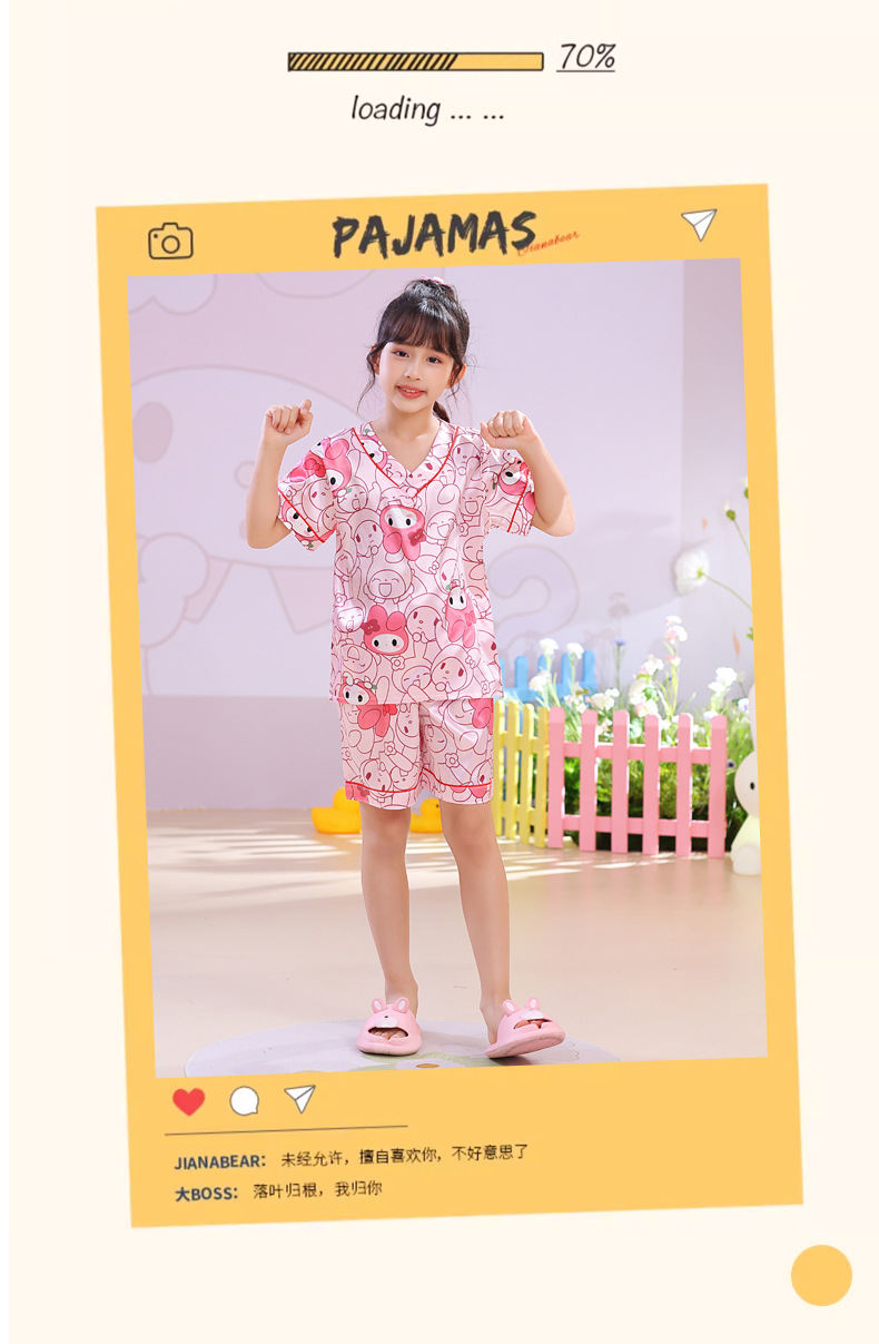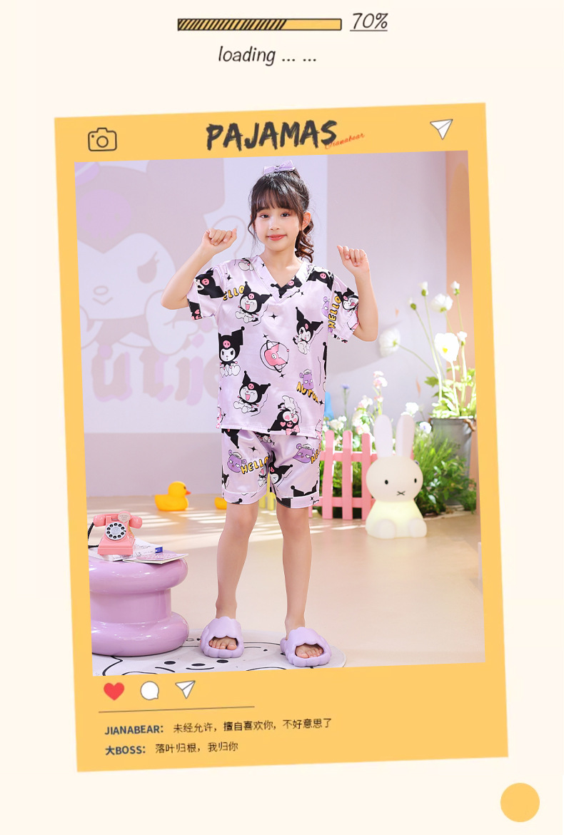사드 여름 만화 V넥 아이스 실크 어린이 한국 잠옷 소년 소녀 반바지 반바지 반팔 통기성 사랑스러운 의류스토어 가기