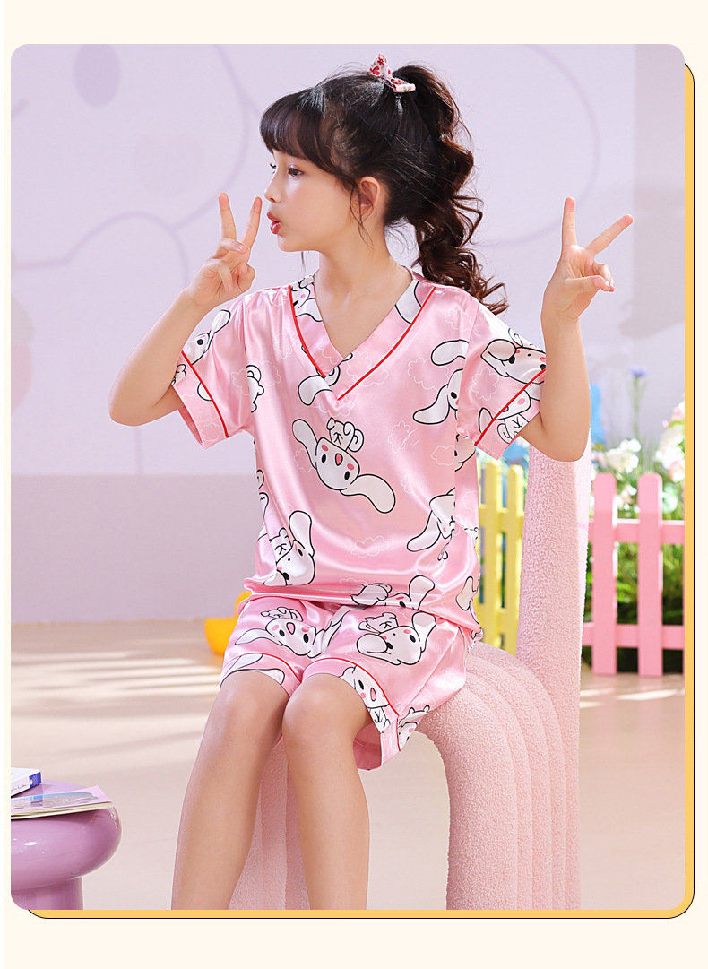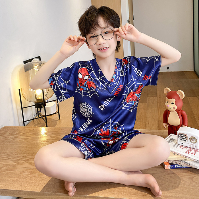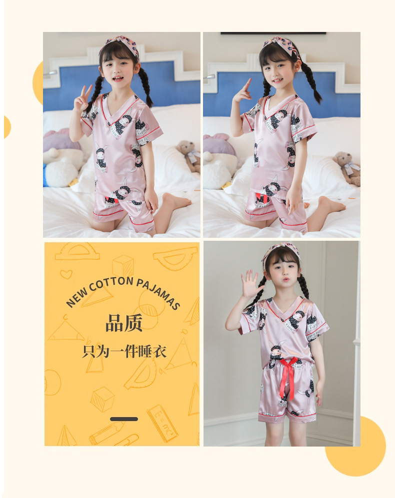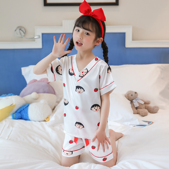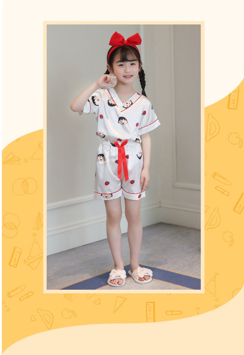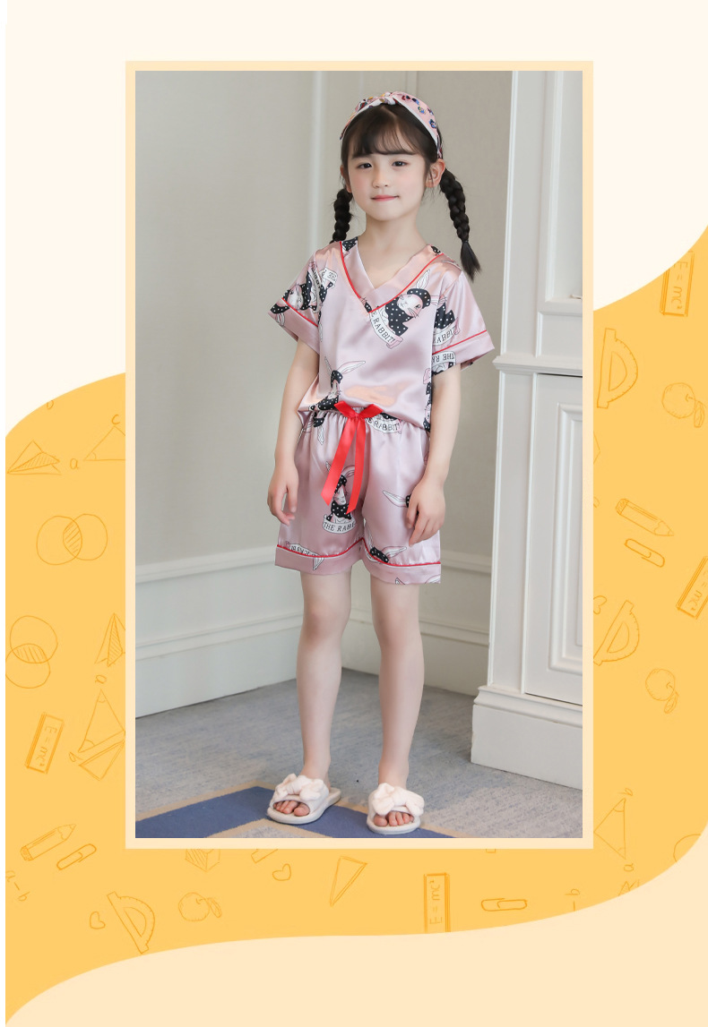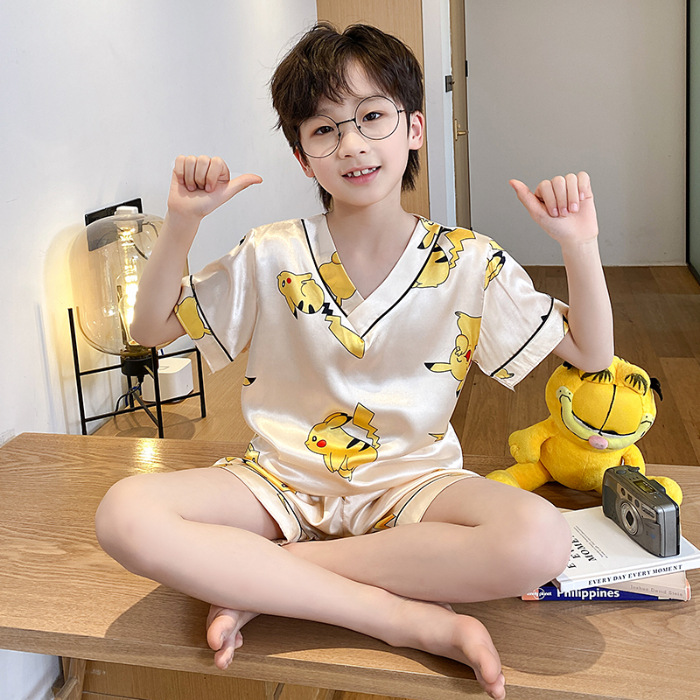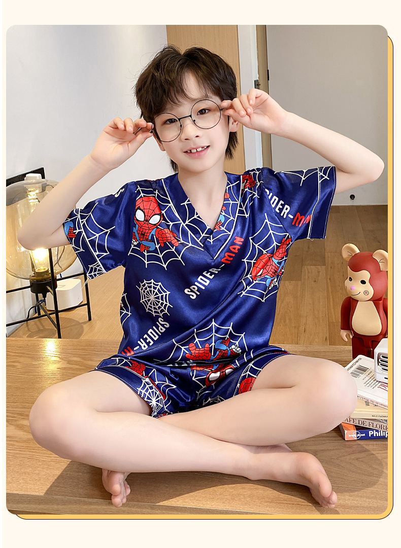 사드 여름 만화 V넥 아이스 실크 어린이 한국 잠옷 소년 소녀 반바지 반바지 반팔 통기성 사랑스러운 의류