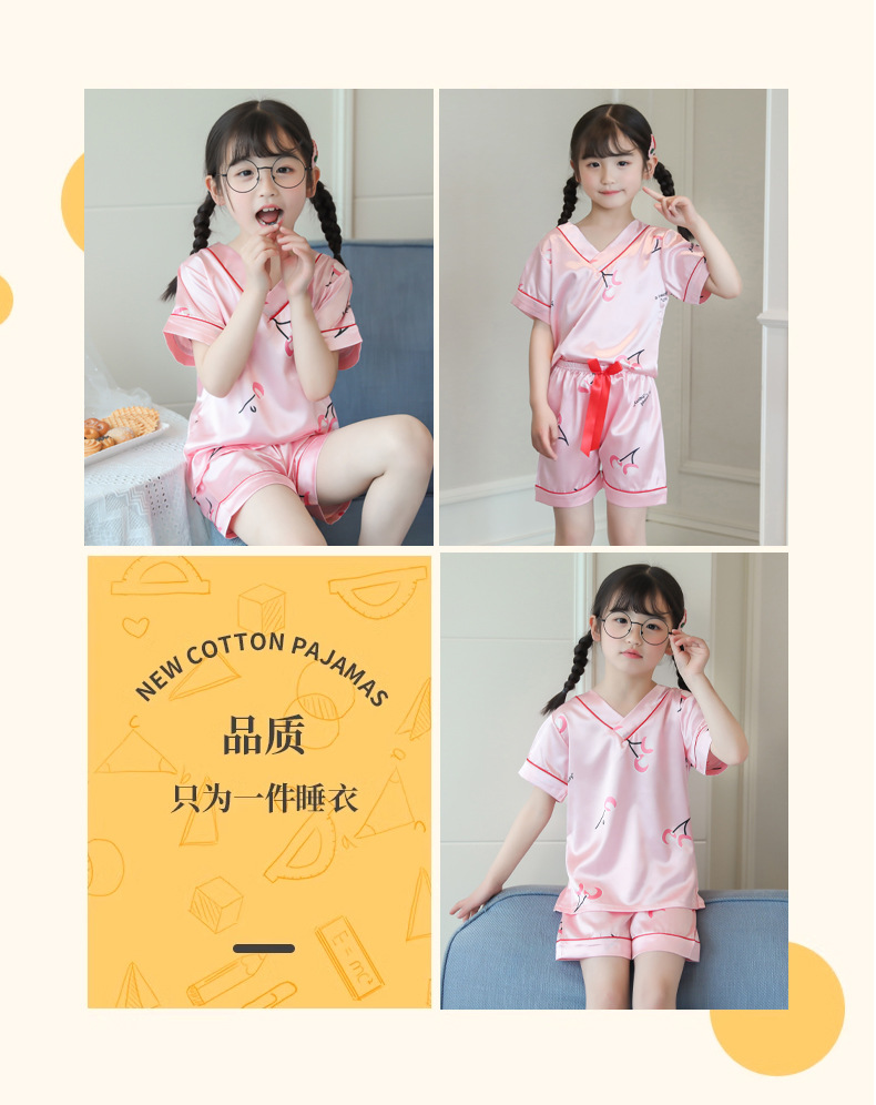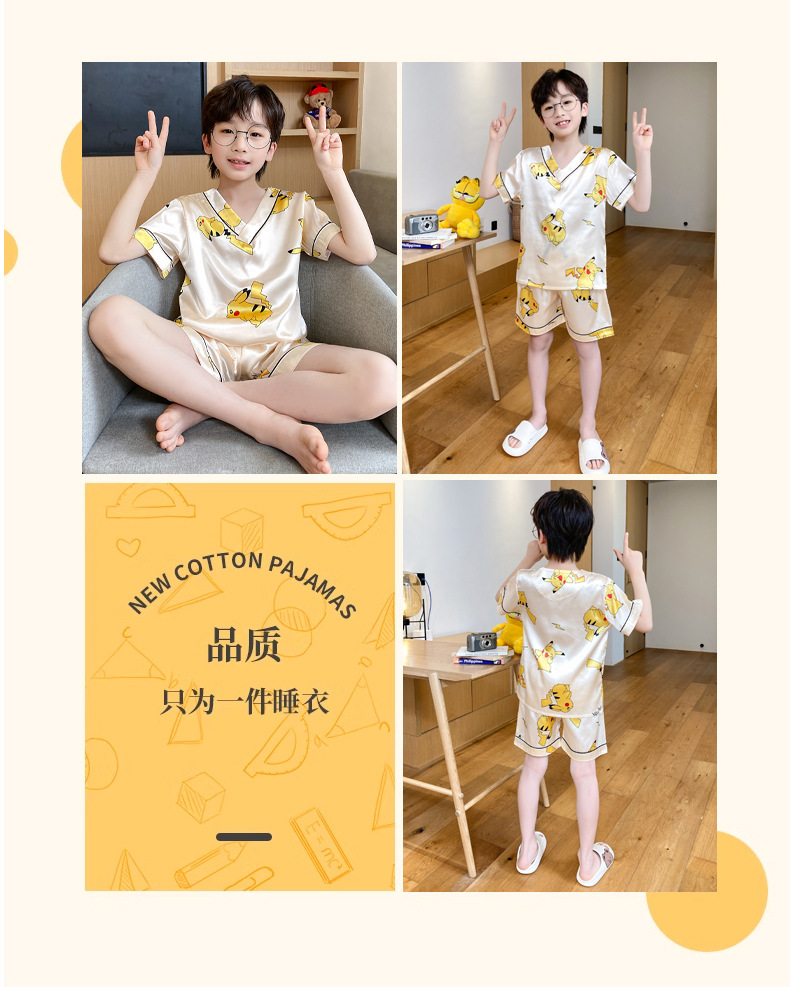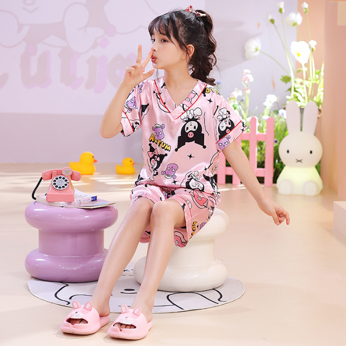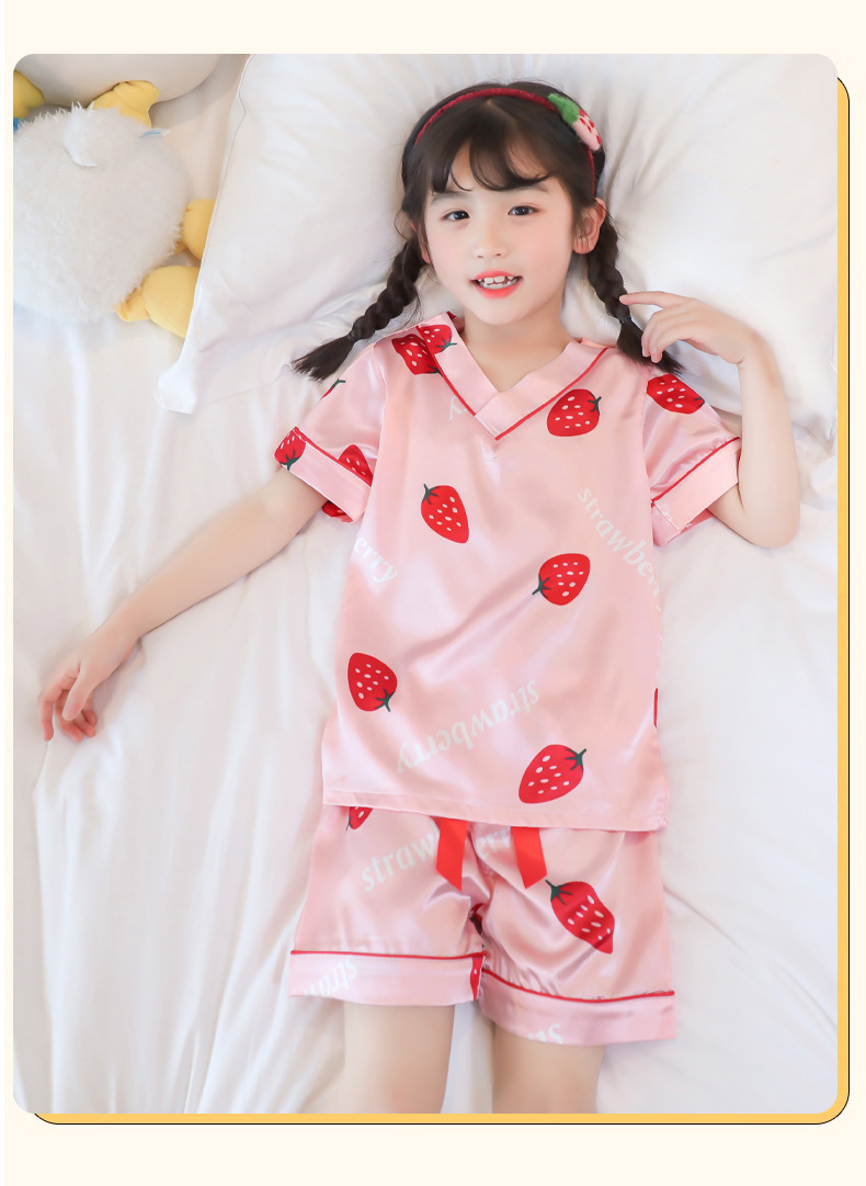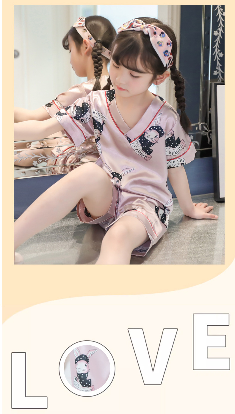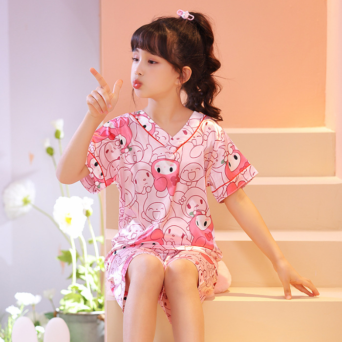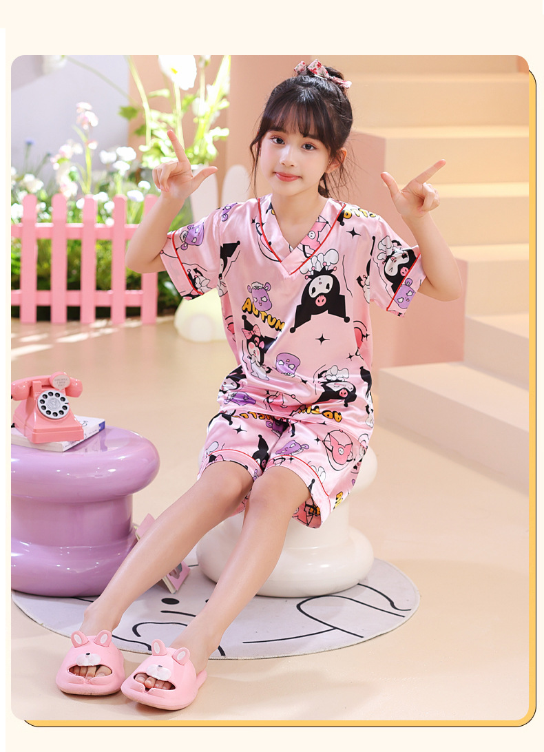 사드 여름 만화 V넥 아이스 실크 어린이 한국 잠옷 소년 소녀 반바지 반바지 반팔 통기성 사랑스러운 의류