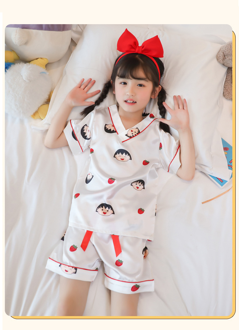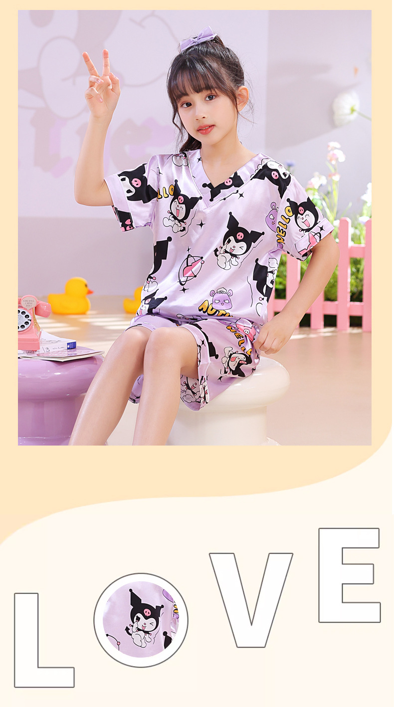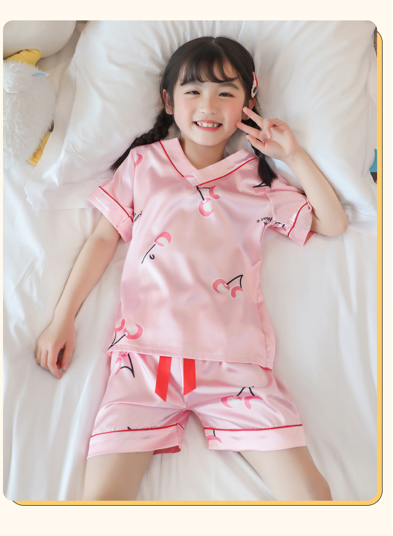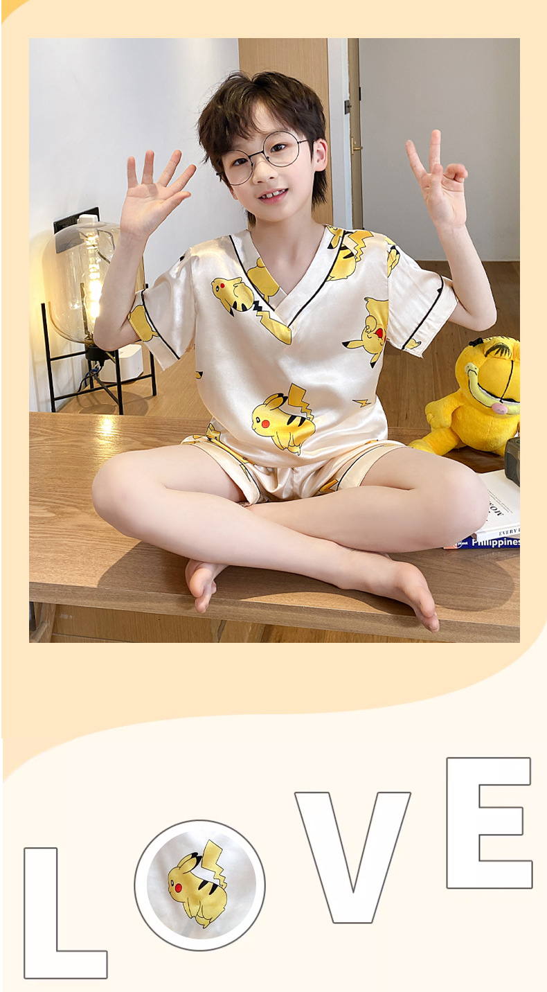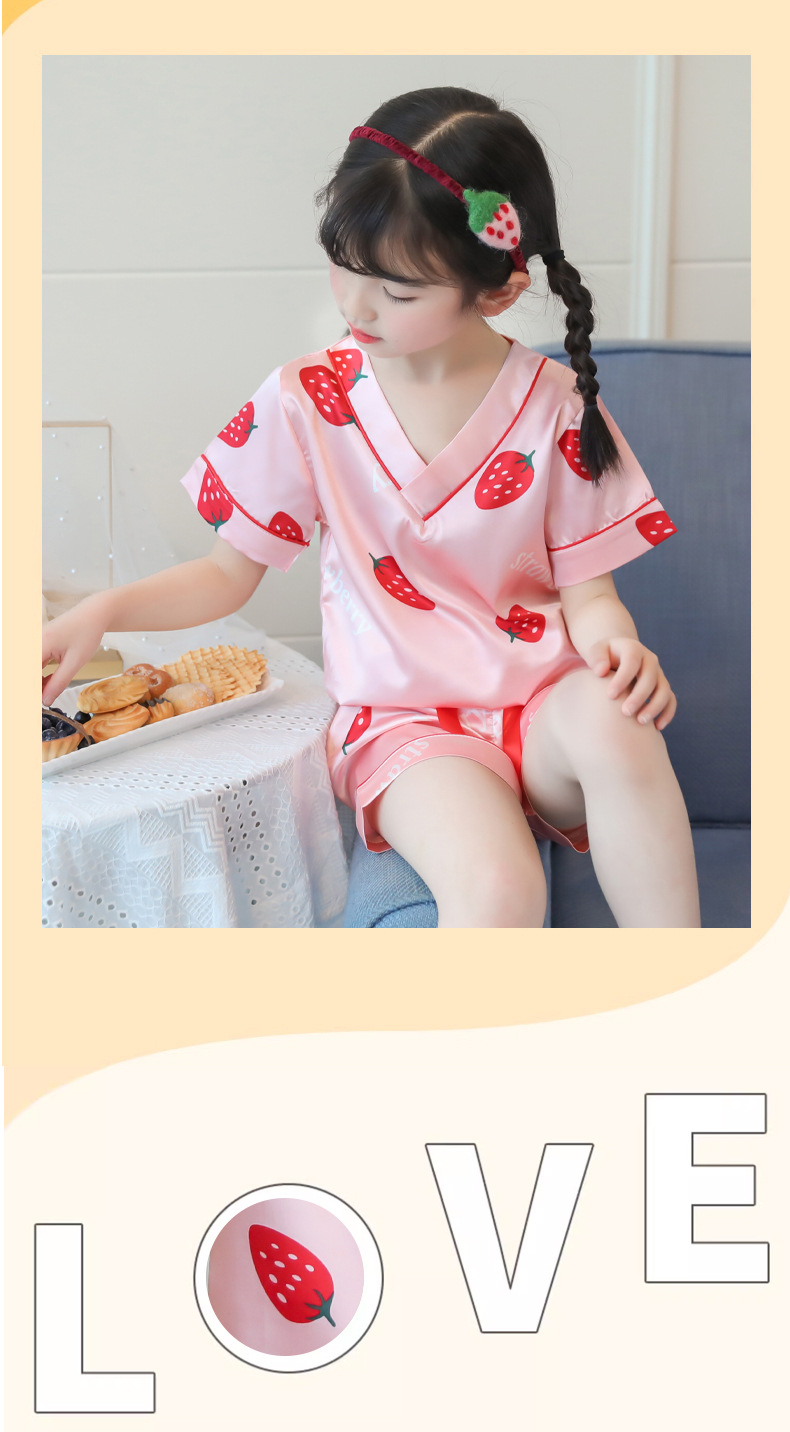 사드 여름 만화 V넥 아이스 실크 어린이 한국 잠옷 소년 소녀 반바지 반바지 반팔 통기성 사랑스러운 의류