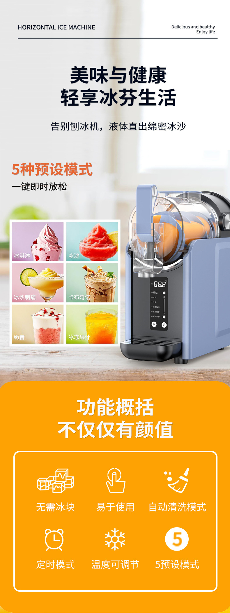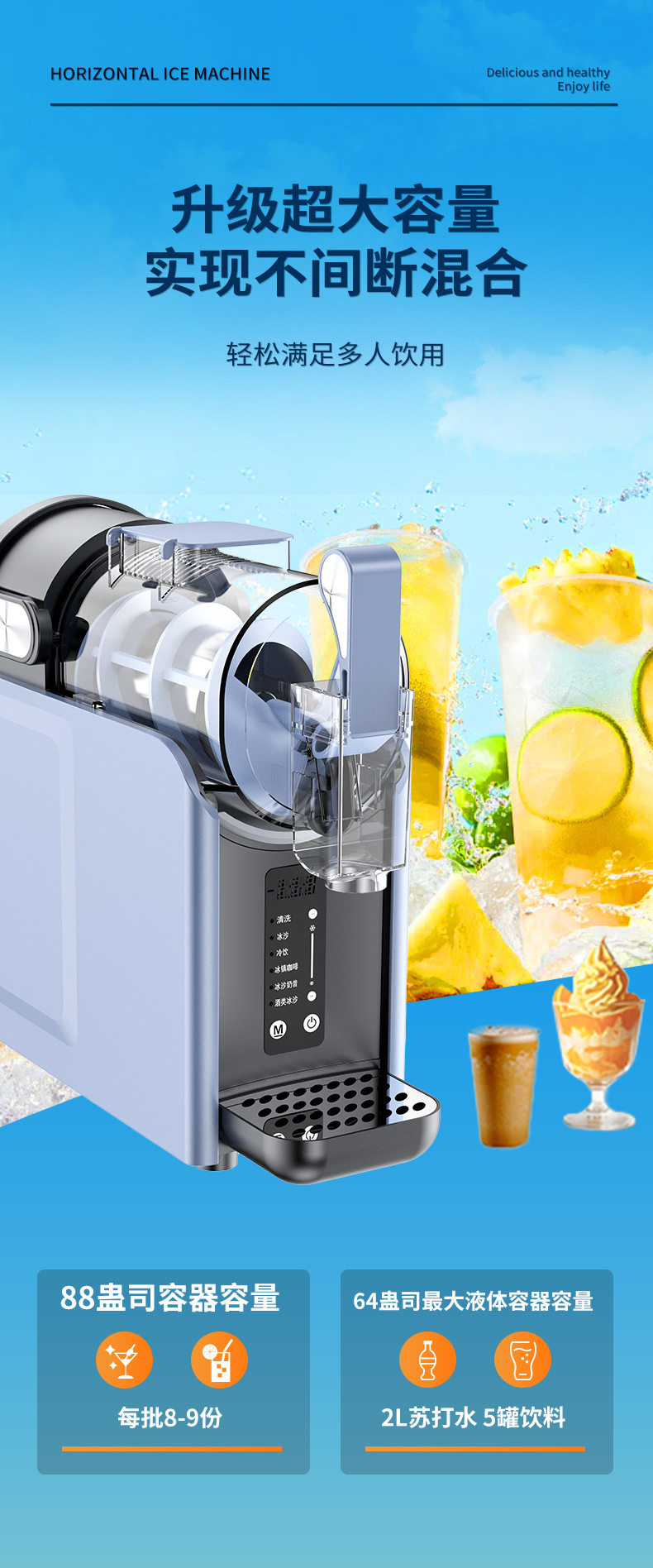 국경을 넘는 아이스크림 기계, 다기능 가정용 소형 제빙기, 완전 자동 탁상형 상업용 대용량 스무디 기계