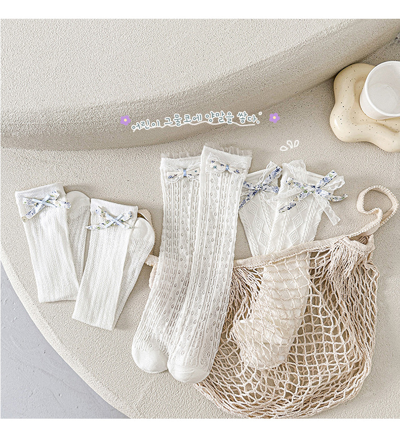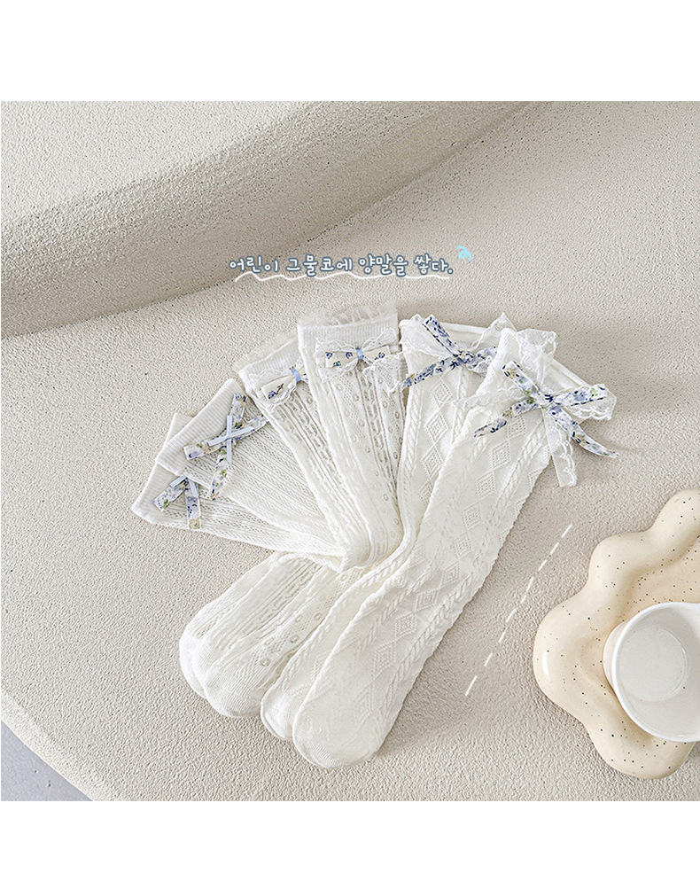 소녀를위한 작은 다리 양말 봄 가을 얇은 작은 꽃 한국 스타일 Ins 어린이를위한 달콤한 레이스 더미 양말 화이트스토어 가기