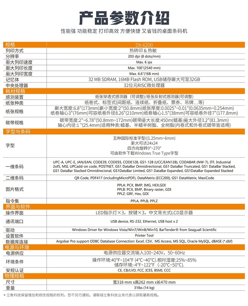 ARGOX 서 이미지 DX-6200 6 인치 라벨 바코드 프린터 203dpi 너비 168mm 대신 G6000