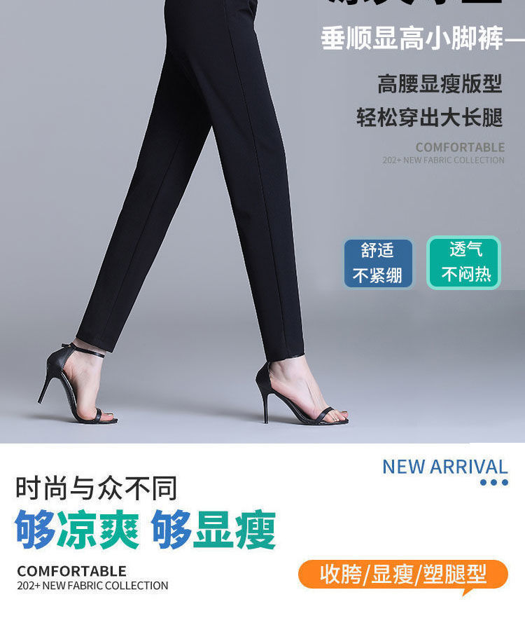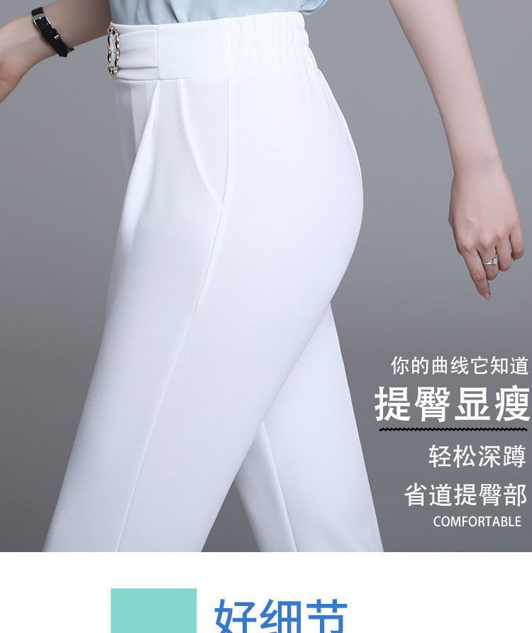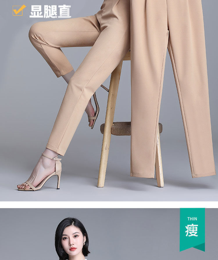 2025 년 여름 새로운 아이스 실크 할렌 바지 여성용 하이 허리 자른 슬림 핏 슬리밍 올 매치 딥 스타일 바지스토어 가기