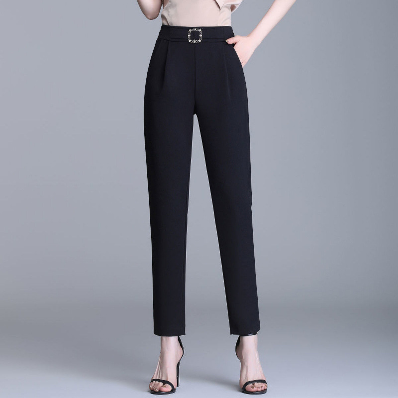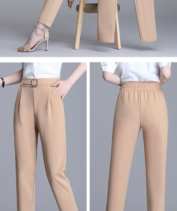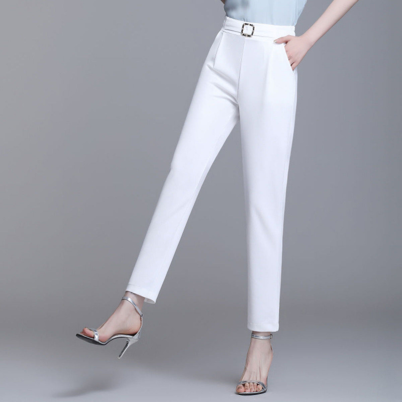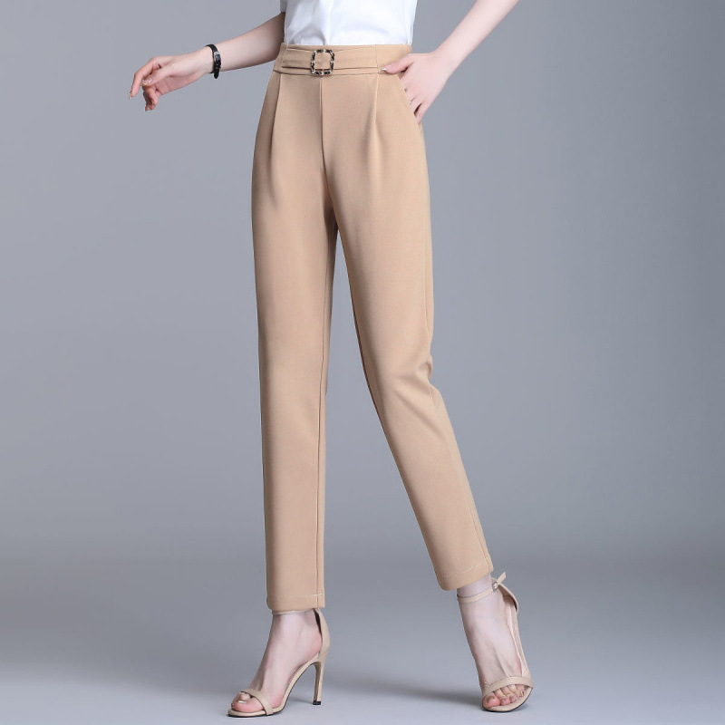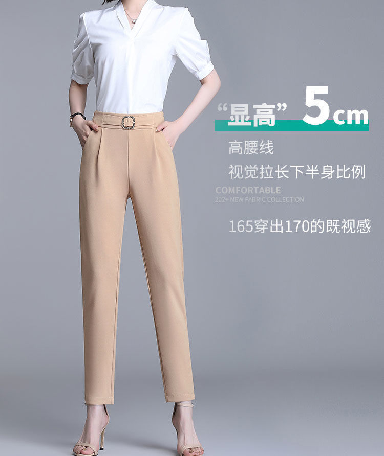 2025 년 여름 새로운 아이스 실크 할렌 바지 여성용 하이 허리 자른 슬림 핏 슬리밍 올 매치 딥 스타일 바지
