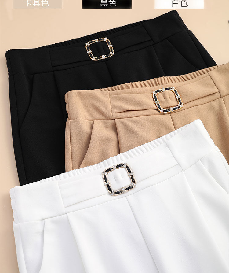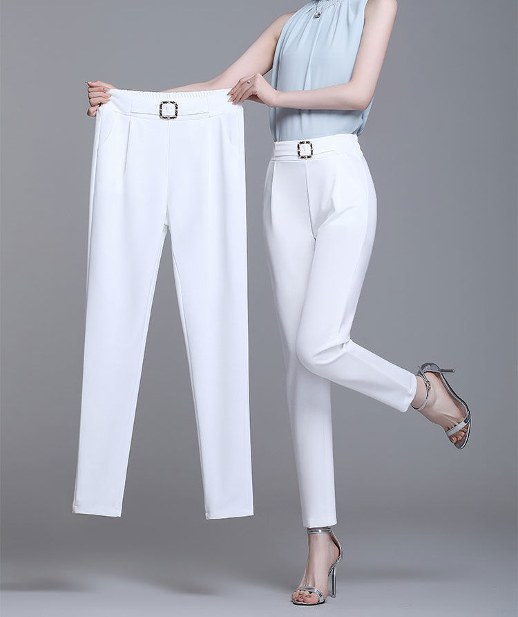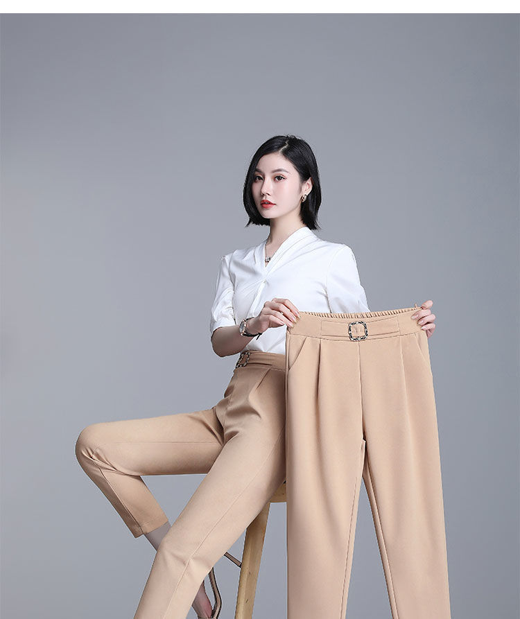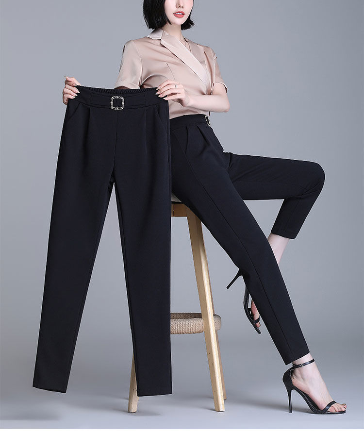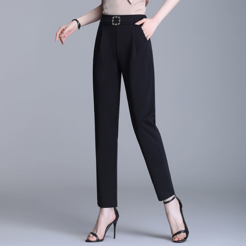 2025 년 여름 새로운 아이스 실크 할렌 바지 여성용 하이 허리 자른 슬림 핏 슬리밍 올 매치 딥 스타일 바지
