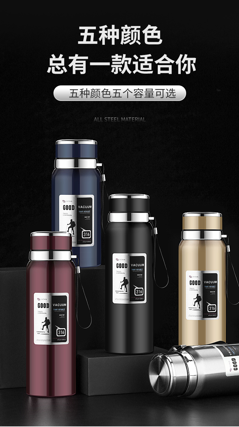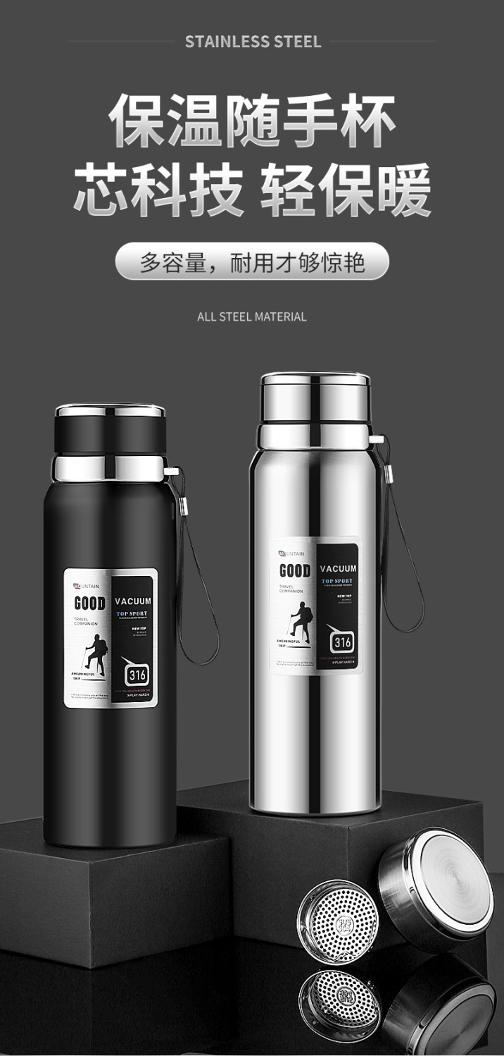 대용량 스테인레스 스틸 보온병 자동차 휴대용 학생 야외 물 컵 남자 티 컵