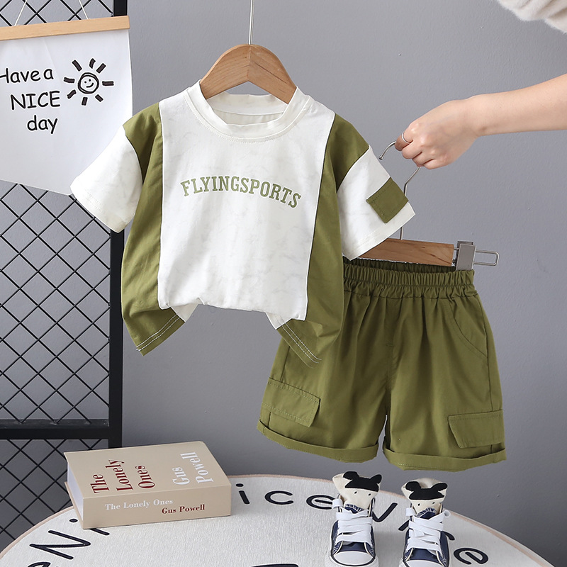 어린이 여름 2025 새로운 아동복 문자 색상 세트 반팔 소년의 아기 도구 반바지 투피스 유행 세트