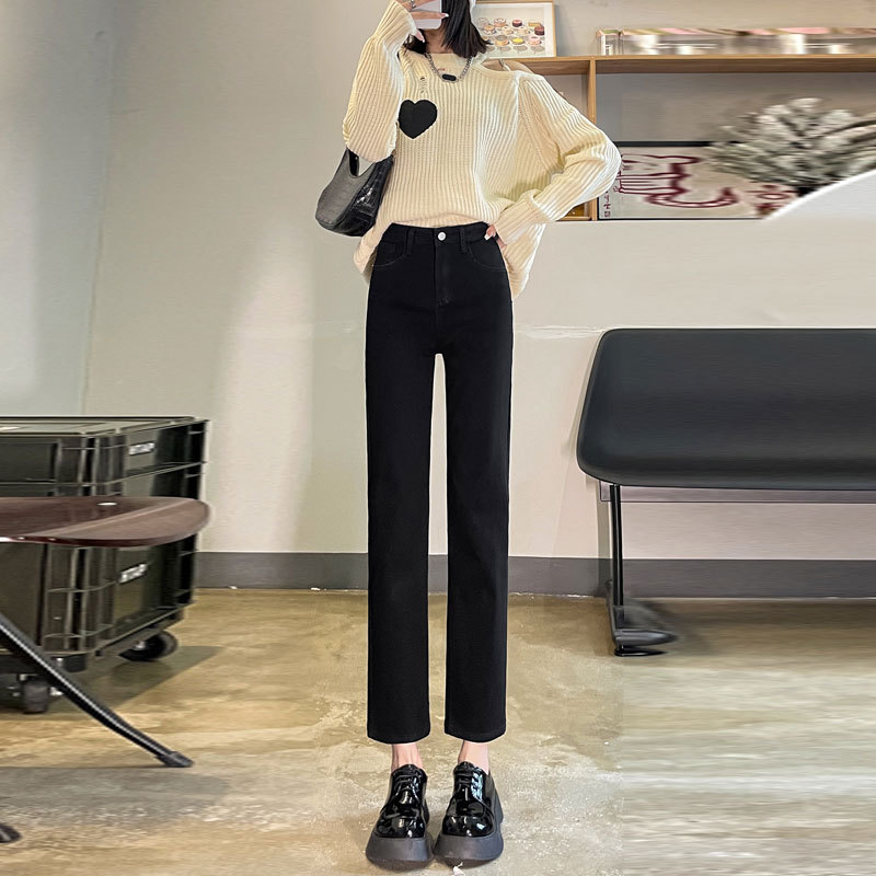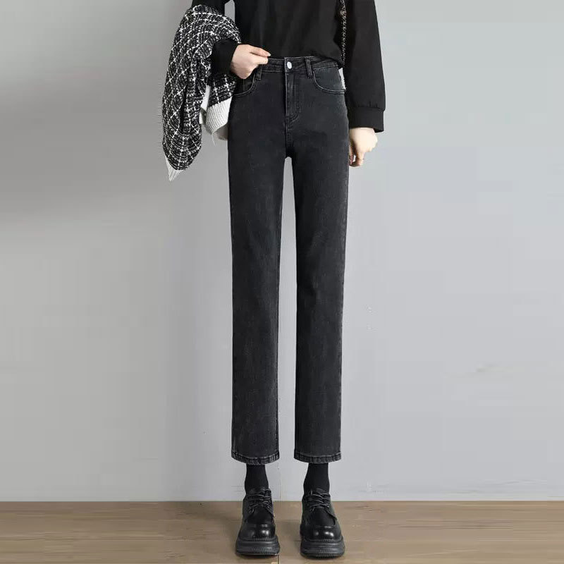 데님 발목 길이 바지 여성 패션 새로운 한국 스타일 올매치 슬림 핏 하이 웨이스트 레트로 사이버 Celebrant 스트레치 연기 튜브 스트레이트 팬츠