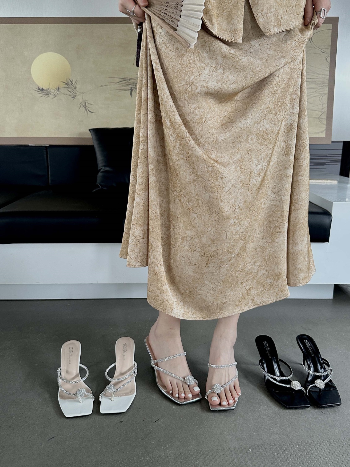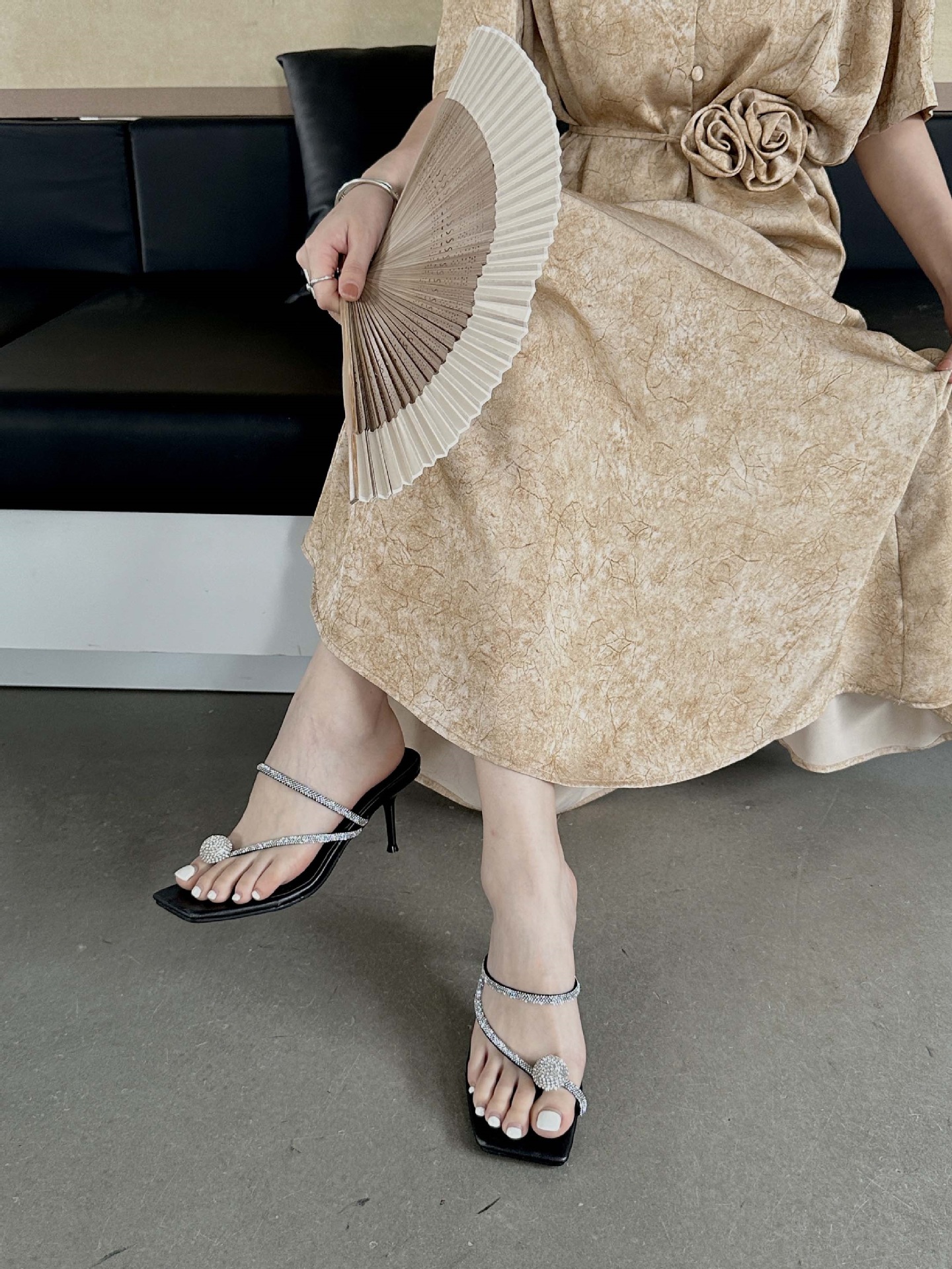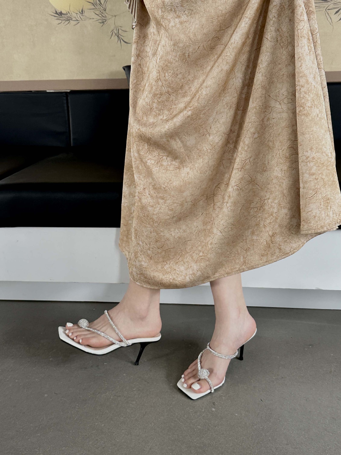 Xiaozhong 하이힐 라인스톤 샌들 및 슬리퍼 외부 여성용 신발 2025 신여름 원피스 우아한 샌들스토어 가기