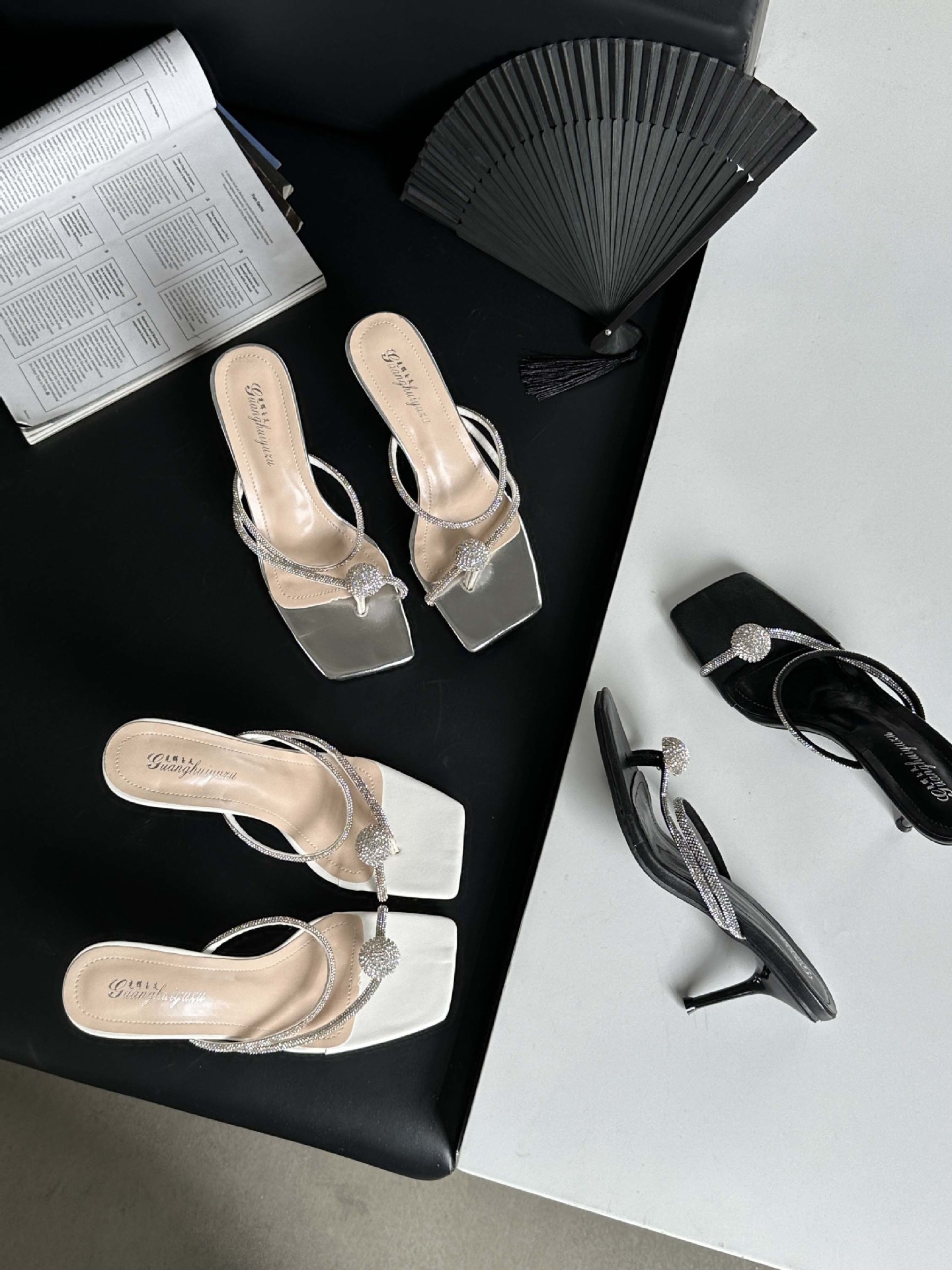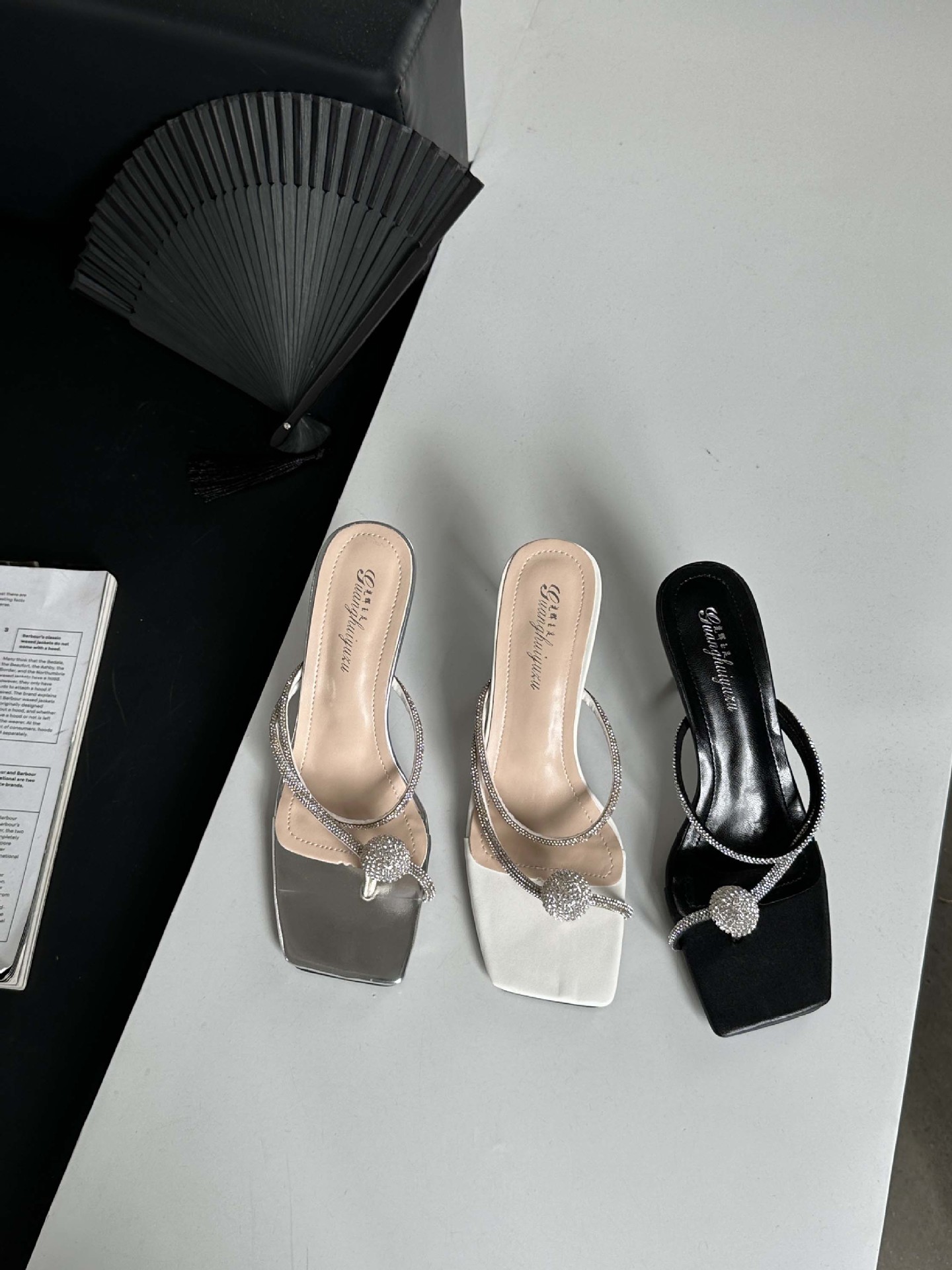 Xiaozhong 하이힐 라인스톤 샌들 및 슬리퍼 외부 여성용 신발 2025 신여름 원피스 우아한 샌들