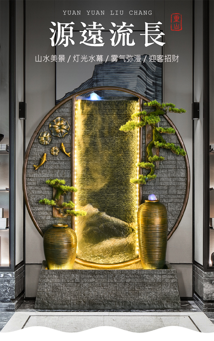 행운을 불러오는 물 커튼 인공산수 분수 장식품 사무실 거실 순환수 경관 개업 집들이 선물