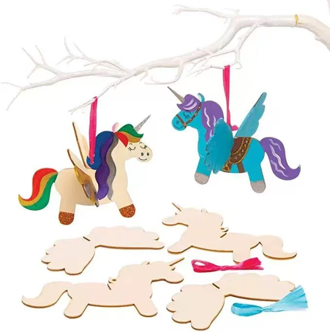 새로운 어린이 DIY 나무 공백 페가수스 펜던트 어린이 날 창조적 인 페가수스 직소 펜던트