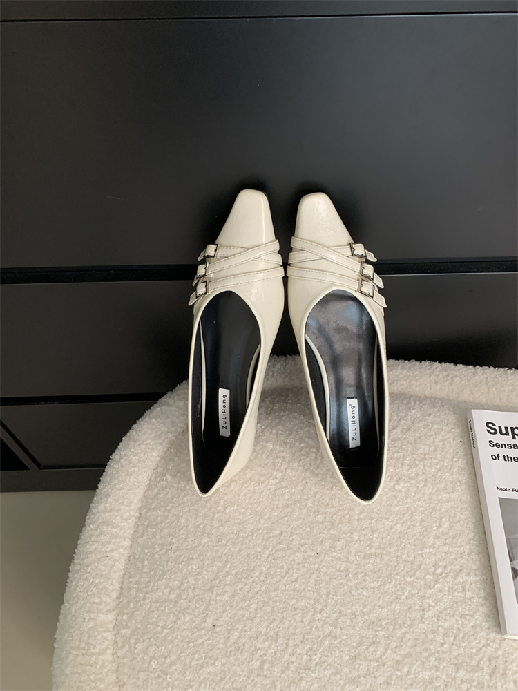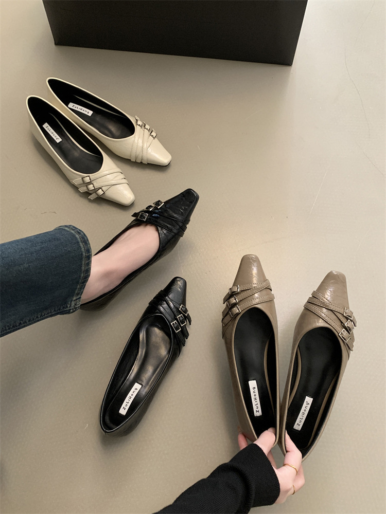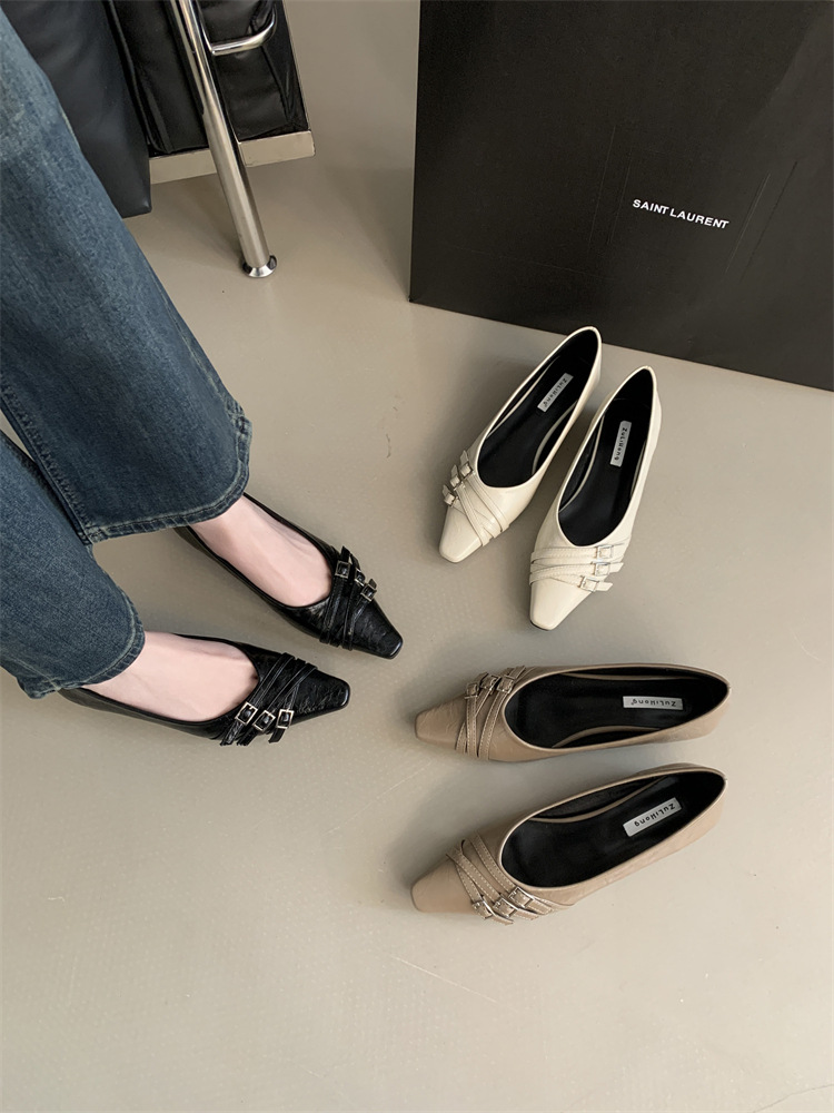 프랑스 통근 신발 틈새 낮은 발 뒤꿈치 신발 여성의 2025 년 봄과 가을 새로운 치마 이브닝 슈즈스토어 가기