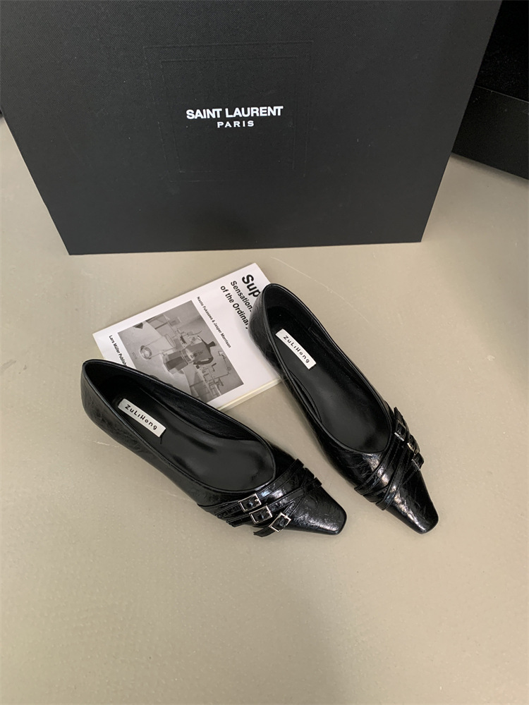 프랑스 통근 신발 틈새 낮은 발 뒤꿈치 신발 여성의 2025 년 봄과 가을 새로운 치마 이브닝 슈즈