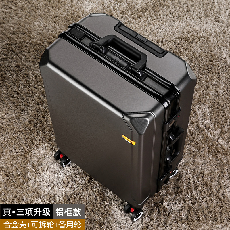 강한 두꺼운 수하물 케이스 소년 유니버설 휠 남자 알루미늄 프레임 넥타이 막대 암호 상자 여행 수하물 트롤리 케이스