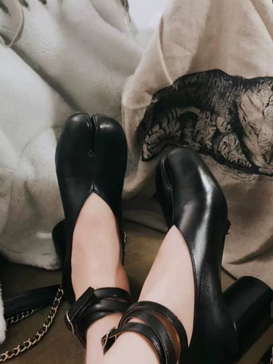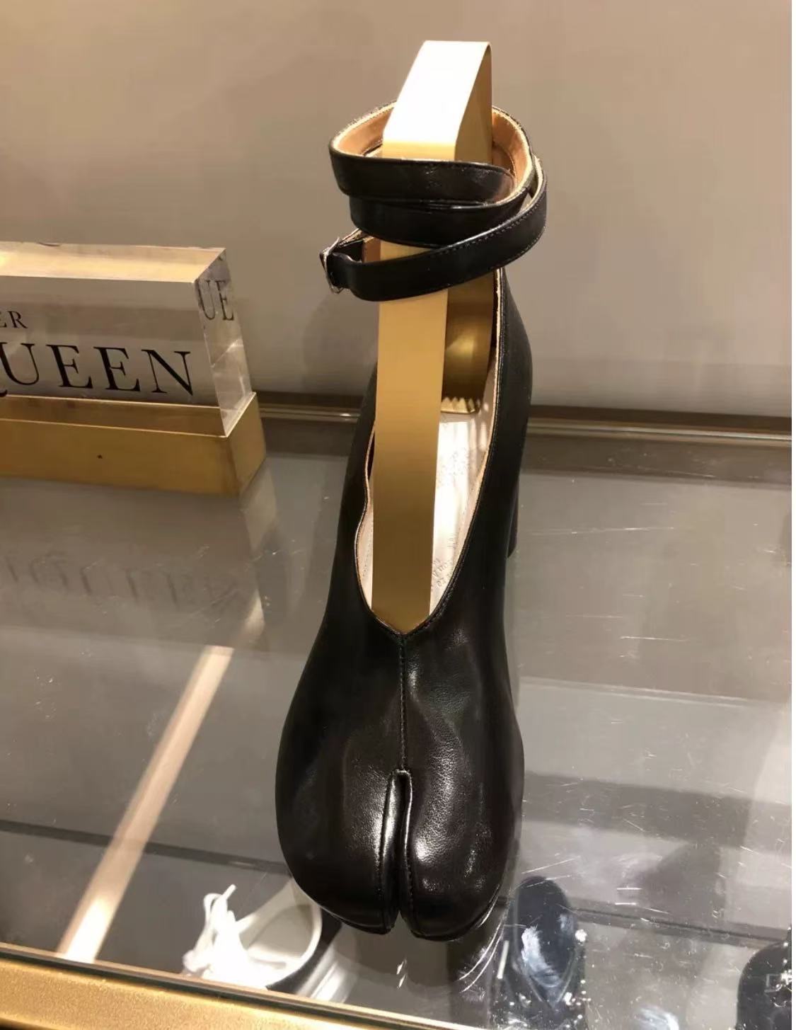 Mm6 인터넷-유명한 같은 스타일 봄과 여름 새로운 스타일 작은 가죽 신발 여성 복고풍 발가락 신발 메리 제인 청키 힐 하이힐 싱글 레이어 신발 샌들스토어 가기