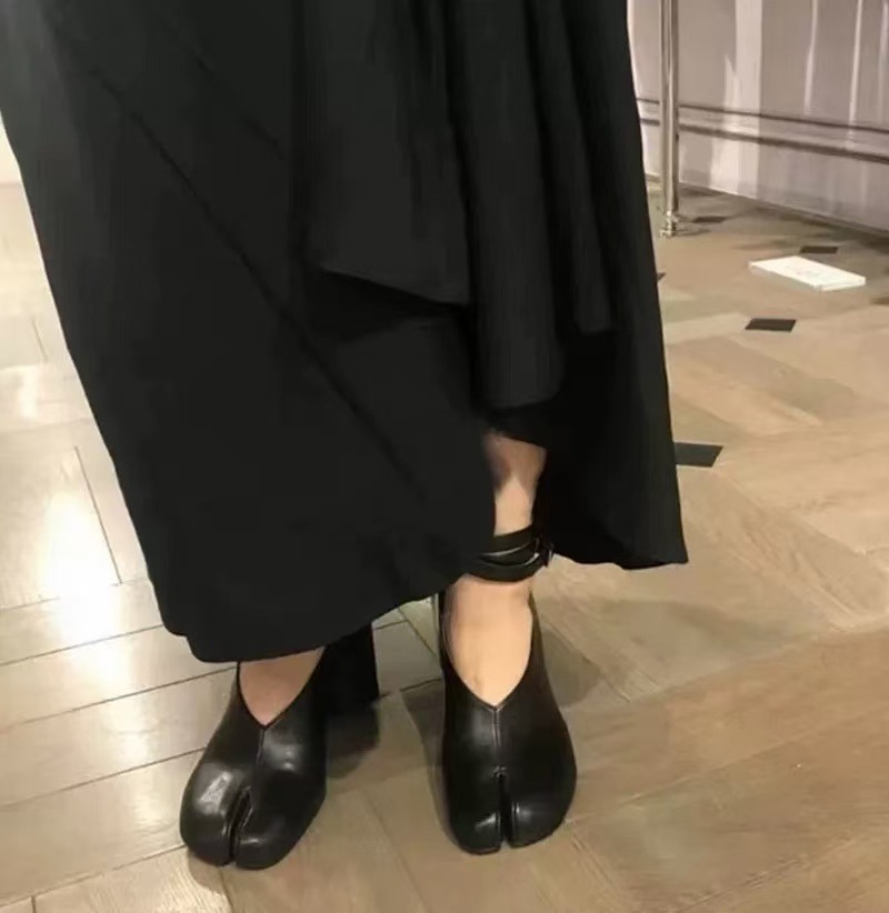 Mm6 인터넷-유명한 같은 스타일 봄과 여름 새로운 스타일 작은 가죽 신발 여성 복고풍 발가락 신발 메리 제인 청키 힐 하이힐 싱글 레이어 신발 샌들
