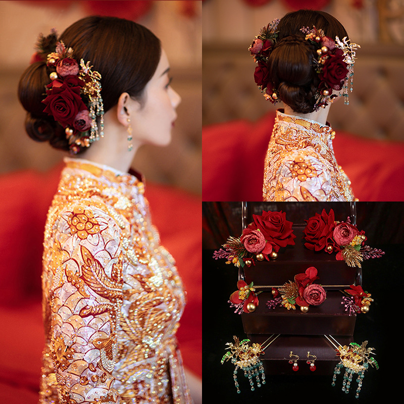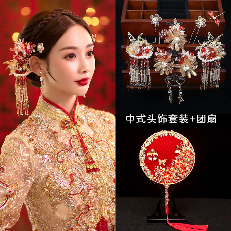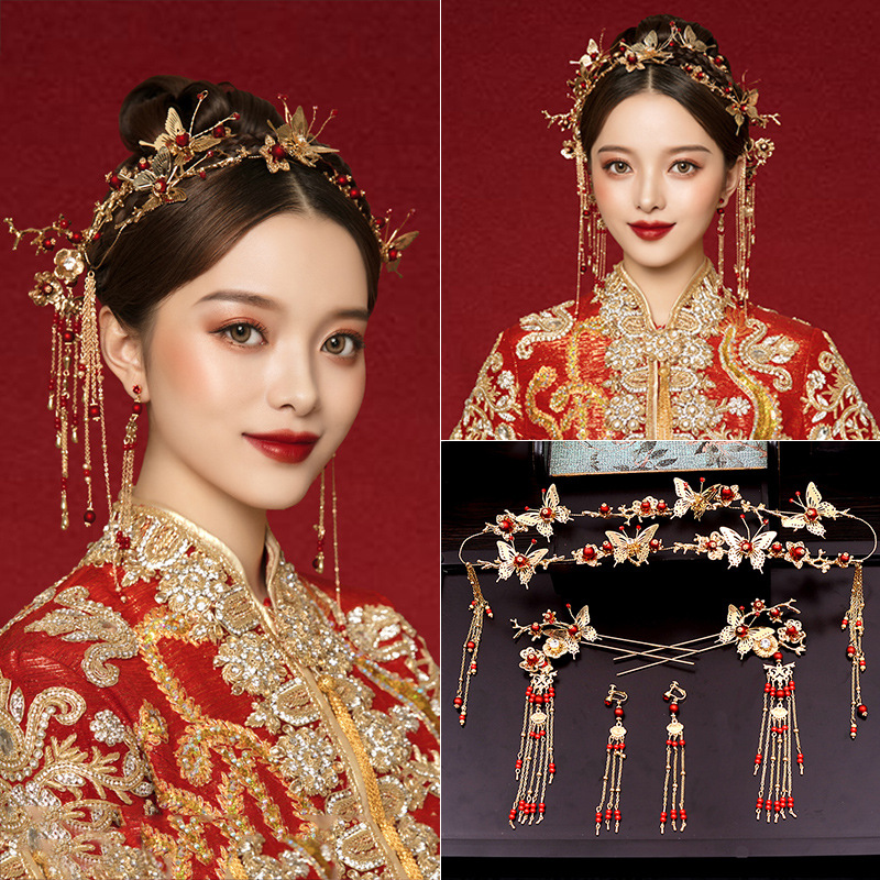 신부 Xiuhe 헤드웨어 2024 새로운 중국 스타일 스텝 업 피닉스 크라운 고대 원피스 헤어 액세서리 웨딩 Xiuhe 원피스 드래곤과 피닉스 자켓 말 스몰