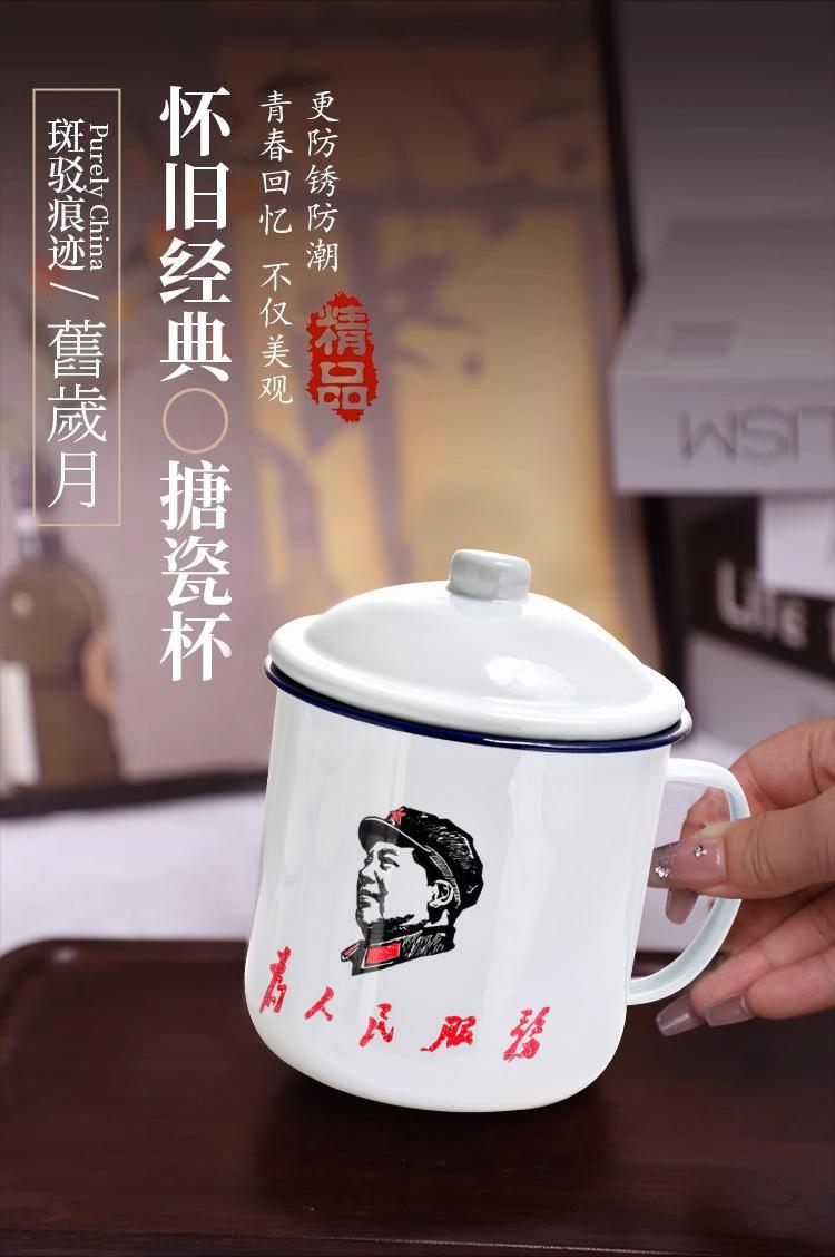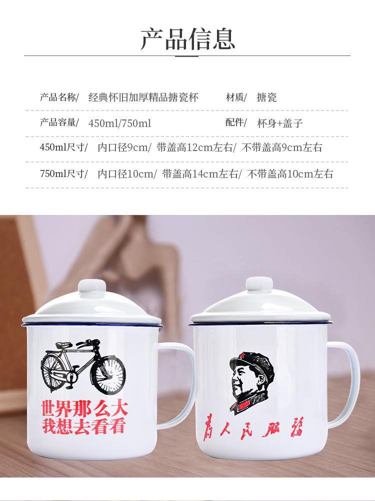 CER. 소년 구식 차 항아리 클래식 오래된 간부 차도 차를위한 뚜껑 대용량 워터 컵 에나멜 컵 향수 머그잔