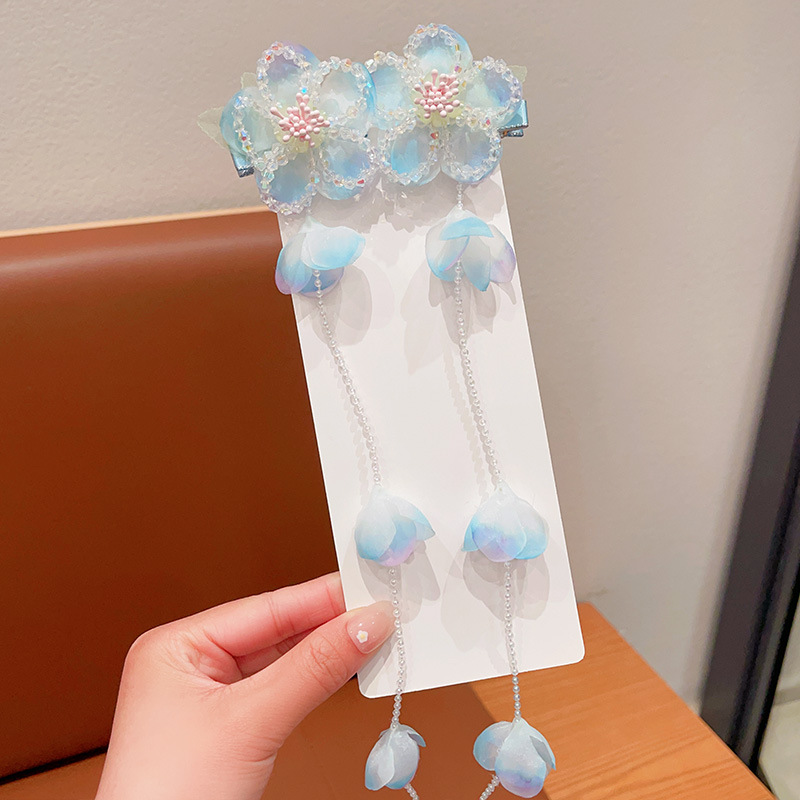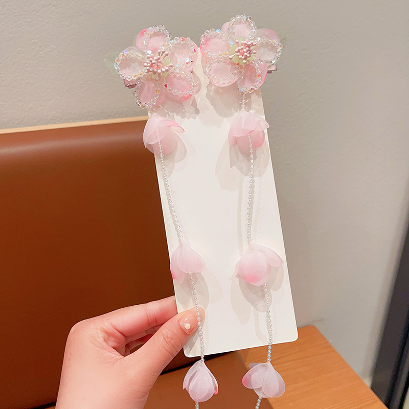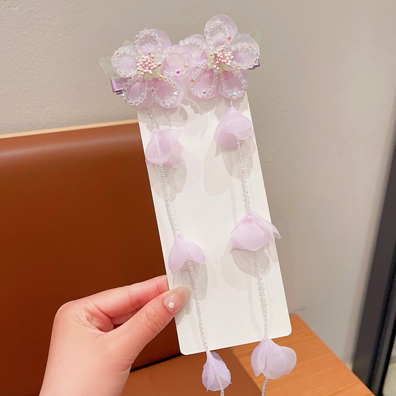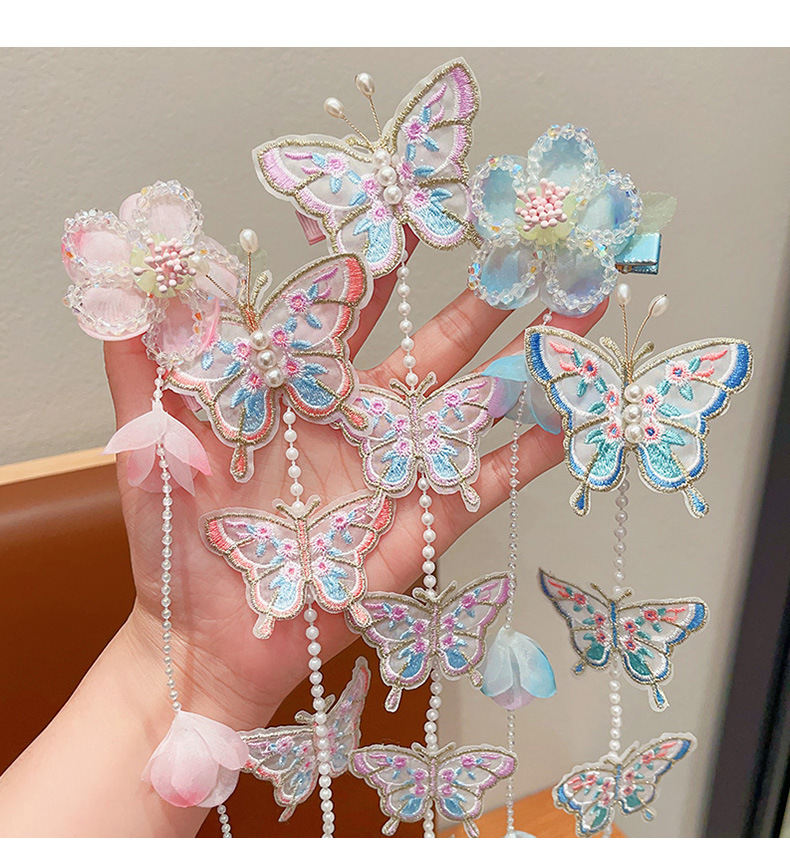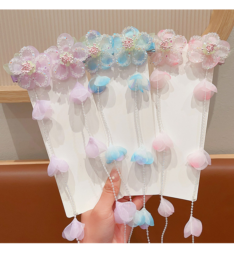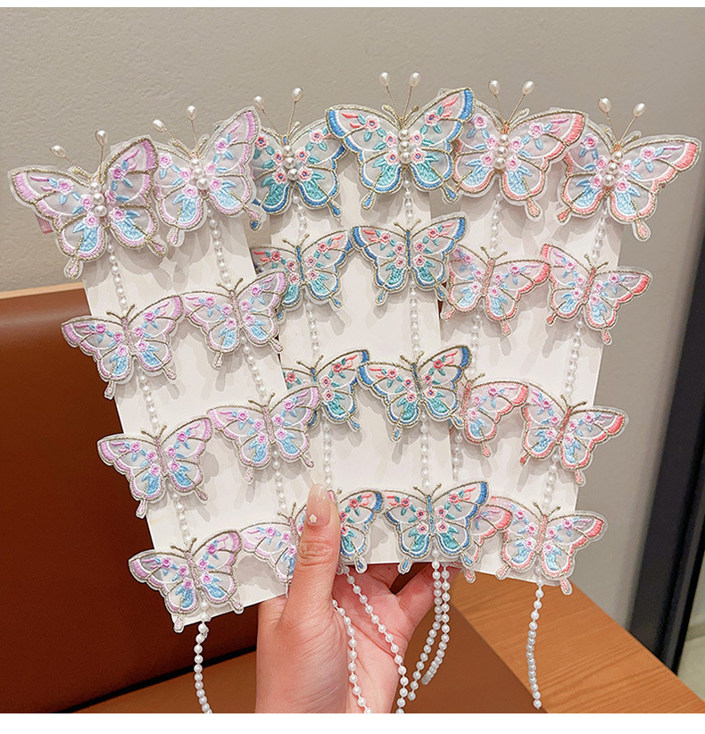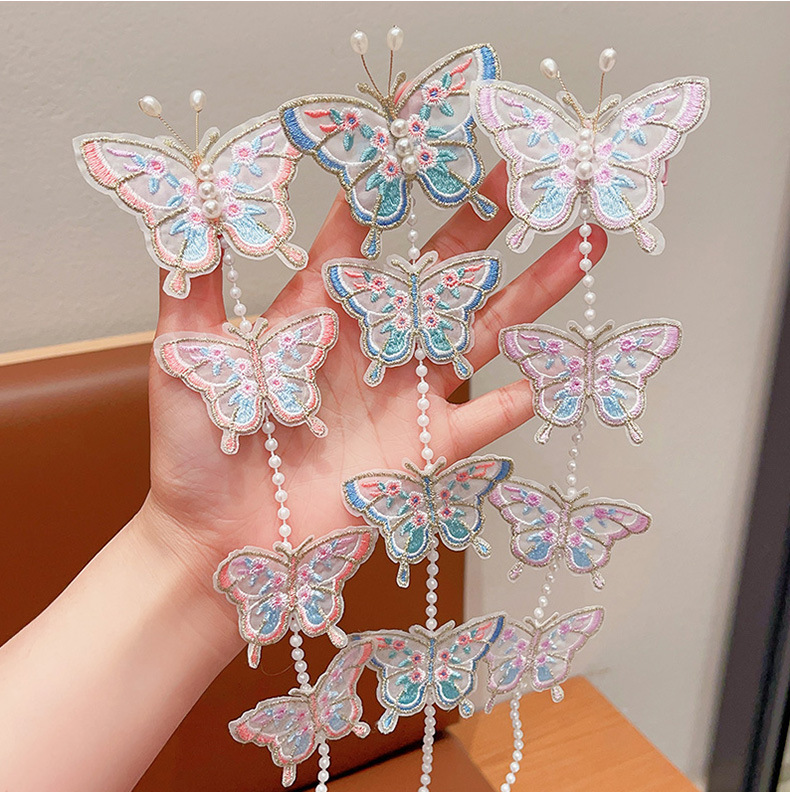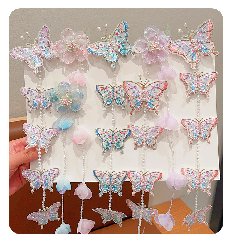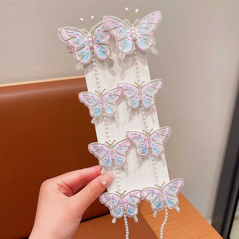 한푸 액세서리 슈퍼 요정 진주 컬러 나비 헤어핀 어린이 헤어 액세서리 쌍 클립 소녀 꽃 헤어 체인 머리를 치지 않습니다스토어 가기