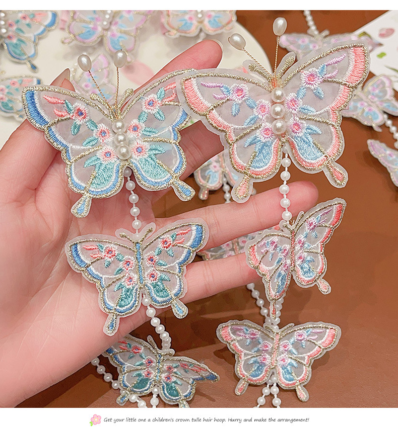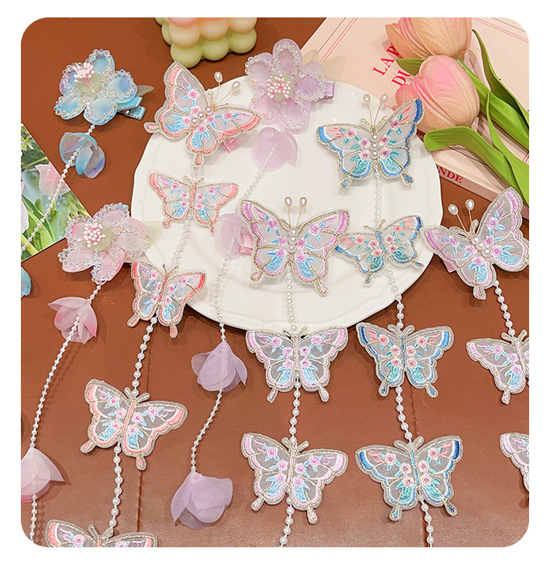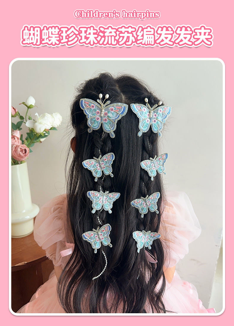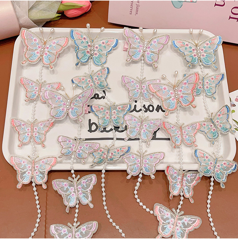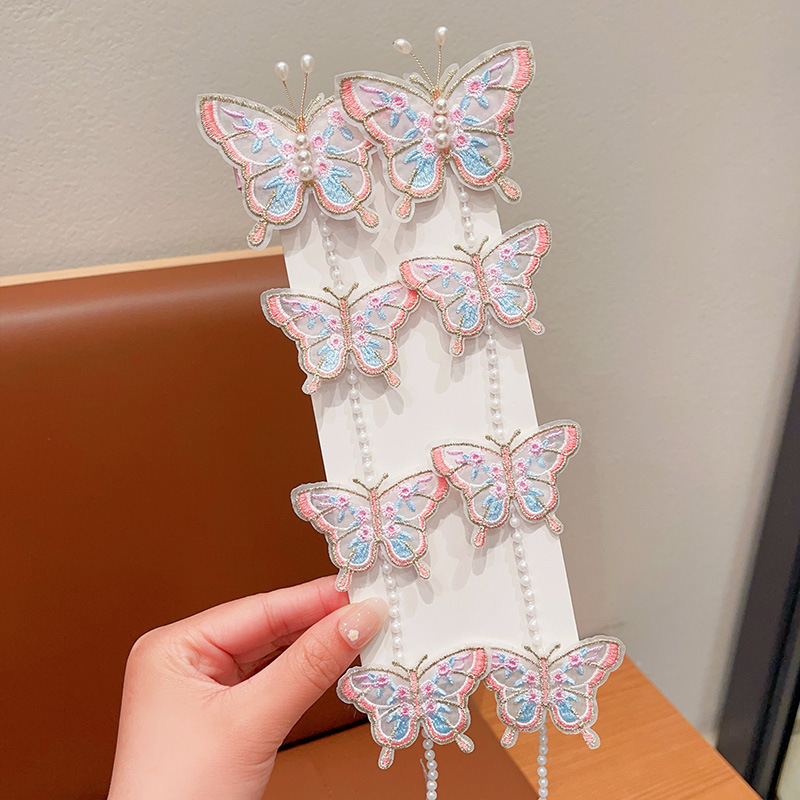 한푸 액세서리 슈퍼 요정 진주 컬러 나비 헤어핀 어린이 헤어 액세서리 쌍 클립 소녀 꽃 헤어 체인 머리를 치지 않습니다