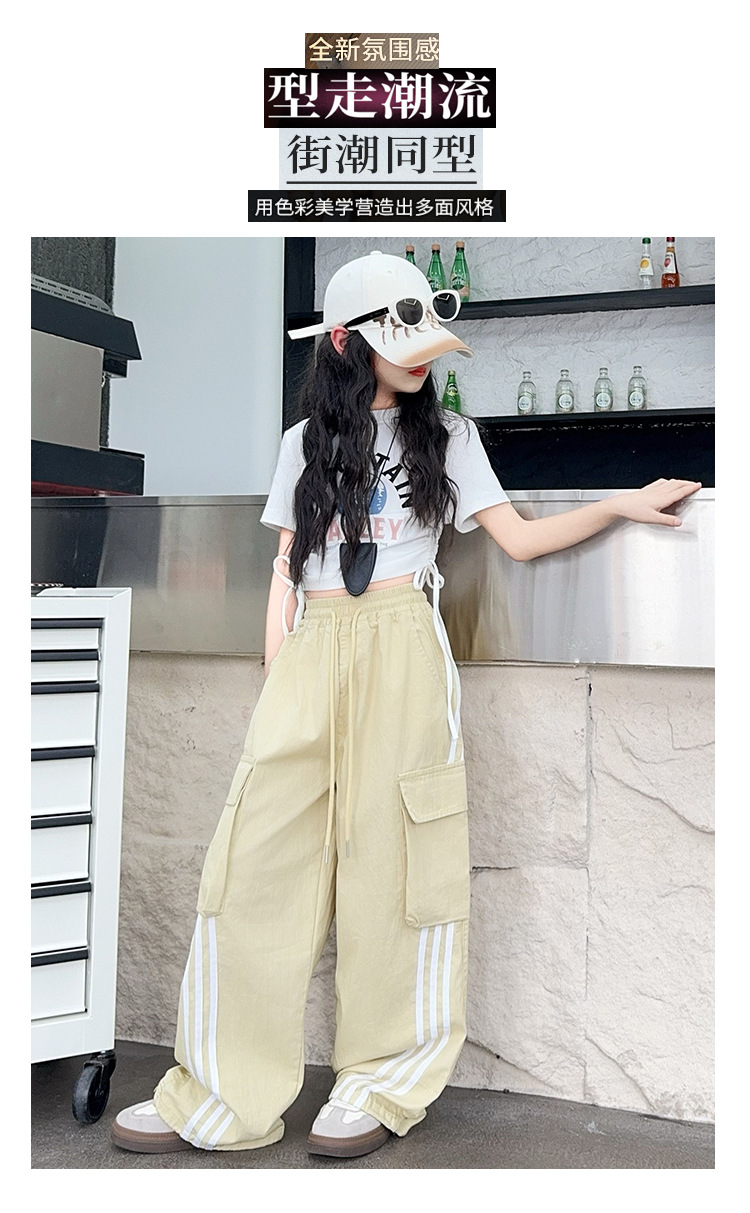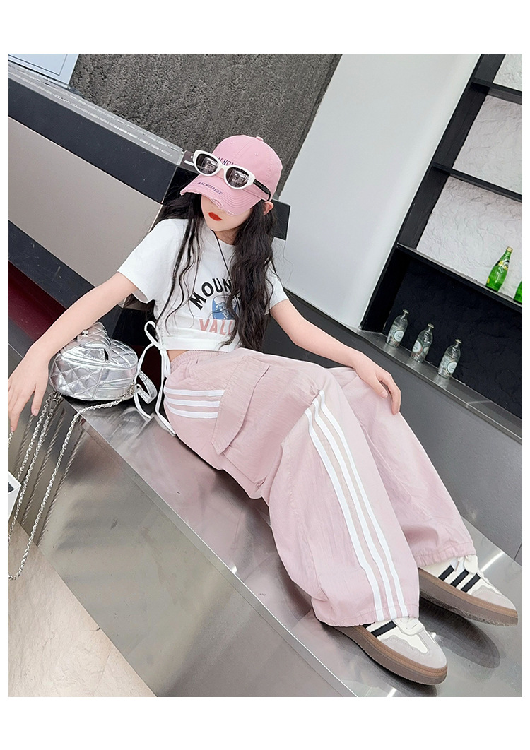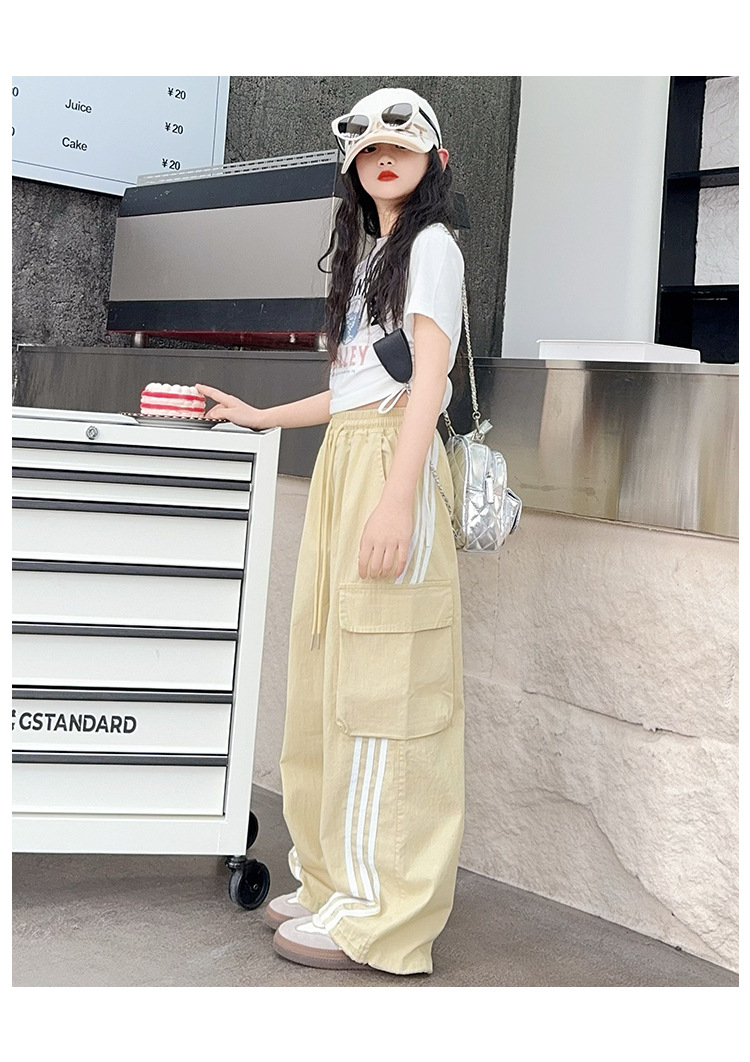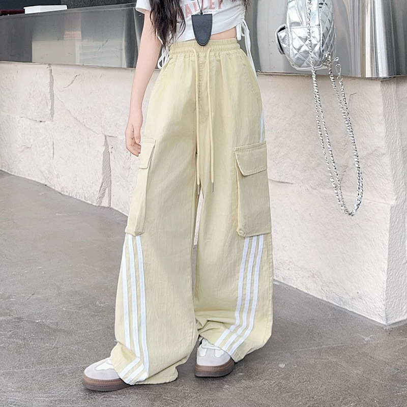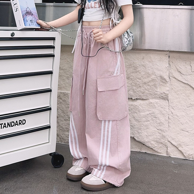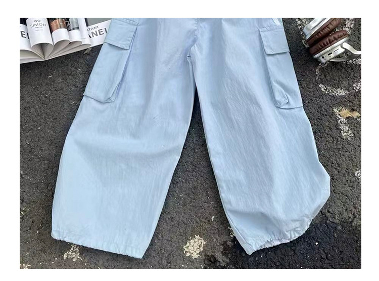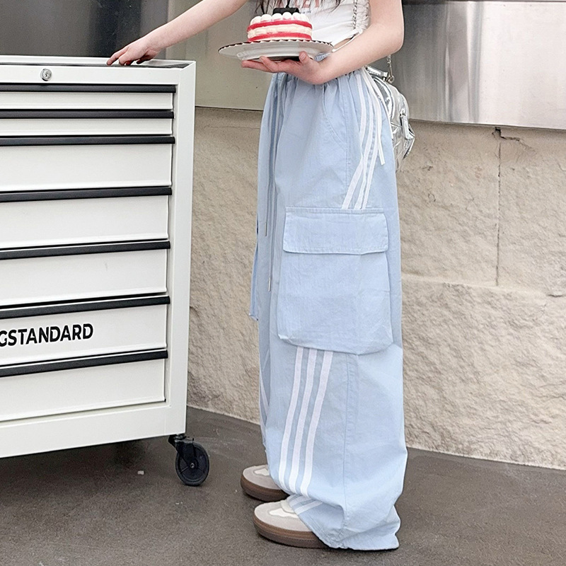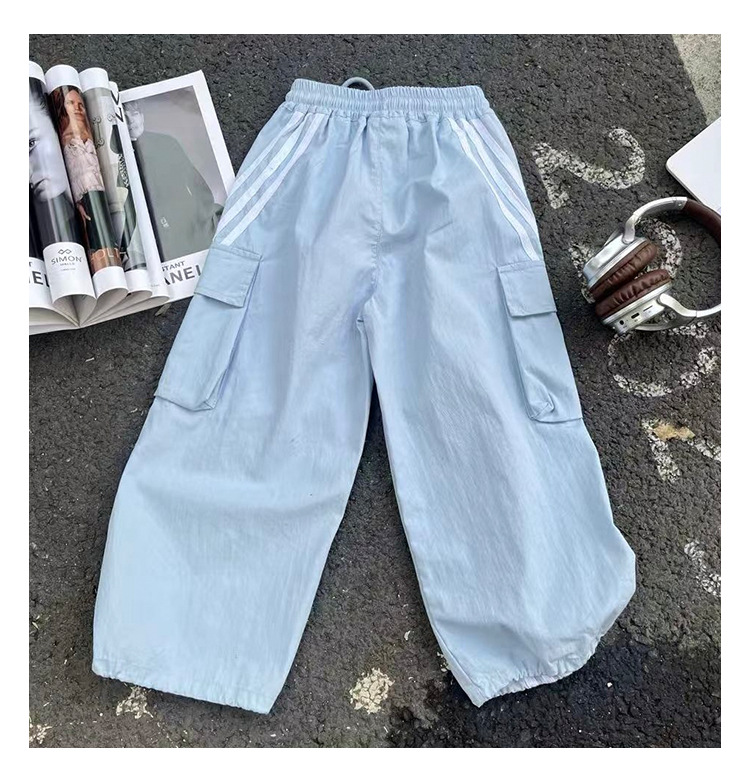 소녀의 여름 얇은 작업복 2025 새로운 유행 거리 운동복 느슨한 소녀의 캐주얼 바지