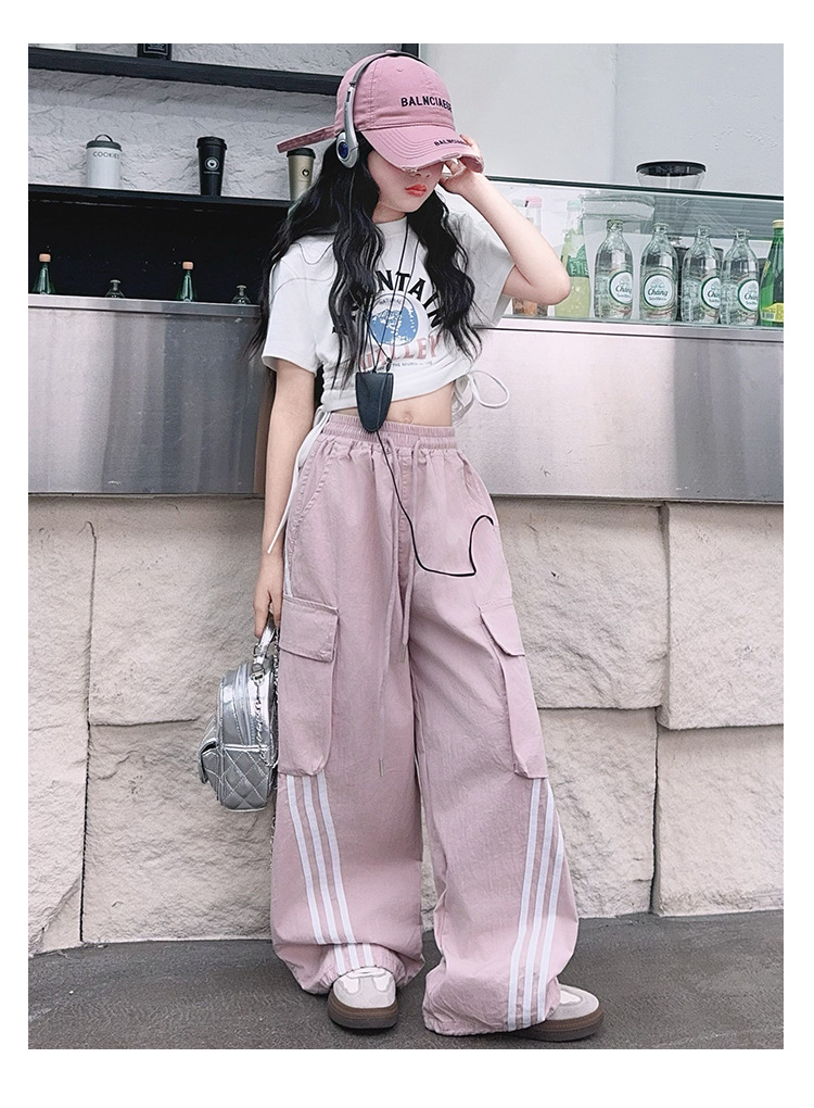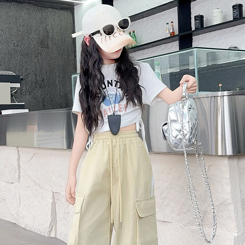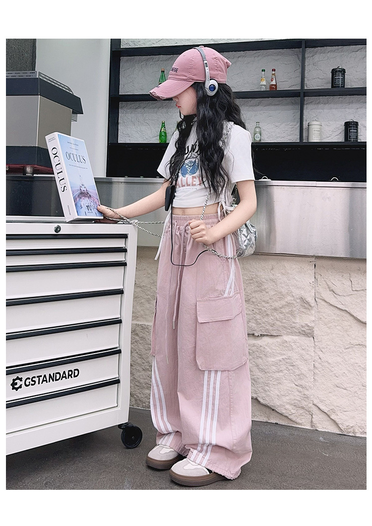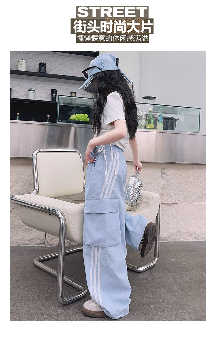 소녀의 여름 얇은 작업복 2025 새로운 유행 거리 운동복 느슨한 소녀의 캐주얼 바지스토어 가기