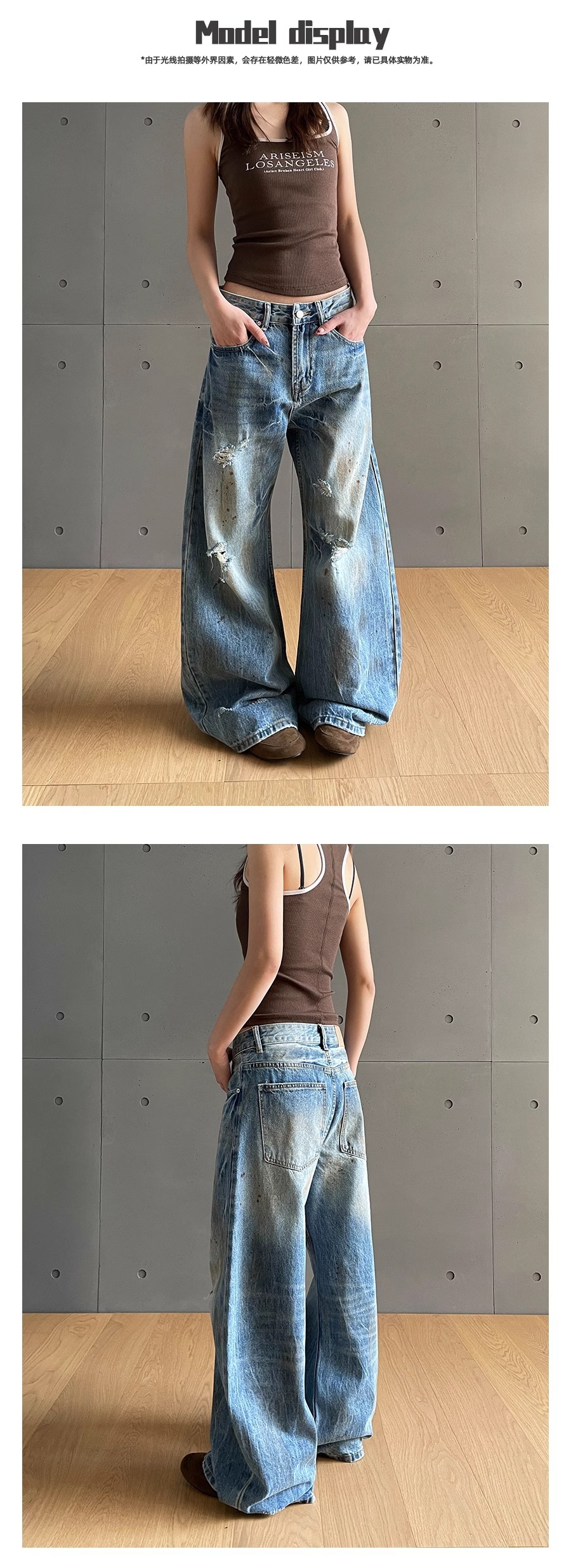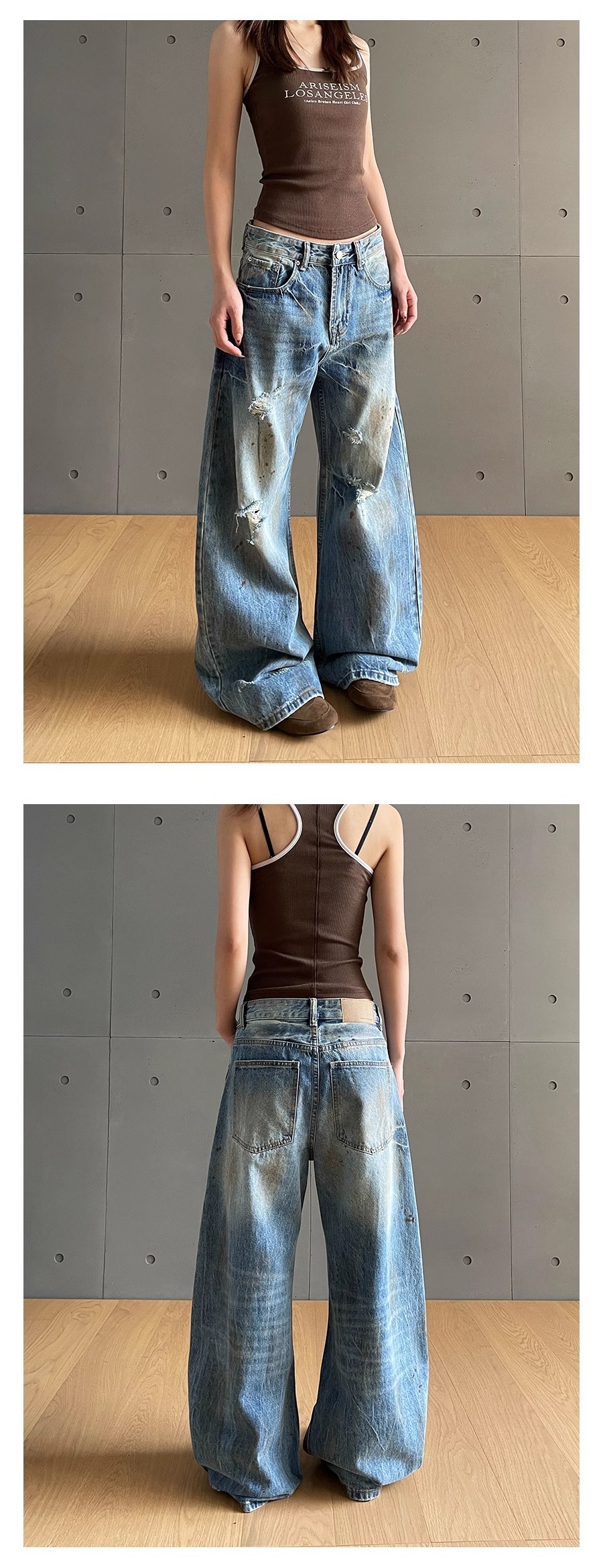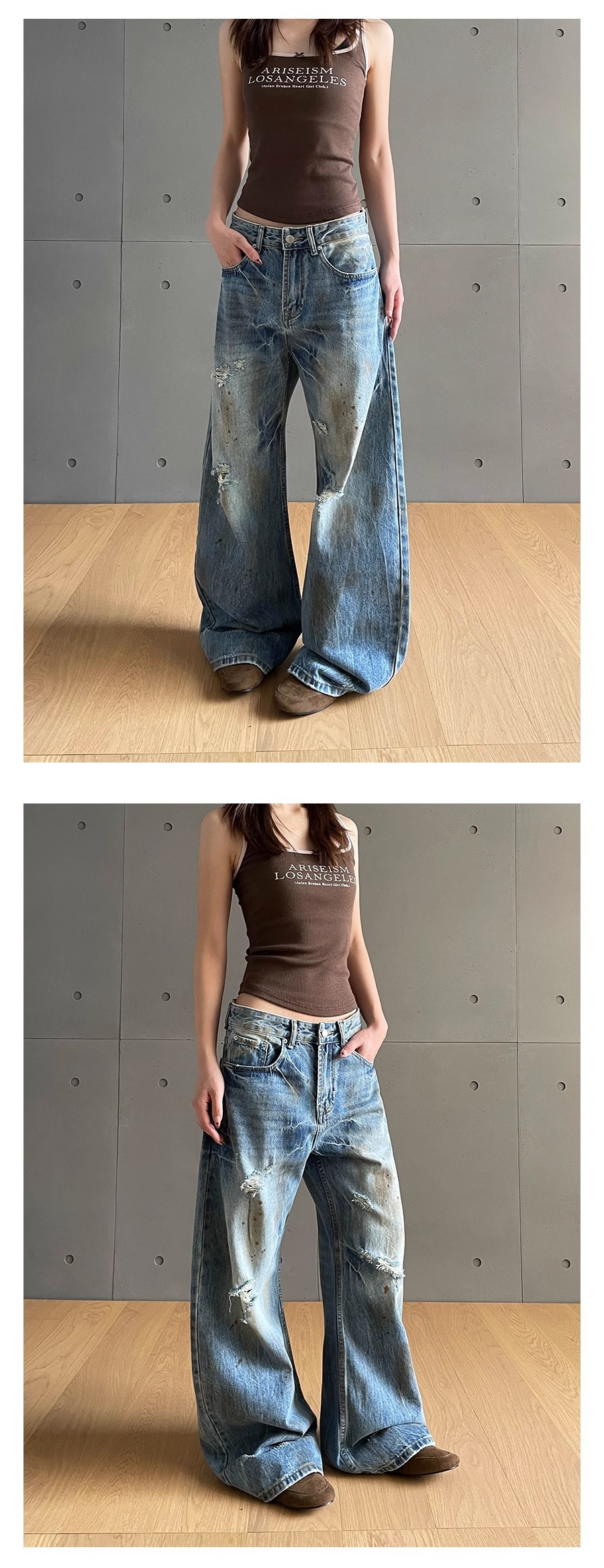 아메리칸 스타일 클린 핏 크랙 씻은 더러운 오래된 디자인 청바지 여성용 하이 엔드 센스 슬리밍 올매치 롱 팬츠스토어 가기