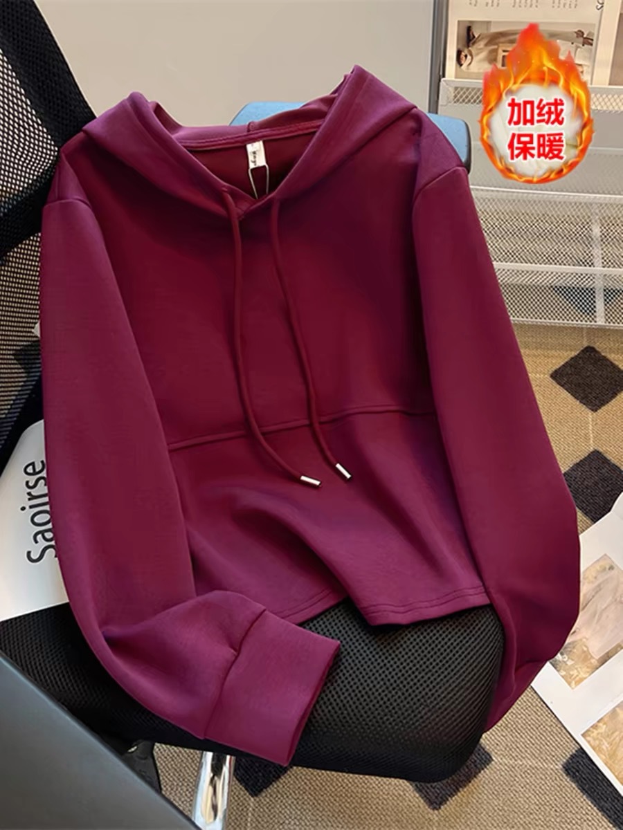 봄과 가을 새로운 후드 스웨터 쇼트 코트 여성 홍콩 스타일 핫 걸 슬림 핏 스포츠 풀오버 캐주얼 긴팔 탑 트렌디