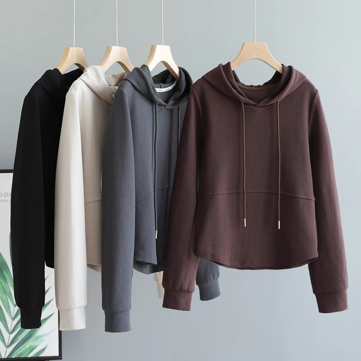 봄과 가을 새로운 후드 스웨터 쇼트 코트 여성 홍콩 스타일 핫 걸 슬림 핏 스포츠 풀오버 캐주얼 긴팔 탑 트렌디스토어 가기