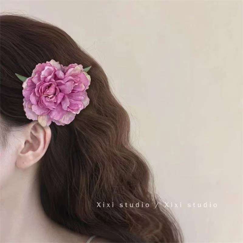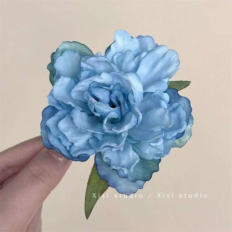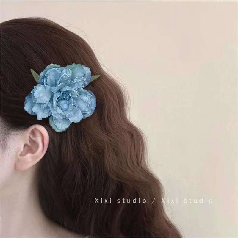 푸른 별들로 가득! Ins 스타일 높은 색상 가치 시뮬레이션 꽃 머리핀 덕빌 클립 모리 여성용 방귀 사이드 클립 깨진 머리핀