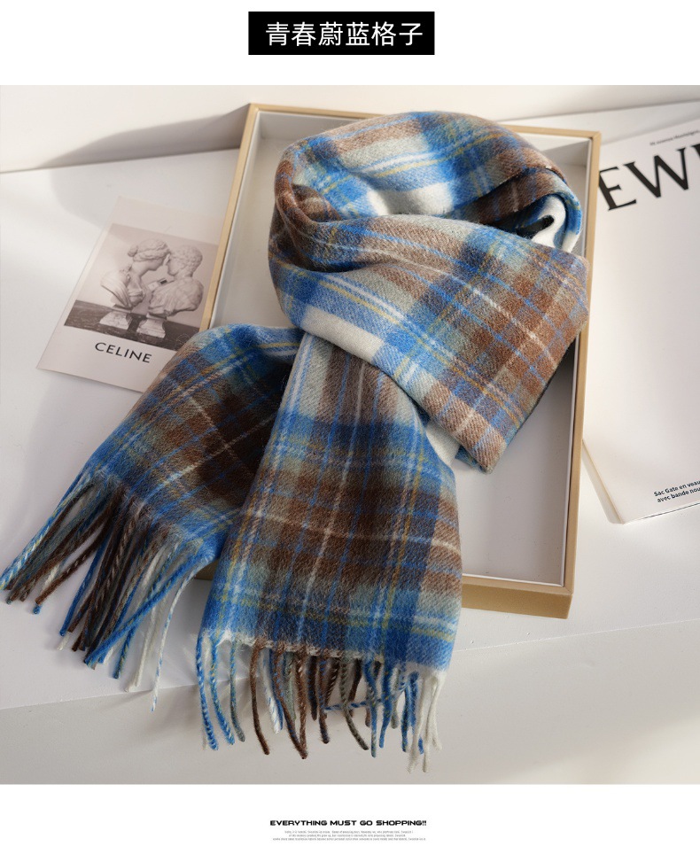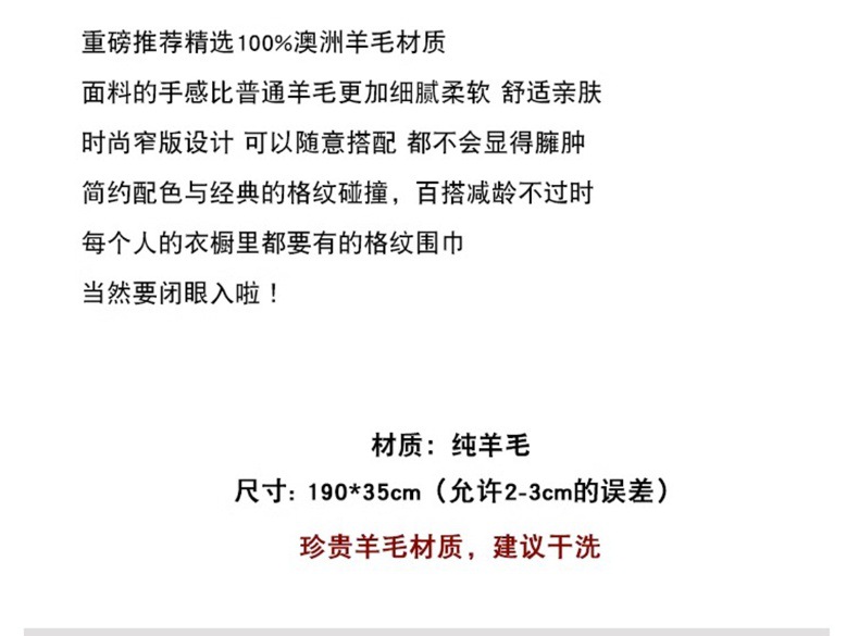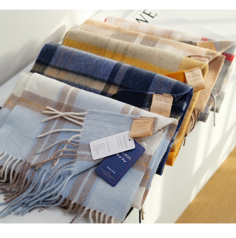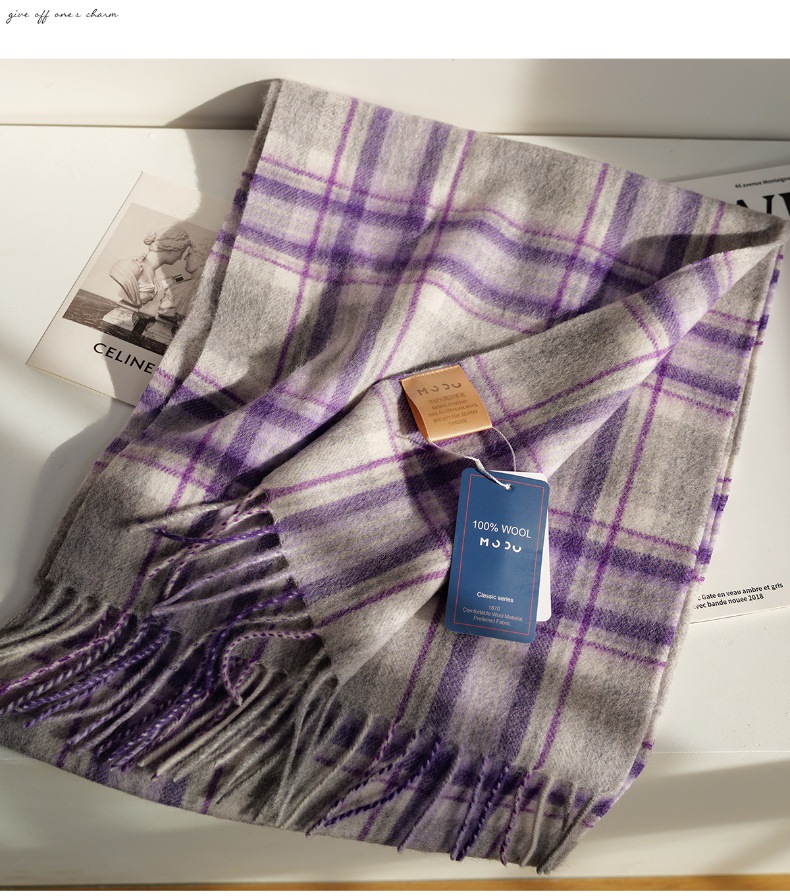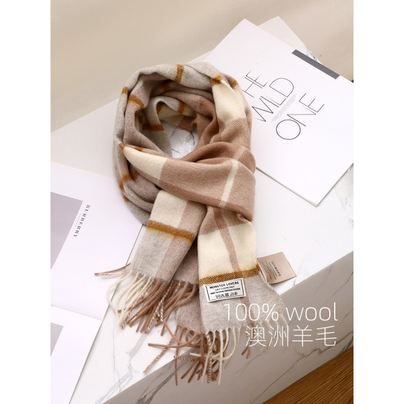 가을과 겨울 Maillard 호주 순수 양모 격자 무늬 스카프 여성 올 매치 따뜻한 커플 스카프스토어 가기
