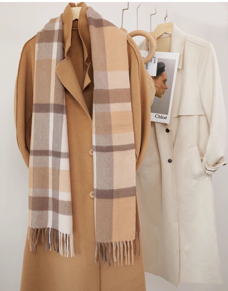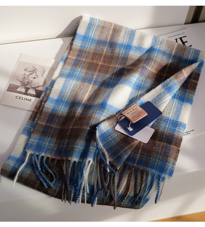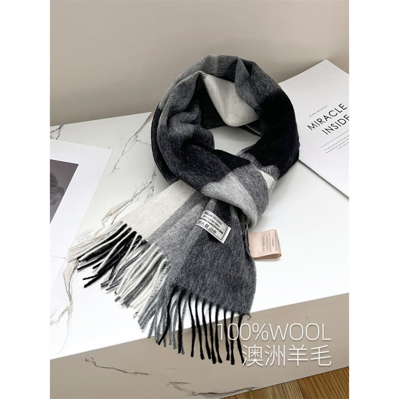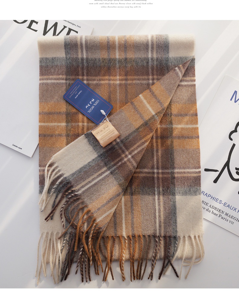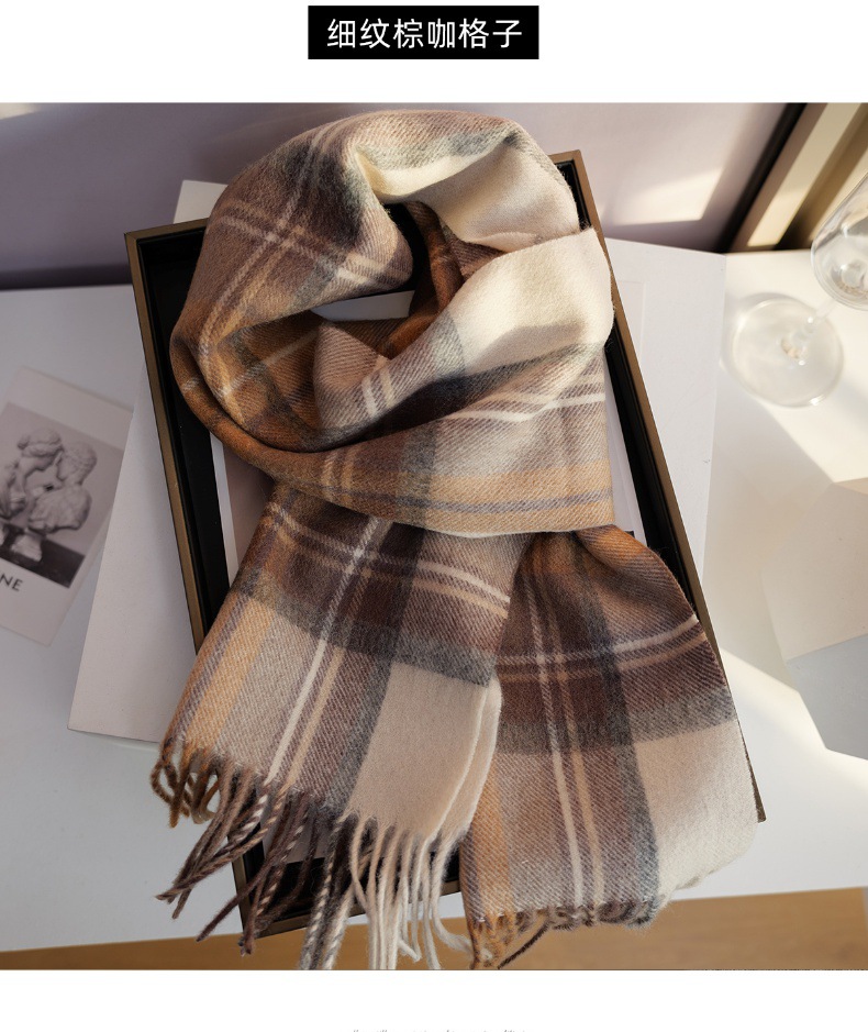 가을과 겨울 Maillard 호주 순수 양모 격자 무늬 스카프 여성 올 매치 따뜻한 커플 스카프